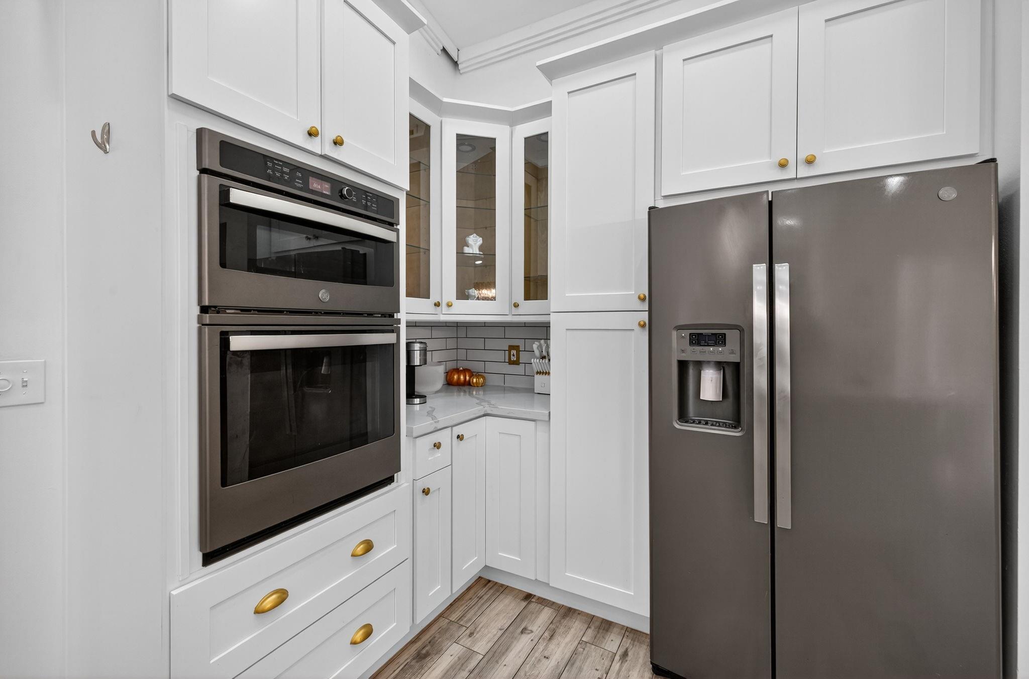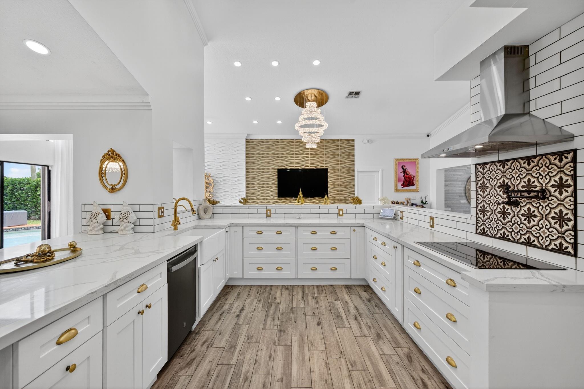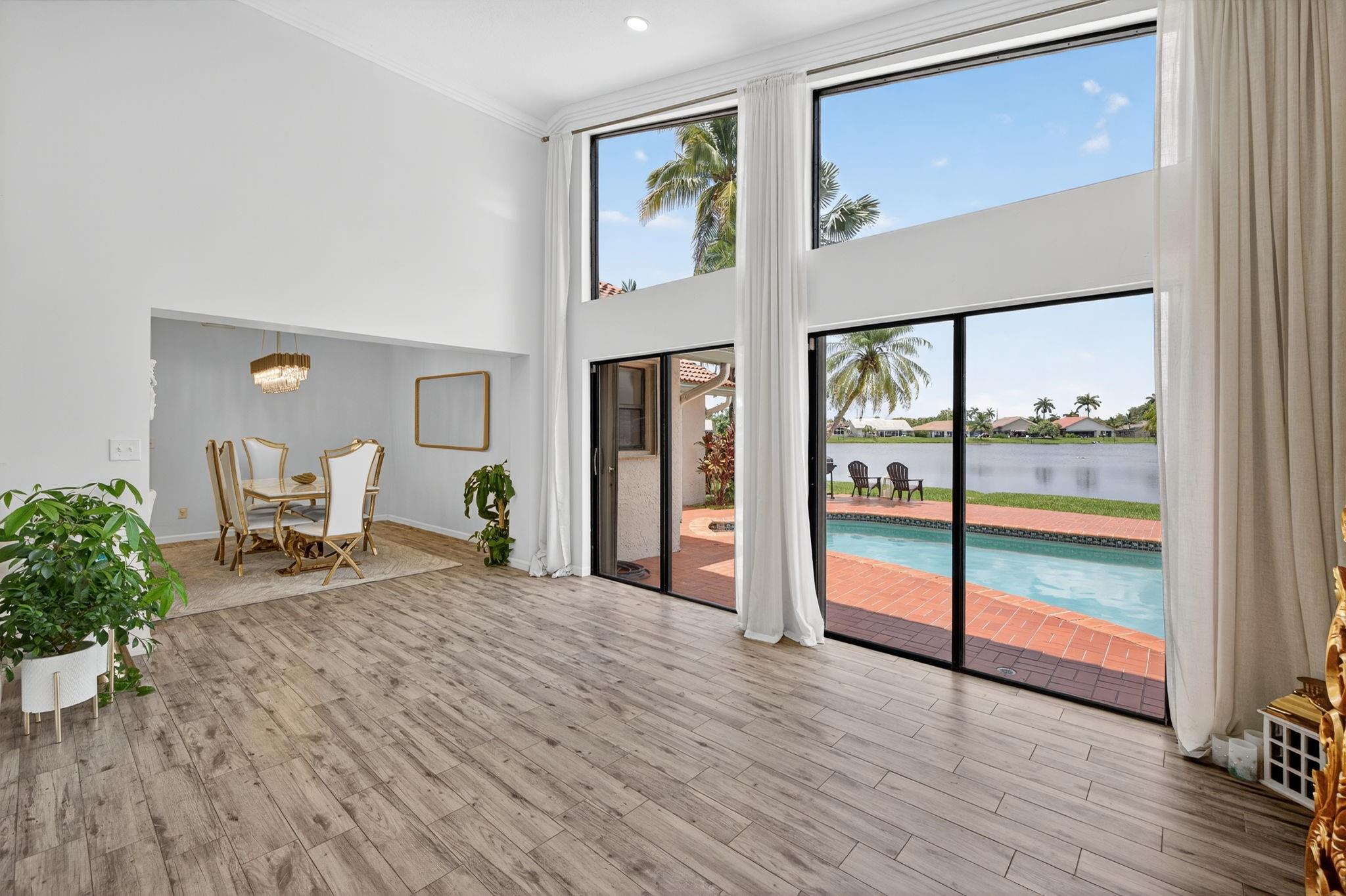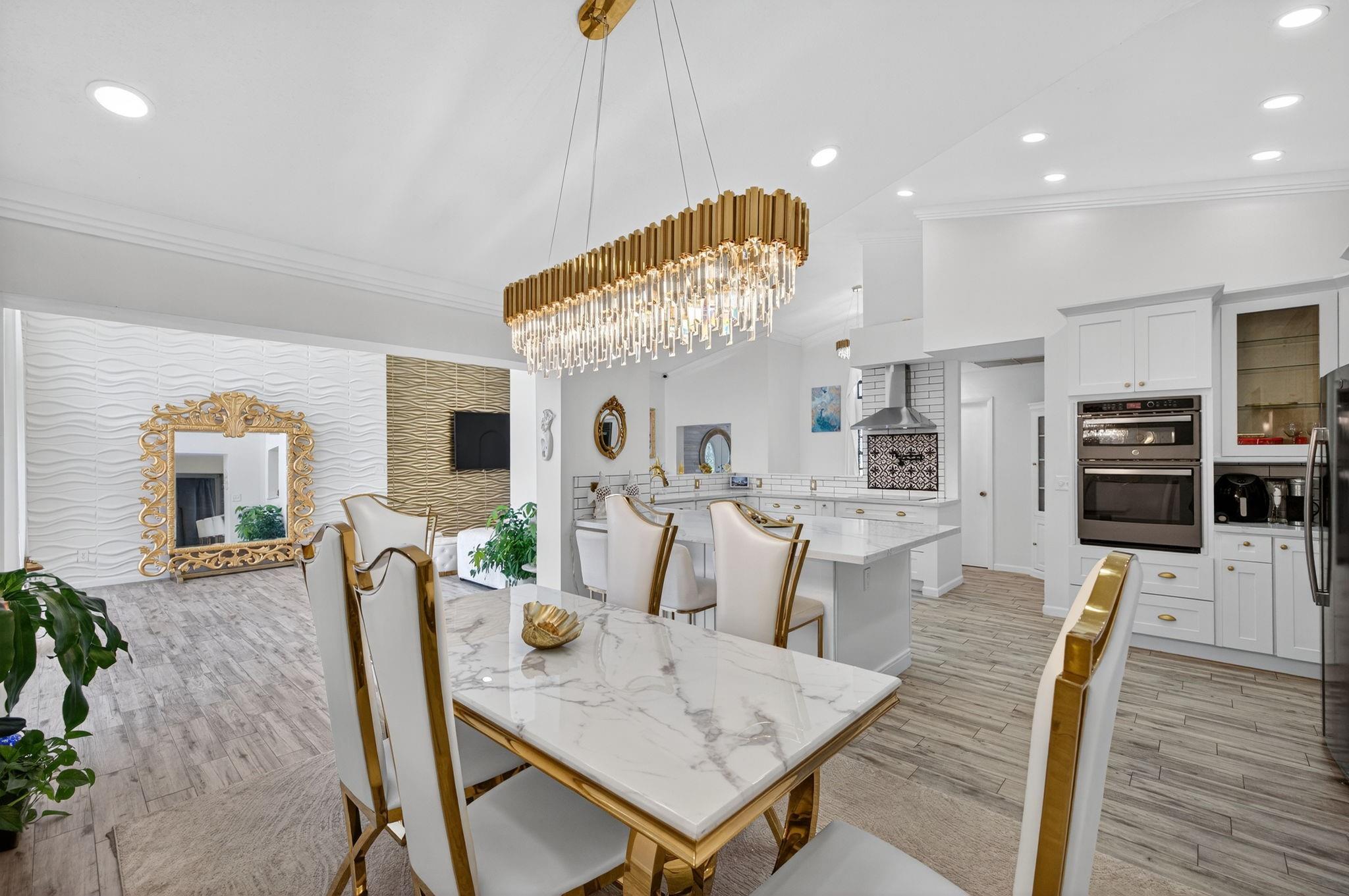 Desirable OAK KNOLL ESTATES! Lakeside living at its finest in this stunning 4 BR, 2 BA, 2-car garage split BR pool home, perfectly positioned for breathtaking sunset views over the water. Thoughtfully designed with elegance & comfort, it features a newly renovated all-white chef's kitchen with high-end appliances, custom cabinetry & gleaming countertops. Soaring 15 ft ceilings & modern LED lighting create an airy, sophisticated ambiance. 25k in real crystal lighting. The open concept flows to an outdoor oasis—sparkling pool & serene lakefront setting. Whether entertaining or unwinding, every space offers beauty, tranquility & refined detail. Roof 2008, AC 2014,new washer/dryer & water heater.