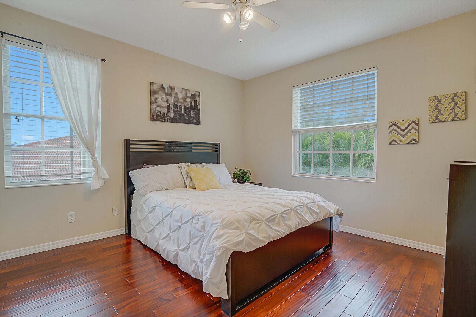 Exceptional opportunity to own a 2 story Lakefront Townhome in the desirable community of Andros Isle , 4br/3ba/2 car garage, This CBS home has over 2900 total sq. ft. soaring ceilings in the main living area w/decorative niches, tile & laminate floors throughout, updated kitchen w/granite counter tops, lg. center island, s.s. appliances & 42'' wood cabinets. The primary bedroom is on the main floor with 8 ft sliding glass doors that open to a pavered patio that overlooks the Lake. The private primary bathroom has dual vanities, make-up vanity, separate spa-like soaking tub, separate shower & linen closet. Two additional bedrooms are on the 2nd floor that share a jack & jill bathroom, another bedroom is located on the main floor that could be used as an office. New roof being installed