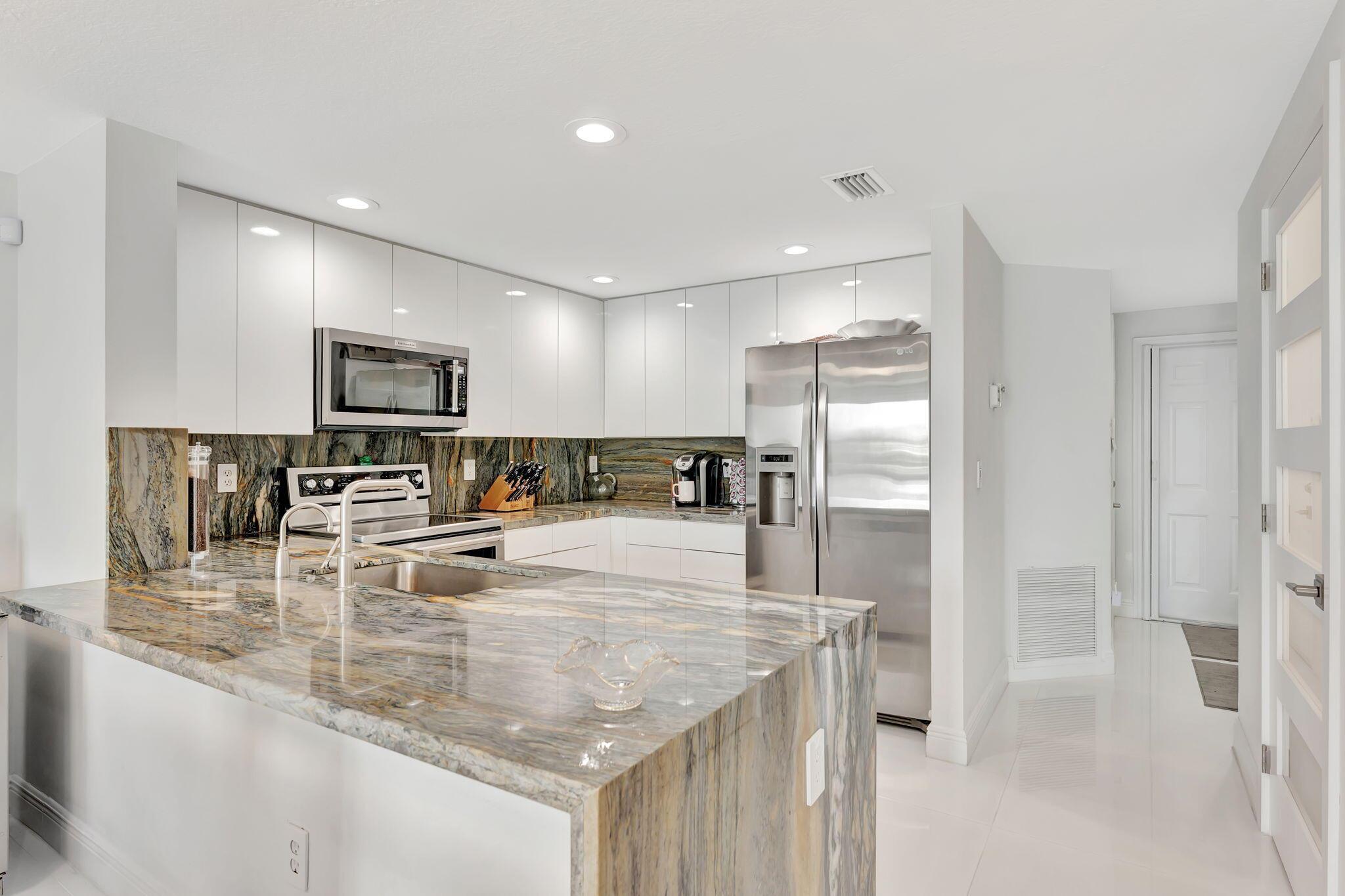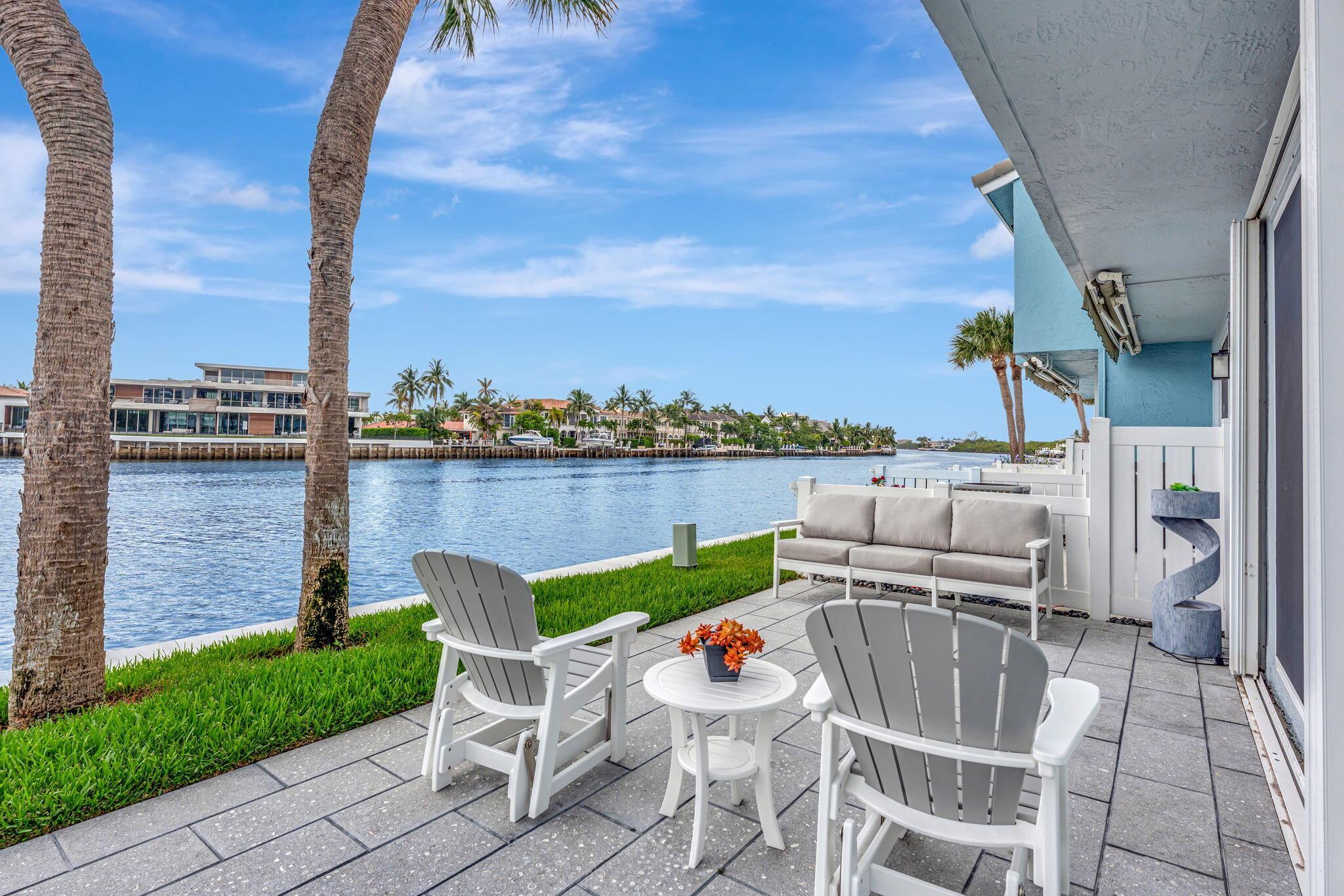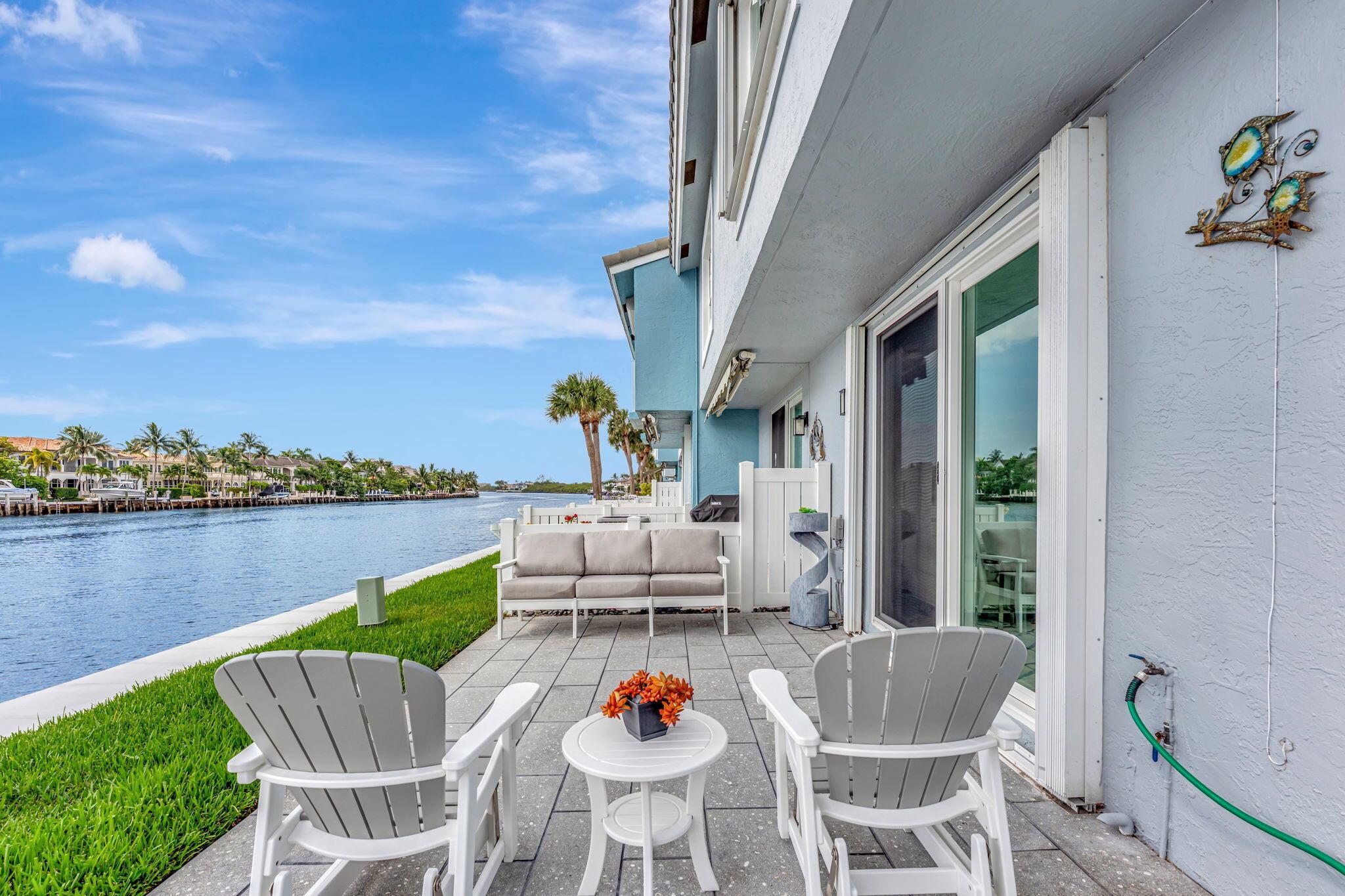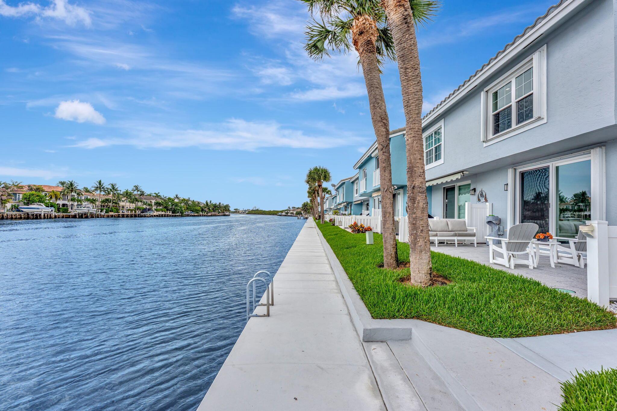 Million Dollar Views! Rarely available 3 bedroom, 2.5-bathroom corner townhome with direct intracoastal frontage in the highly sought-after Boca Quay community. This stylishly updated townhome offers the perfect combination of modern comfort, security, and a prime East Boca Raton location. Once you step inside, you are greeted with a beautifully renovated living space, featuring a bright open floor plan, sleek finishes, and impact-resistant windows and doors throughout for peace of mind and energy efficiency. The gourmet kitchen shines with modern cabinetry, stainless steel appliances, and quartz countertops, flowing seamlessly into the spacious dining and living areas boasting water views that create a serene backdrop for Florida Living at its finest.