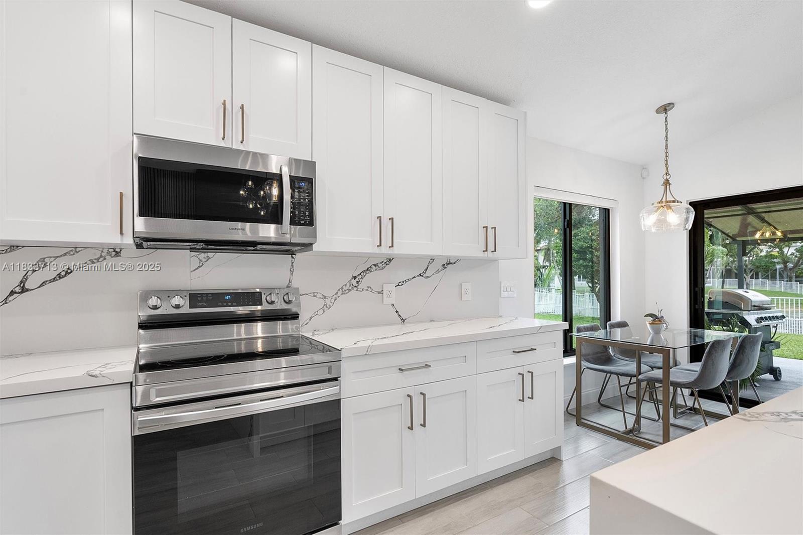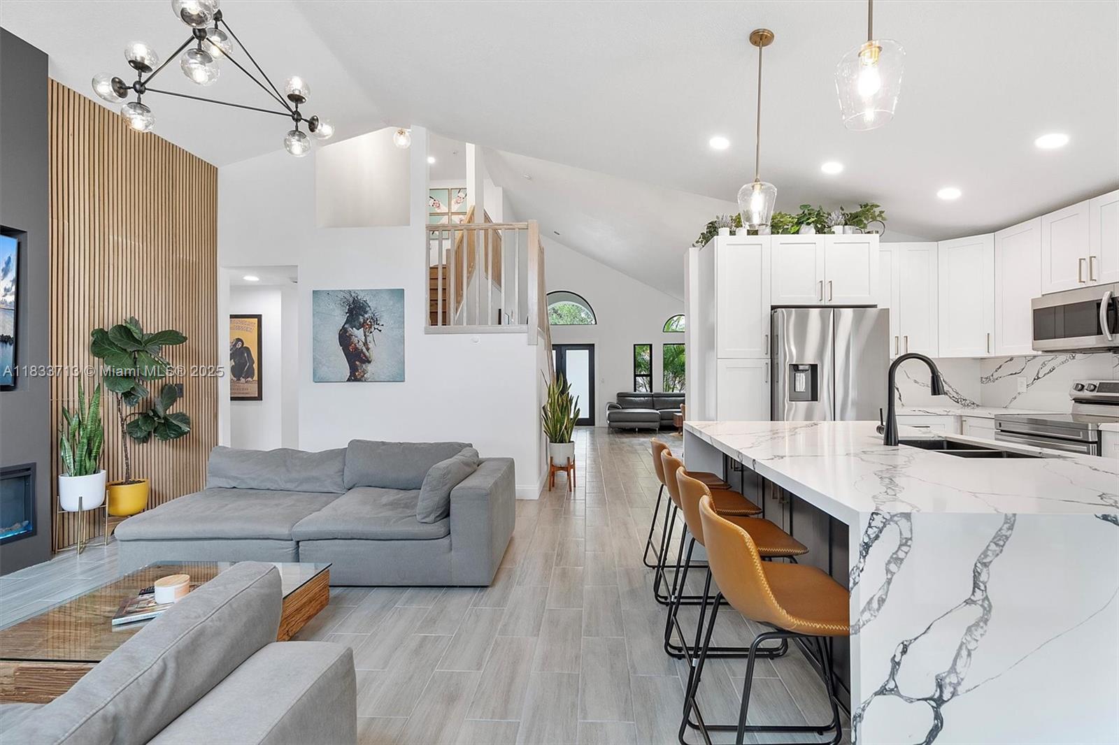 Stunning fully renovated 2-story waterfront home with 4-Bed / 2.5-Bath in gated community of Pembroke Falls! Contemporary kitchen featuring quartz countertops, large kitchen island, and stainless appliances. Open floor plan with soaring ceilings, luxury tile flooring, and a breathtaking panoramic lake view. Spacious primary suite on the first floor. 3 spacious bedrooms located on the 2nd floor. Half bathroom conveniently located on the 1st floor. Large fully fenced backyard with covered area, and plenty of space for a pool. Roof 2021, AC 2022, New Impact windows & doors. Resort-style amenities include a clubhouse with a gym, pools, tennis courts, etc. Prime location near major highways and shops! Bundled service pricing available for buyers. Connect with the listing agent for details.