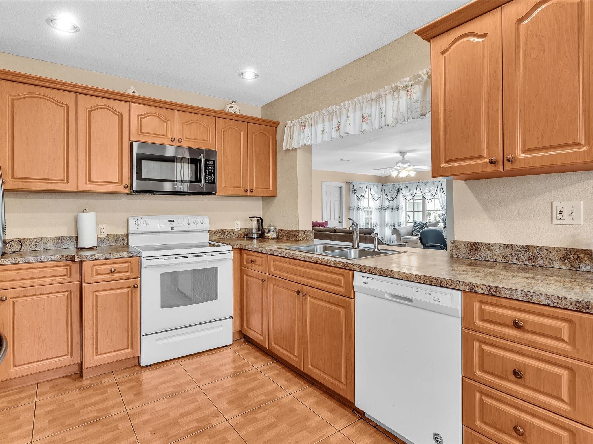 55+ COMMUNITY. ONLY 1 PERSON MUST BE 55 or older, other occupants must be 18 or older. LOW TAXES & LOW MAINTENANCE FEE. ROOF 2018. HOA includes: lawn care, sprinkler system, & exterior painting. Step inside this well-maintained 3 bed/2 bath home & discover an open, airy floor plan designed for easy living and entertaining. Split floor plan offers privacy, formal dining & eat-in kitchen provides versatile spaces for meals & gatherings. Master suite features jacuzzi tub/shower & walk-in closet. Other upgrades: impact windows & doors. Oversized lot w/ circular driveway, this home boasts stunning, unobstructed water views w/mature fruit trees. A peaceful cul-de-sac location offers privacy & tranquility.
