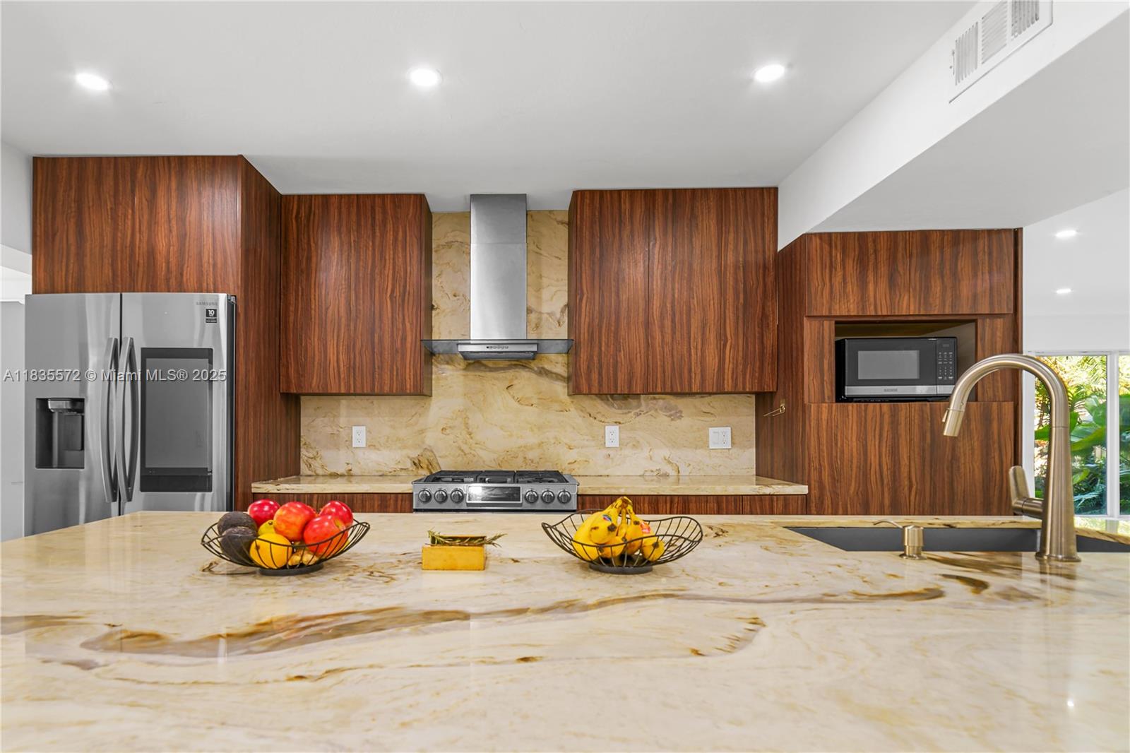 Welcome to this beautifully updated 4-bedroom (two master bedrooms each with direct access to the pool area), 3-bathroom home boasting 2,875 sqft! conveniently situated near Coral Reef Park. This property features extensive improvements, including new air conditioning, new PBC plumbing, and flooring, along with a remodeled kitchen, 2 spacious master bedrooms and the convenience of a gas generator connection. Outdoor highlights include elegant marble flooring, connections for an outdoor kitchen, and a gas pool water heater for cost savings. A surround sound system in the master bedroom, mosquito screens for the pool area, impact windows for safety, a salt system in the pool, and an outdoor shower for your convenience.
