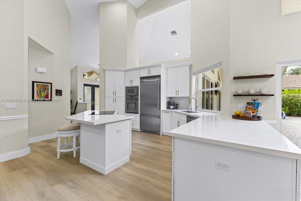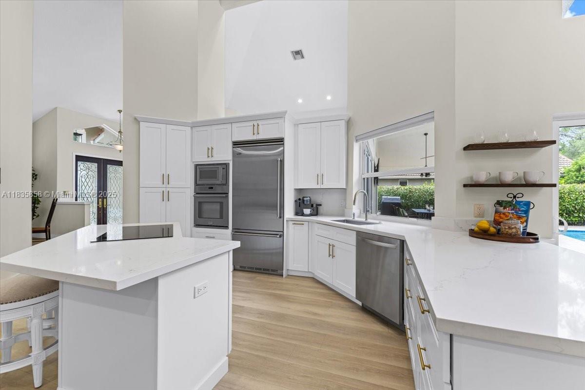 Don’t miss this rare opportunity to own this beautifully renovated cul-de-sac home nestled on a private preserve lot with a resort style saltwater pool. This 5 Bedroom home in gated Carriage Pointe Estates has new Hurricane windows and garage door. The heart of the home has a new gourmet styled kitchen accented with VIKING appliances and Quartz countertops. Featured is new vinyl plank flooring as well as the entire home has been painted with neutral colors, inside and out. The master bedroom suite serves as a private retreat with a spa-like master bath featuring dual sinks, granite countertops, soaking tub, and rain shower. There is a spacious walk-in closet plus an additional closet. The fifth bedroom is used as an office with custom built-ins. Must see, too many upgrades to list.