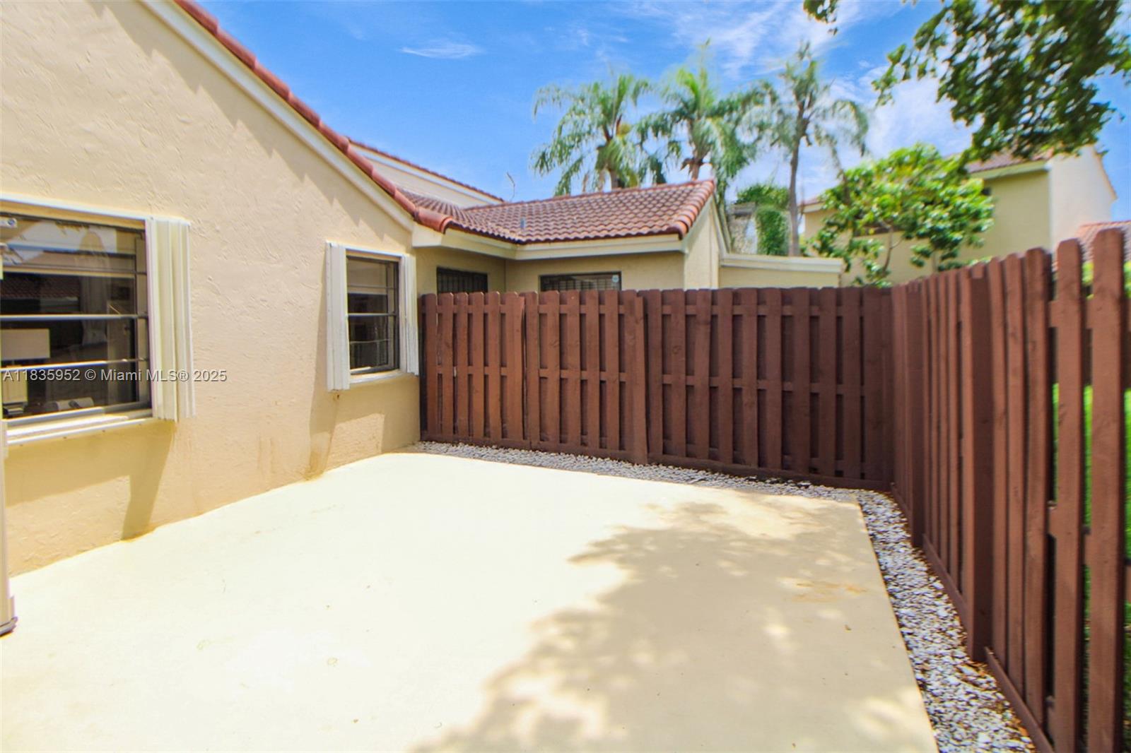 Welcome to this beautifully maintained two-bedroom, two-bath townhome villa nestled in the sought-after community of The Moors, within minutes of Miami Lakes This spacious residence features a bright, open floor plan that seamlessly blends comfort and functionality. The modern kitchen offers ample cabinet space and sleek appliances, ideal for everyday cooking and casual dining. Both bedrooms are generously sized, each with walk-in closets and custom built-in organizers for optimal storage. Step outside to your private rear patio perfect for morning coffee or relaxing evenings. Enjoy the peace of a gated community with access to great amenities, all while being close to top schools, shopping, and major highways.