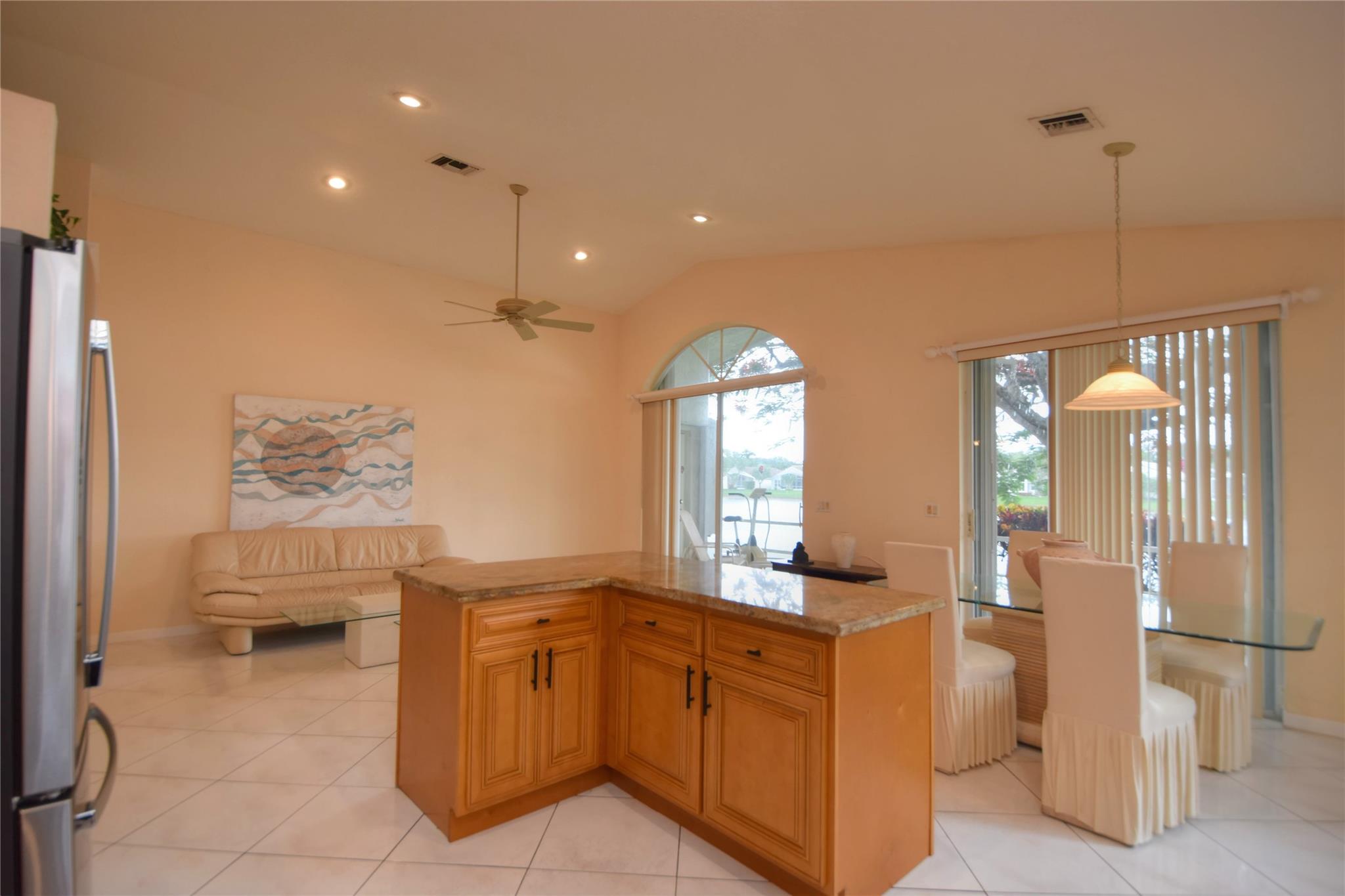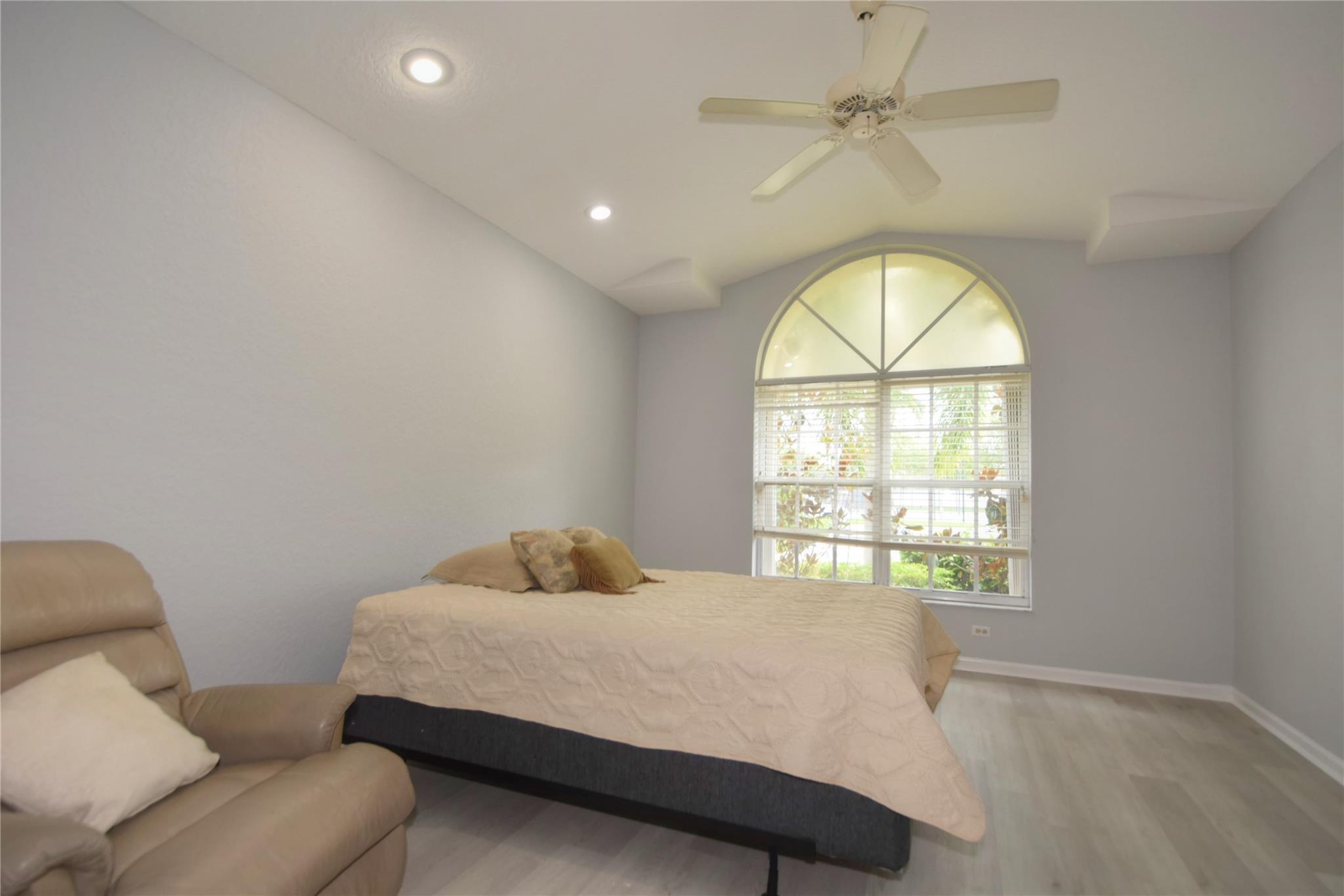 Beautiful Open & Spacious Waterfront Home, Super High Ceilings, High Hats and Fans Throughout. All Brand New Stainless Kitchen Appliances in Open Remodeled Kitchen, Granite Countertops. Unbelievable Master Bedroom Sized 24' X 14' w/ 2Walk In Closets, and New Plank Flooring, Master Bedroom has Bay Windows overlooking Waterfront & French Door opens to Tiled & Screened Lanai. Oversized Master Bathroom as well w H/H Sinks, plus.... Large Guest Bedroom w/Walk IN Closet, also w/newly installed Grey Plank Flooring, 3rd Bedroom as Den/Office w/Wet Bar + Storage Cabs. NEW ROOF to be Installed. HOA Fee incl, Landscaping, Sprinklers, ADT Home Alarm System, Cable, Internet, V-Guard Gated, Tennis & Pickelball, Billiards, Workout Gym, Heated Pool & Jacuzzi, Men & Women Saunas, & Dog Park.