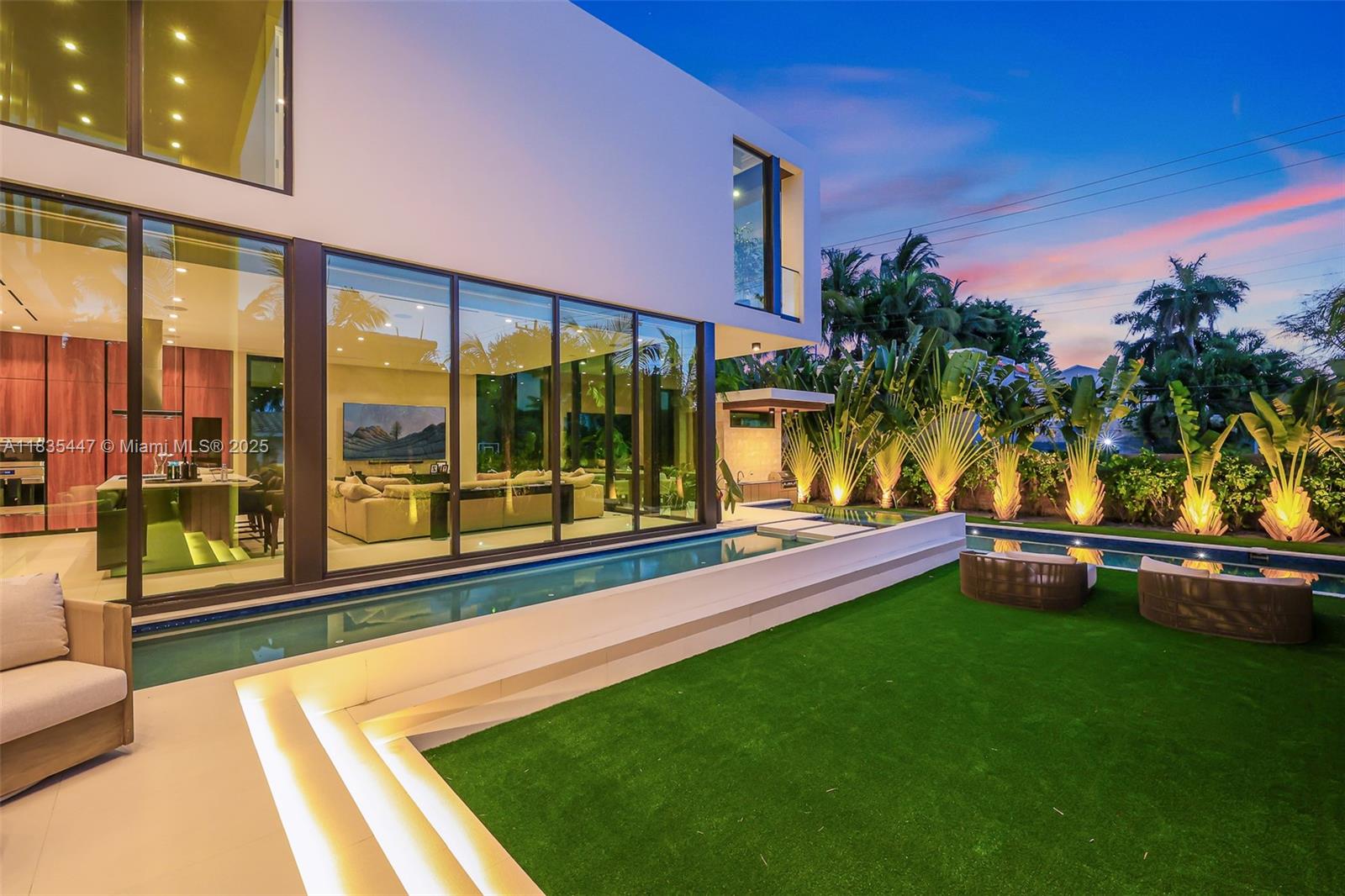 Fully furnished and truly turn-key — just bring your toothbrush and your sunglasses. This striking modern residence overlooks a beautiful golf course and offers 5 bedrooms, 6 bathrooms, and over 5,200 sq ft of elevated living designed for the Miami lifestyle. Soaring ceilings, sleek European flooring, skylights, and walls of floor-to-ceiling glass flood the home with natural light and seamless indoor-outdoor flow. The chef’s kitchen features Italian Boffi cabinetry, Sub-Zero and Wolf appliances, and designer fixtures—perfect for entertaining or laid-back luxury. A sculptural wood staircase leads to the large primary suite with private terrace and panoramic views. A junior suite overlooks the pool, while the rooftop terrace delivers sunrise mornings and golden-hour sunsets. A newly added wine cellar and spa-like baths complete the interiors. Outside, the backyard is pure resort mode with a heated pool and spa, cabana bath, and full summer kitchen—made for weekends that turn into nights. Just minutes from Sunset Harbour’s dining, shopping, fitness studios, and Sunset Padel, this move-in-ready, fully furnished home lets you skip the setup and step straight into the lifestyle.