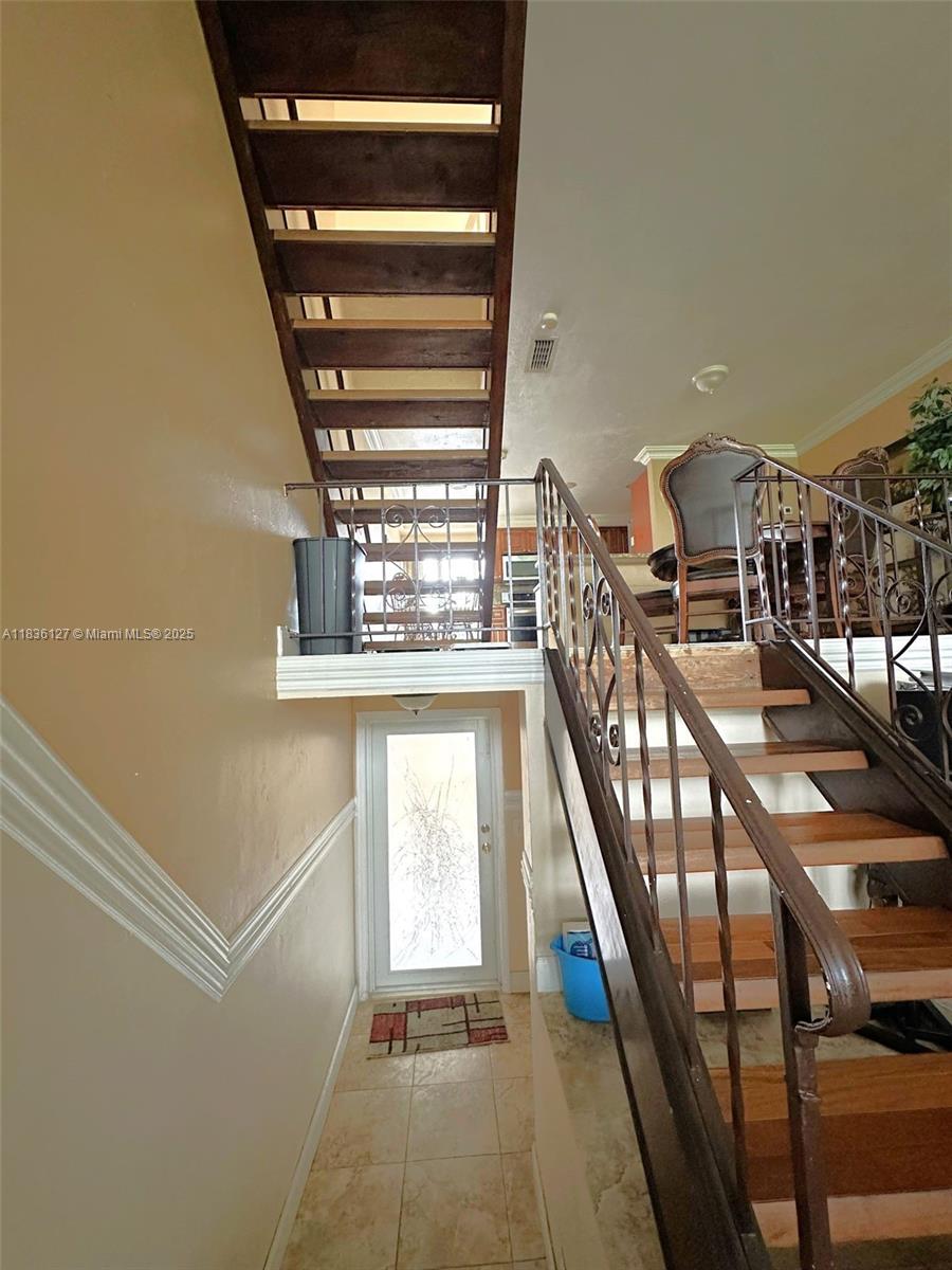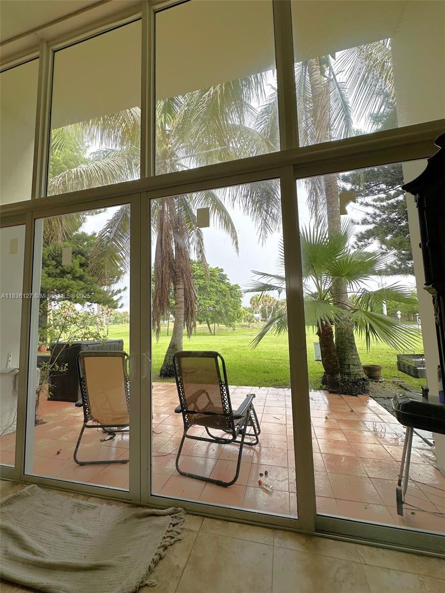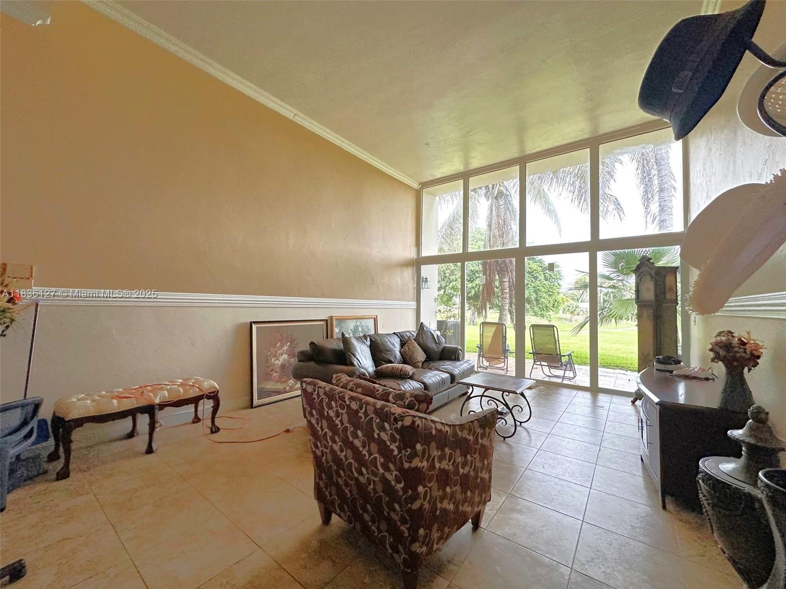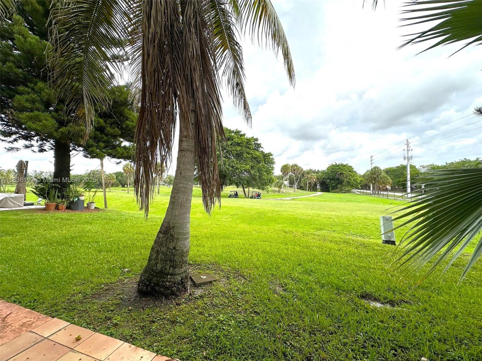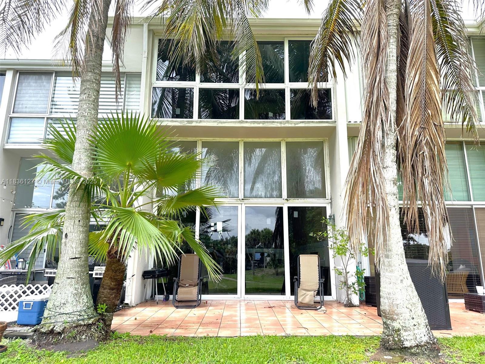 Welcome to the prestigious Country Club of Miami. Rarely available, 1,752 sf townhouse overlooking the golf course. This property features an fantastic architectural design with13.5 foot ceilings in the living area with floor to ceiling windows. This design language continues in the very spacious primary bedroom with floor to ceiling windows and golf course views. Impact windows throughout, wood kitchen cabinets, stainless steel appliances and granite kitchen counters as well as new roof (2025). The property has the desirable North facing orientation which assures you will not experience direct sunlight through your expansive windows during fall and winter months. Close to many shopping and dining options, excellent location minutes to 826 and I-75.