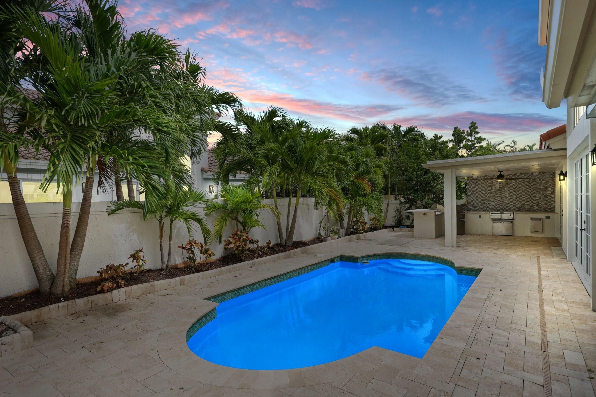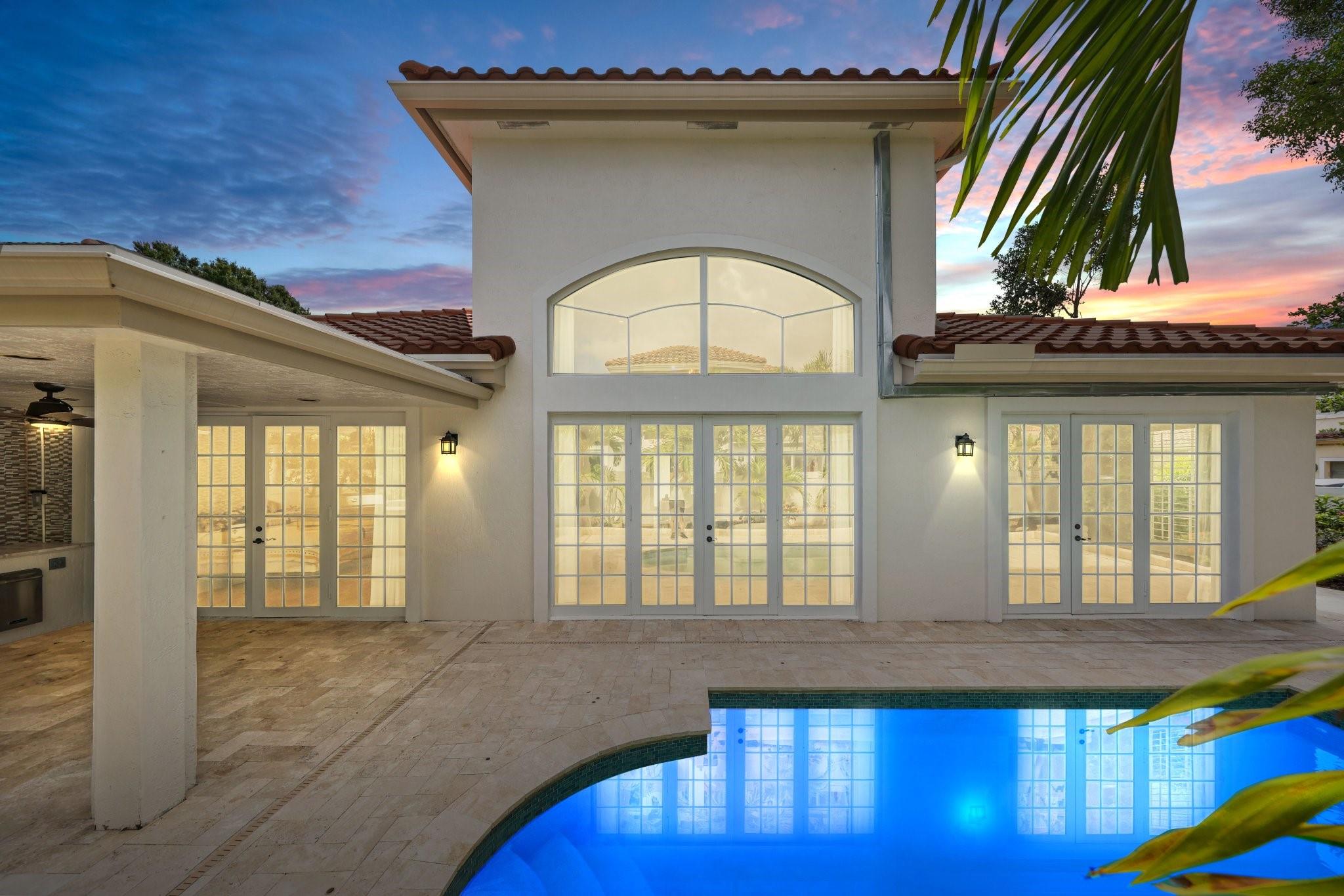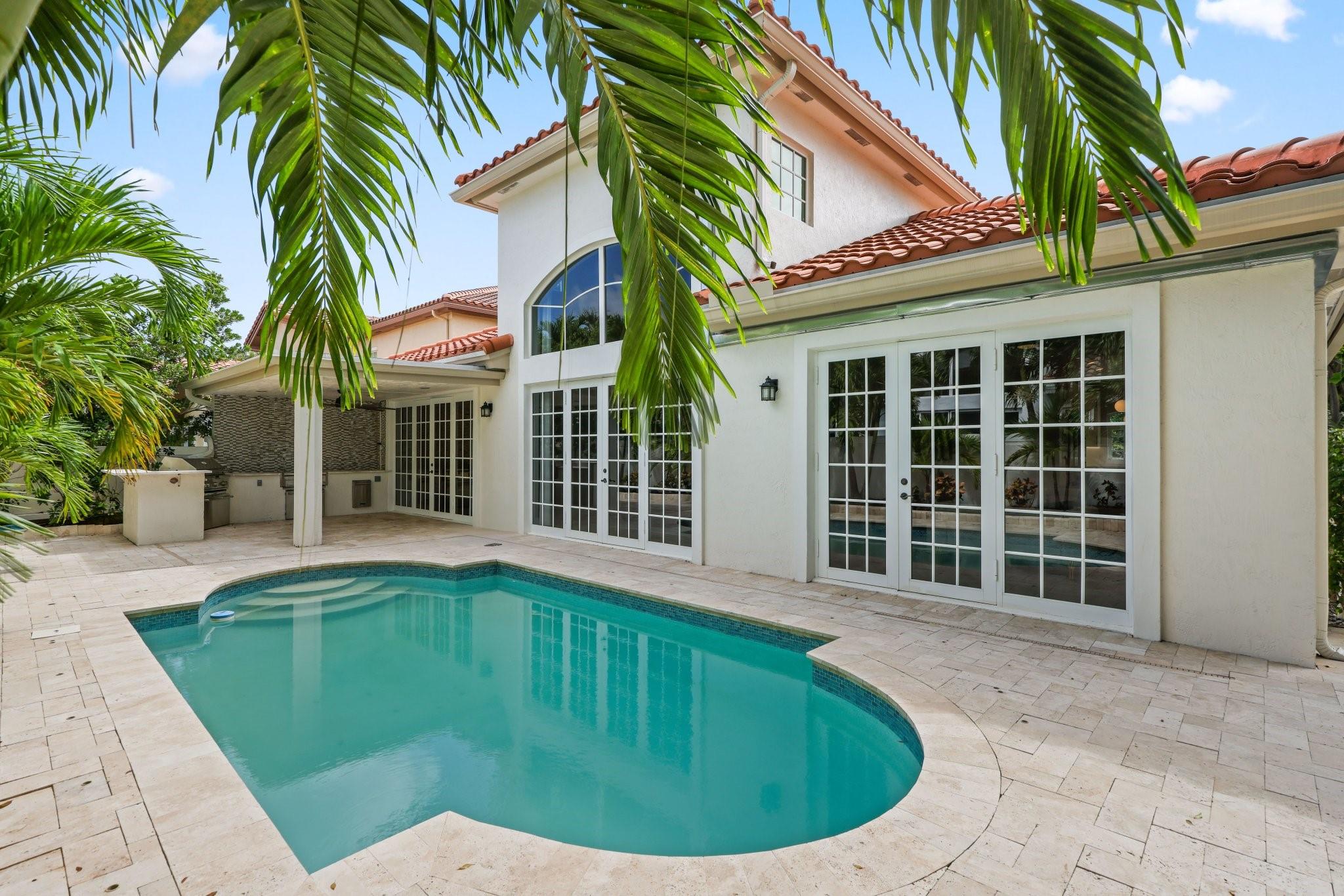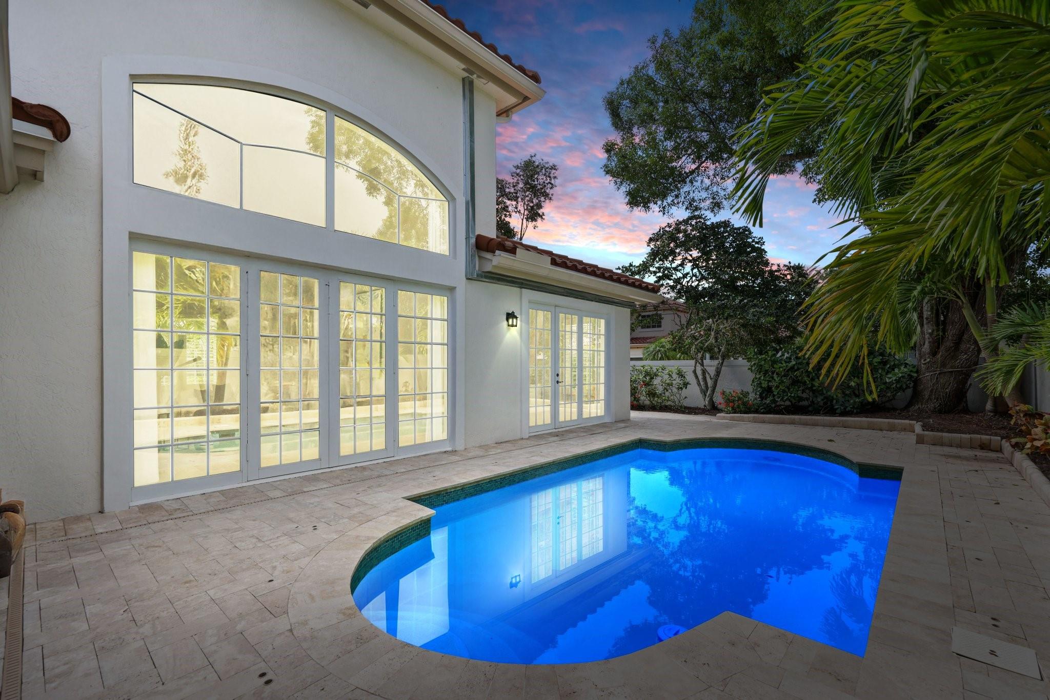 Fully renovated, move-in ready home with IMPACT WINDOWS in the gated community of Santa Barbara. Travertine floors throughout the living area and custom designer finishes throughout. Heated pool, 2 new A/C units (2020), and newer roof (2016). Spacious primary suite with XL walk-in closet w/ custom built-ins. Master bathroom remodeled in 2023 with high-end finishes. Freshly painted interior w/ wood-look tile upstairs - NO CARPET. Backyard & pool recently remodeled w/ travertine deck & custom covered built-in grilling station. Your BBQs will be the best in the neighborhood! Clubhouse offers gym, tennis, pool, and cabanas with low HOA. Zoned for some of the best schools in Boca! Close to Town Center, beaches, I95, and anything else you could want.