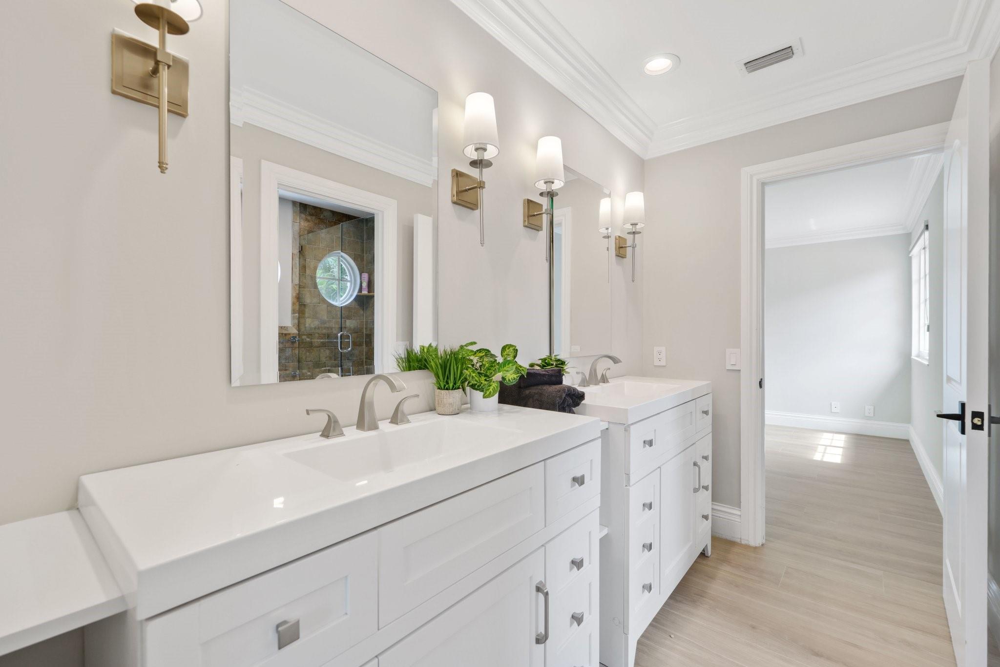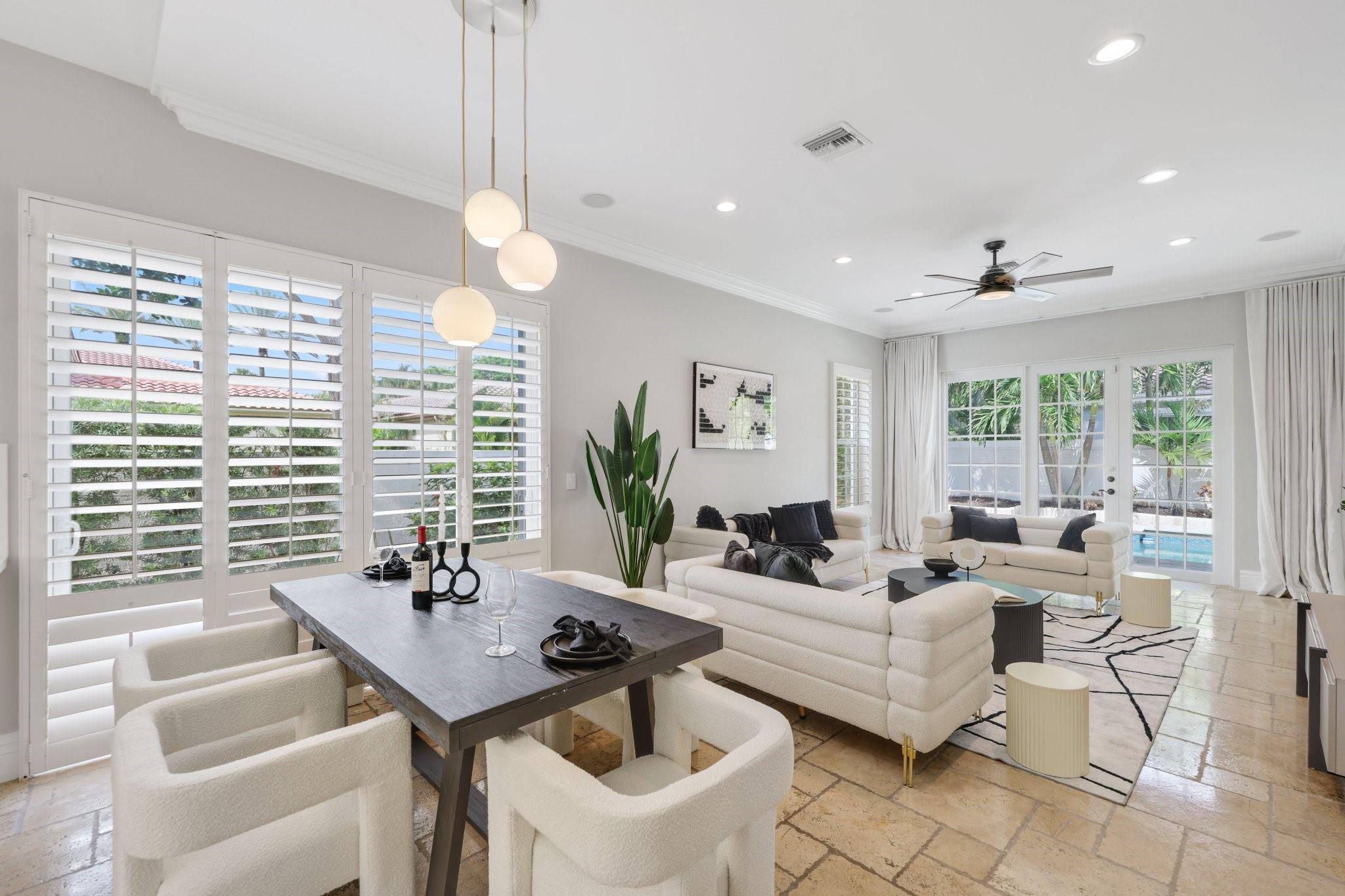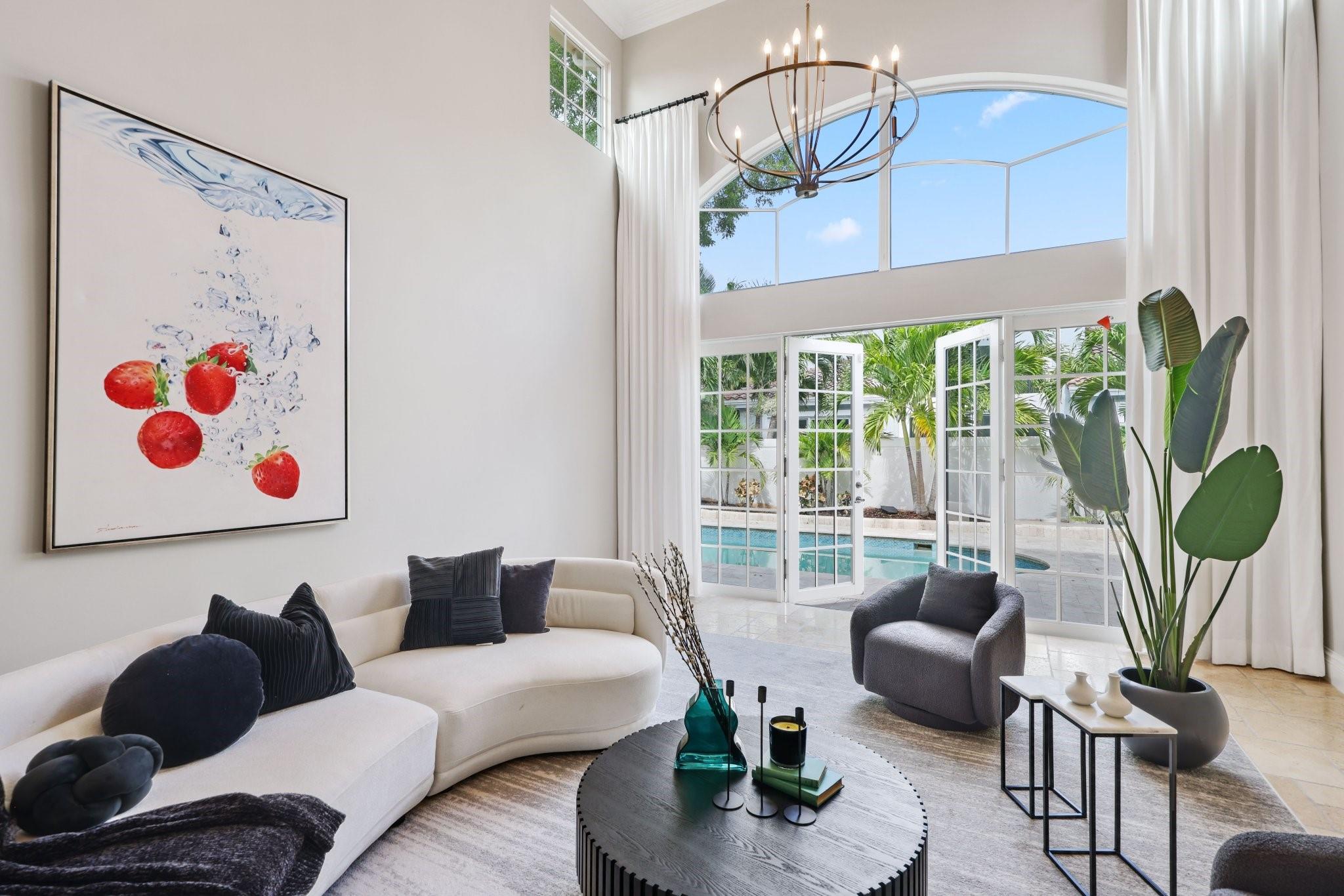 Fully renovated, move-in ready home with IMPACT WINDOWS in the gated community of Santa Barbara. Travertine floors throughout the living area and custom designer finishes throughout. Heated pool, 2 new A/C units (2020), and newer roof (2016). Spacious primary suite with XL walk-in closet w/ custom built-ins. Master bathroom remodeled in 2023 with high-end finishes. Freshly painted interior w/ wood-look tile upstairs - NO CARPET. Backyard & pool recently remodeled w/ travertine deck & custom covered built-in grilling station. Your BBQs will be the best in the neighborhood! Clubhouse offers gym, tennis, pool, and cabanas with low HOA. Zoned for some of the best schools in Boca! Close to Town Center, beaches, I95, and anything else you could want.