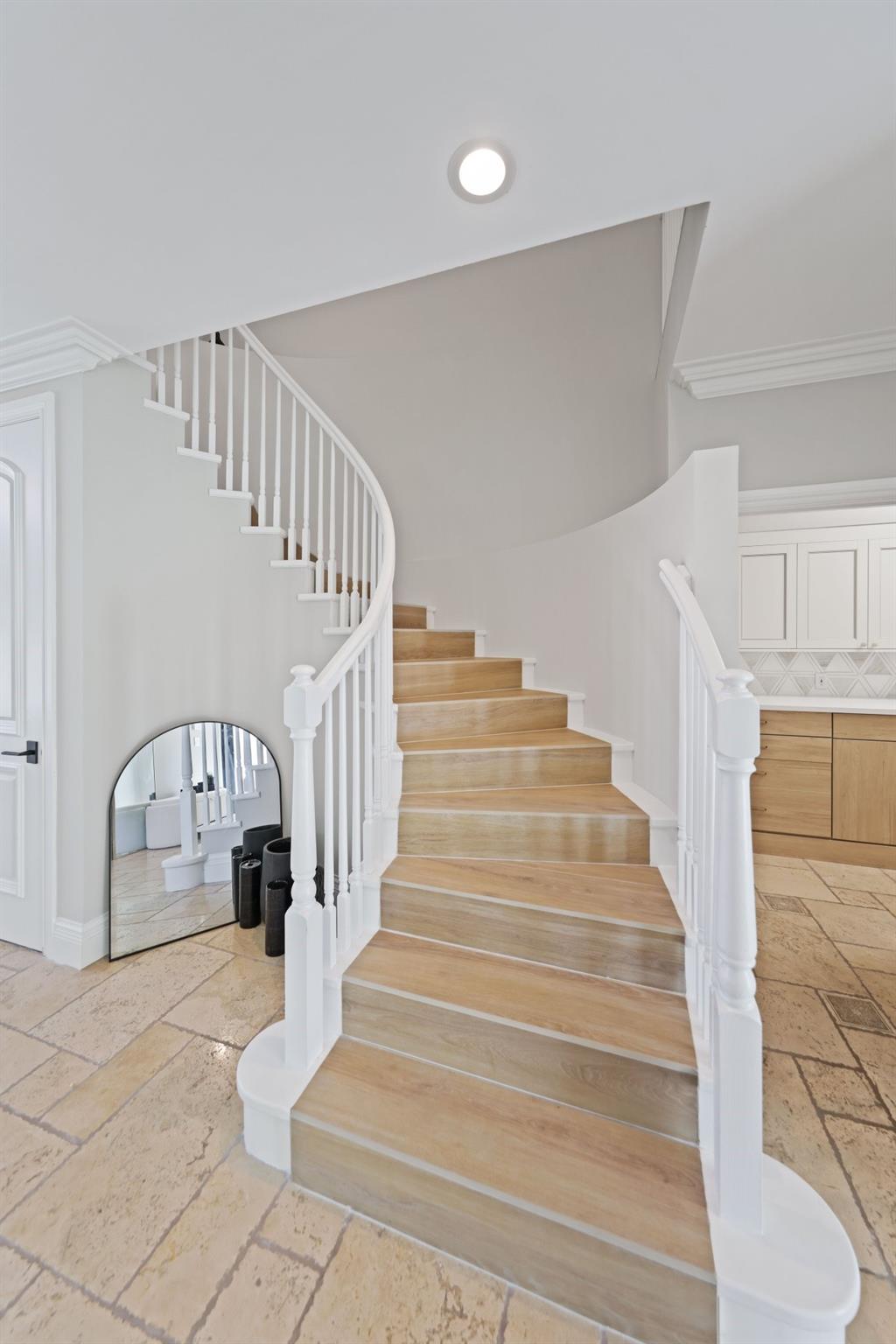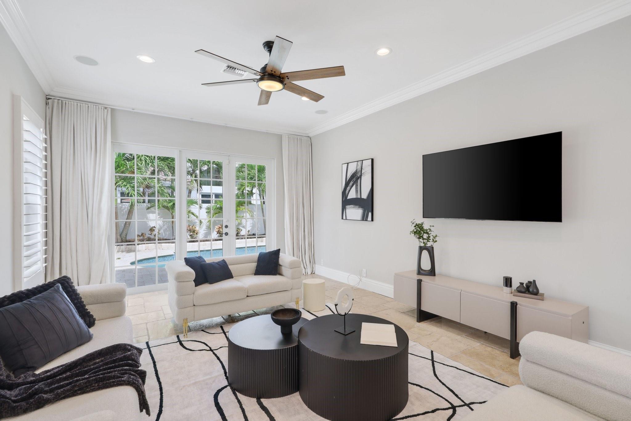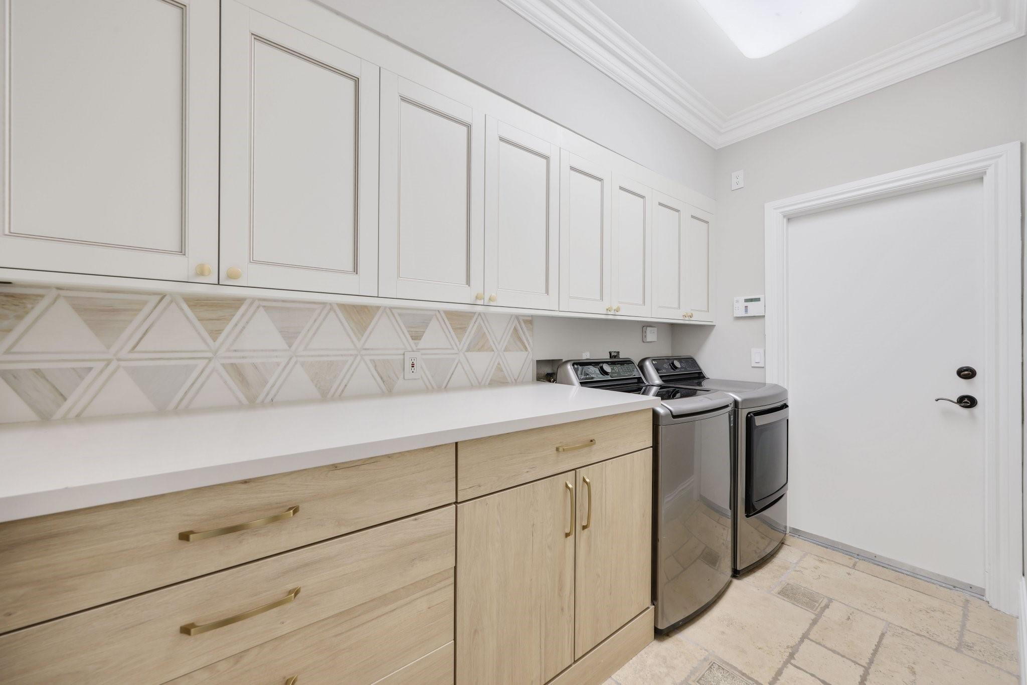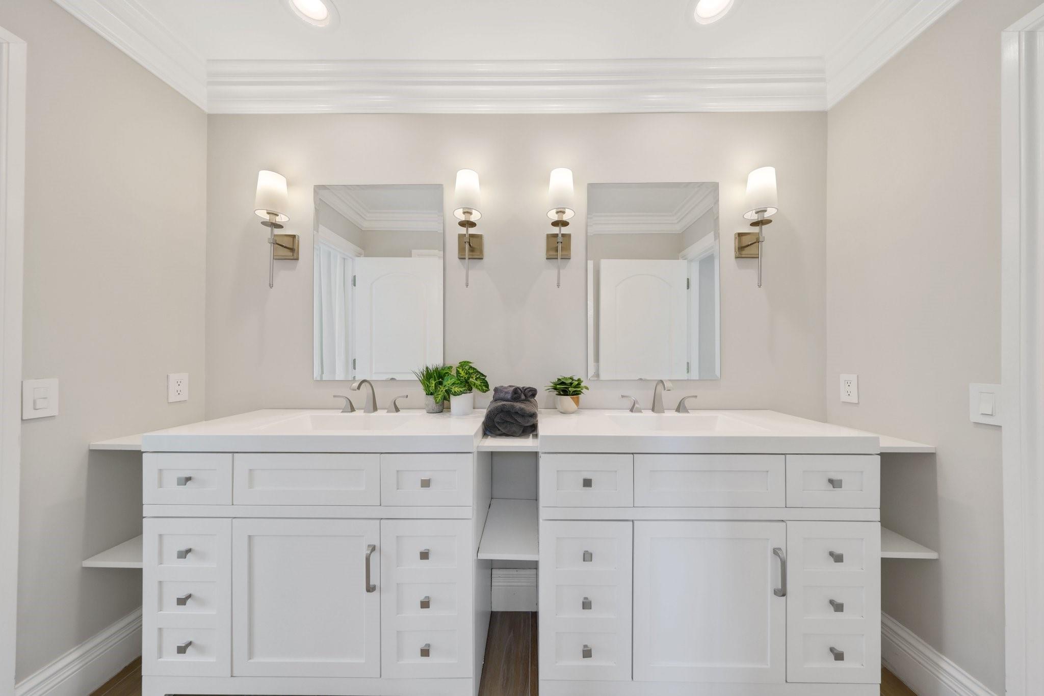 Fully renovated, move-in ready home with IMPACT WINDOWS in the gated community of Santa Barbara. Travertine floors throughout the living area and custom designer finishes throughout. Heated pool, 2 new A/C units (2020), and newer roof (2016). Spacious primary suite with XL walk-in closet w/ custom built-ins. Master bathroom remodeled in 2023 with high-end finishes. Freshly painted interior w/ wood-look tile upstairs - NO CARPET. Backyard & pool recently remodeled w/ travertine deck & custom covered built-in grilling station. Your BBQs will be the best in the neighborhood! Clubhouse offers gym, tennis, pool, and cabanas with low HOA. Zoned for some of the best schools in Boca! Close to Town Center, beaches, I95, and anything else you could want.