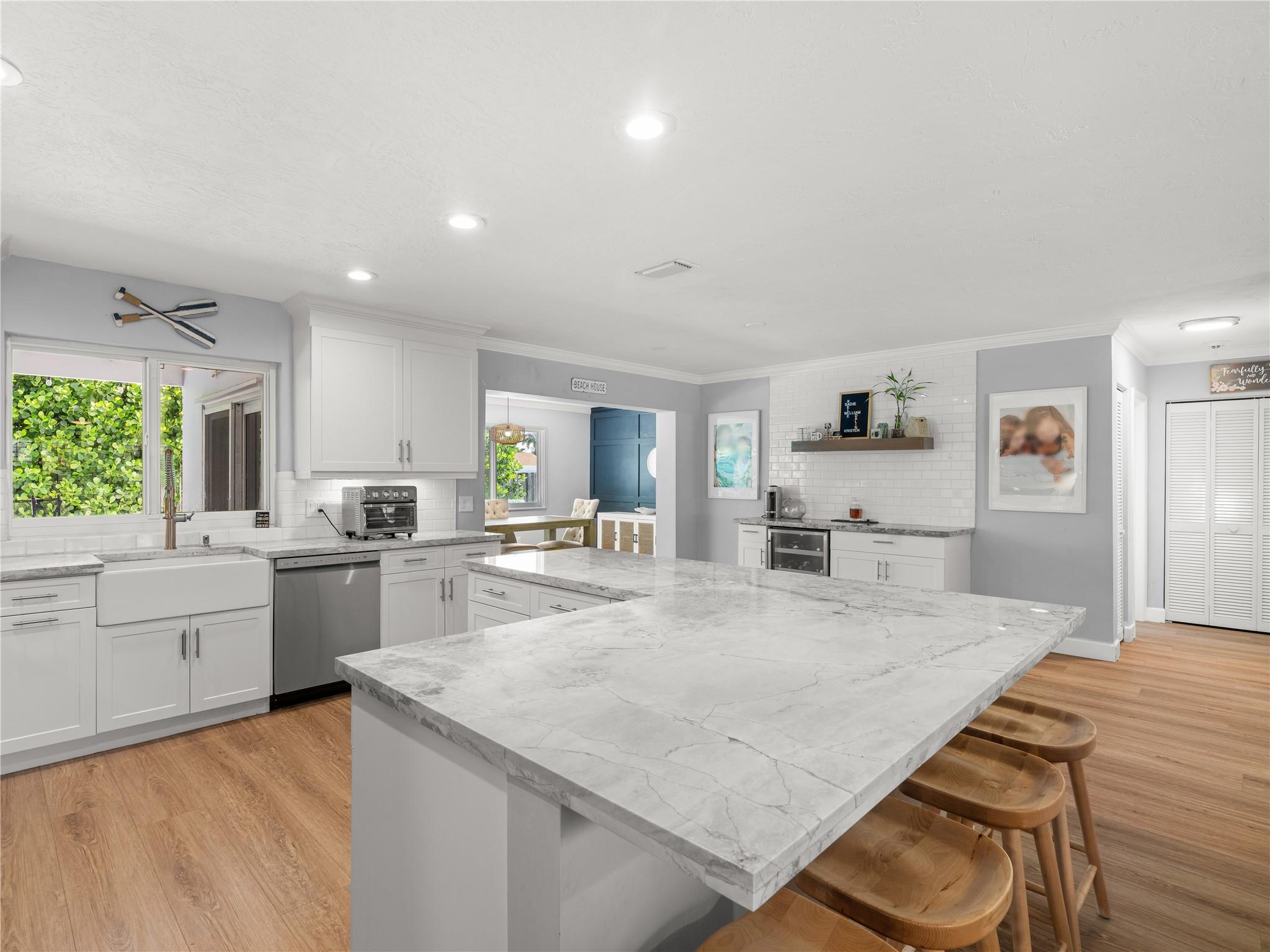 Finally -- the renovated pool home in Flamingo Gardens that you've been waiting for. This property checks all of the boxes: bright & open layout great for entertaining, 3 generously sized bedrooms, 2 renovated bathrooms, new saltwater pool with gorgeous new travertine pool deck, new roof, impact windows & doors, gorgeous vinyl flooring and 2 car garage. Step inside to a beautiful shiplap entryway leading to an entertainer's dream kitchen featuring modern shaker cabinets, large island, newer stainless steel appliances, deep farmhouse sink and pass-through window to the back patio sitting area. Situated on a cul-de-sac with plenty of yard space to entertain or to park your boat/RV/golf cart. No HOA. Zoned for Cooper City A+ schools. You do not want to miss this one.