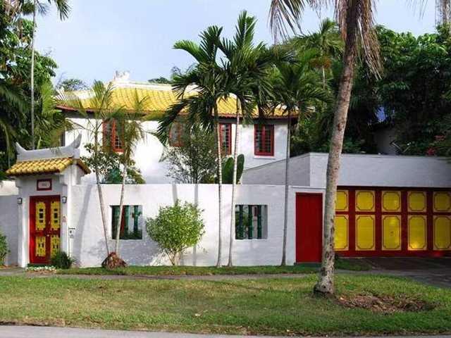 Historic 2 story 5/3.5 home in the remarkable 1920's Chinese Village. 3375 sq', 6090 sq' walled & gated lot, foyer, large dining room, exquisite formal living room with fireplace, oak floors & a wall of intricately carved glass & Chinese fret work doors o verlooking the large backyard. Eat-in kitchen. 1 bedm 1 & 1/2 baths down, 4 bdrms + office & 2 bths up. 2 car garge. Rare opportunity to acquire this elaborately detaied homage to "Forbidden City" architecture. Possibly rm for a pool. Needs some updating.
