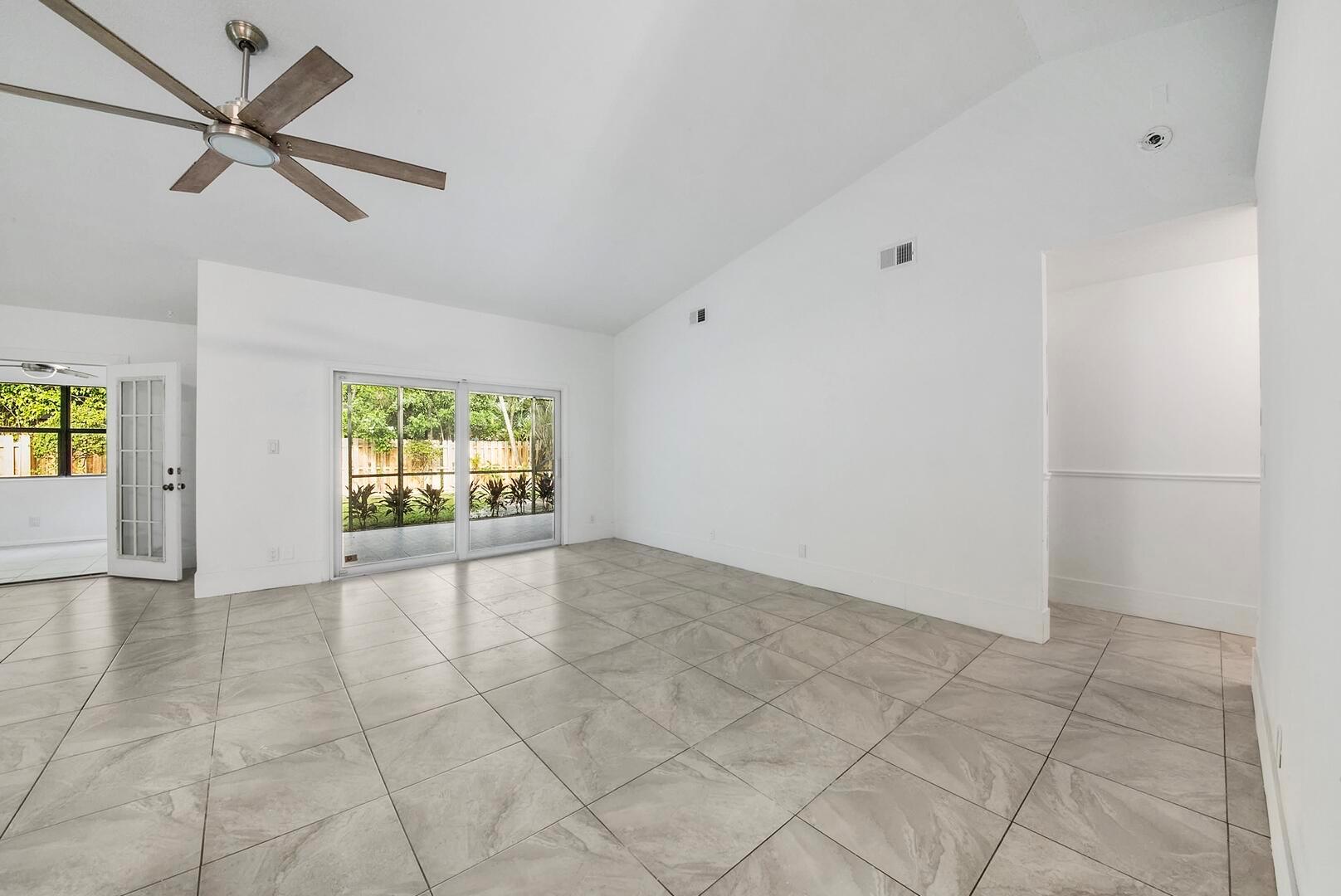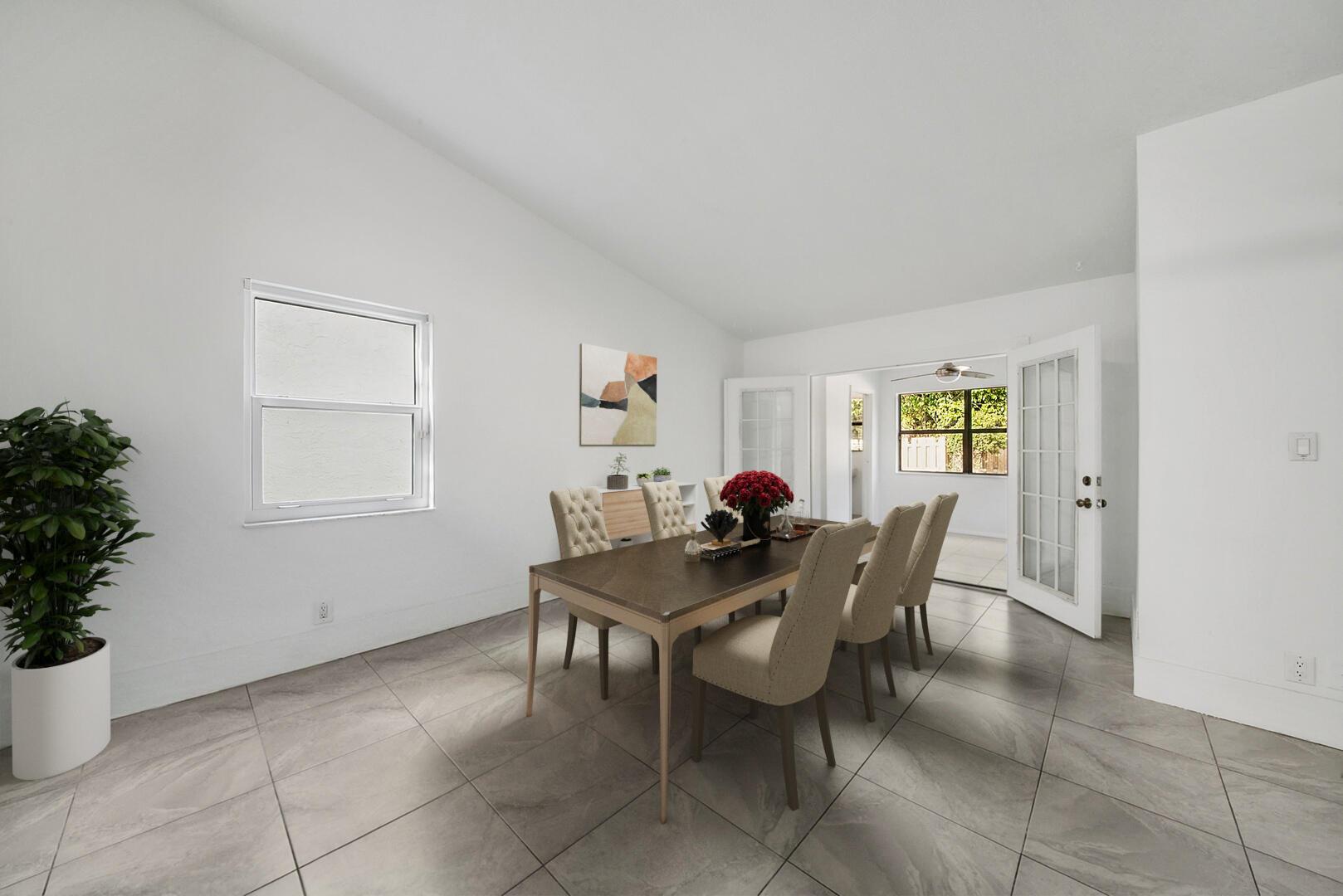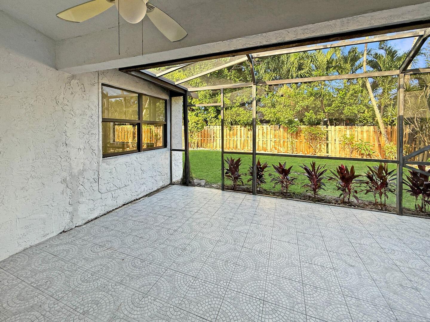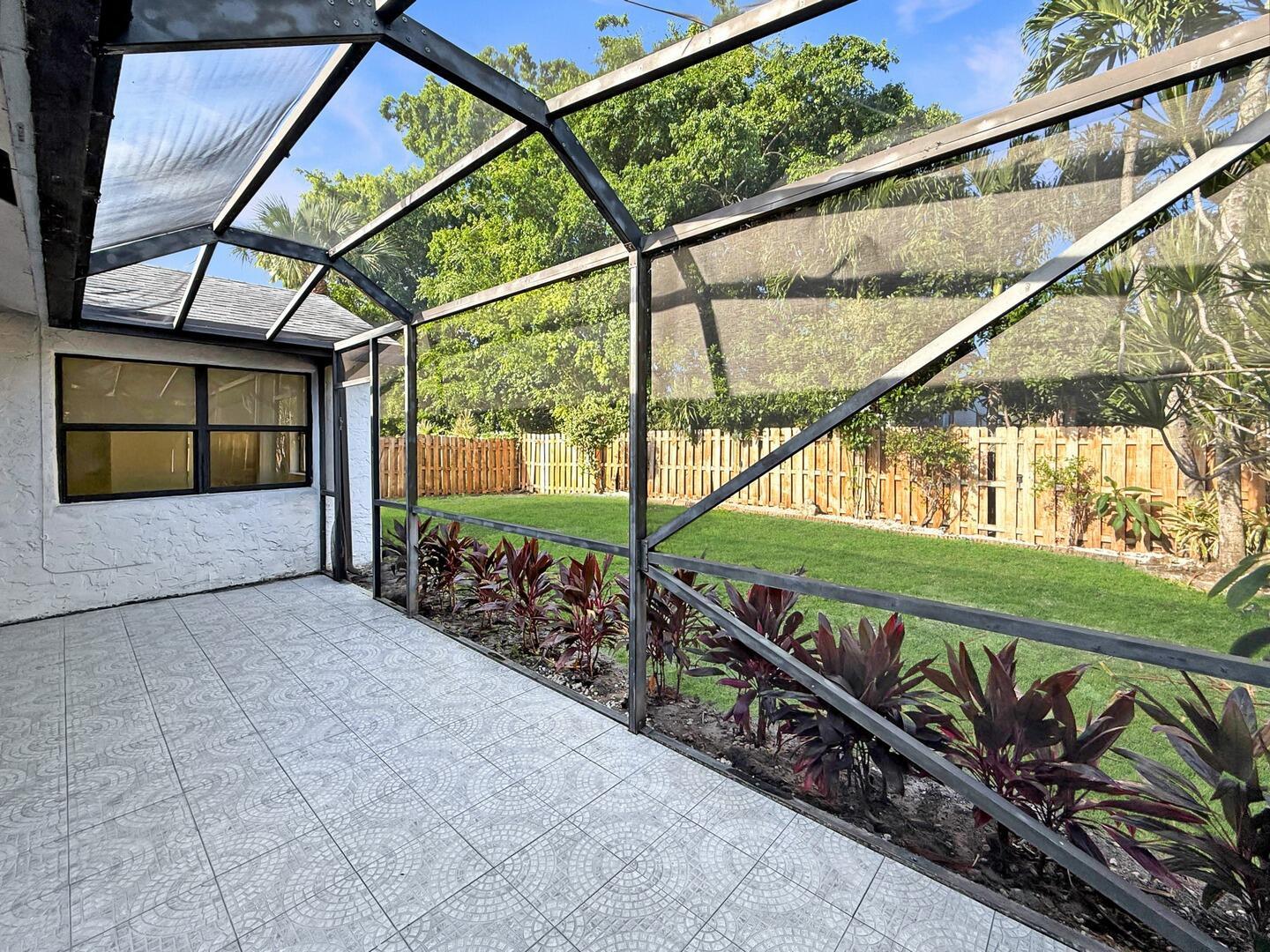 Welcome to this beautifully maintained 4 bedroom, 2 bath home in the desirable Boca Trace community. Step into the inviting foyer and enjoy the spacious feel created by vaulted ceilings and abundant natural light. The home features neutral flooring throughout, has been freshly painted, and includes impact windows for added peace of mind. The updated kitchen is a chef's delight, showcasing granite countertops, a full granite backsplash, and ample cabinetry. The primary suite offers a relaxing retreat with a coffered ceiling, sliding glass doors to the patio, a soaking tub, walk-in shower, and generous closet space. Additional highlights include solar panels for energy efficiency, a newer roof, and a newer washer and dryer