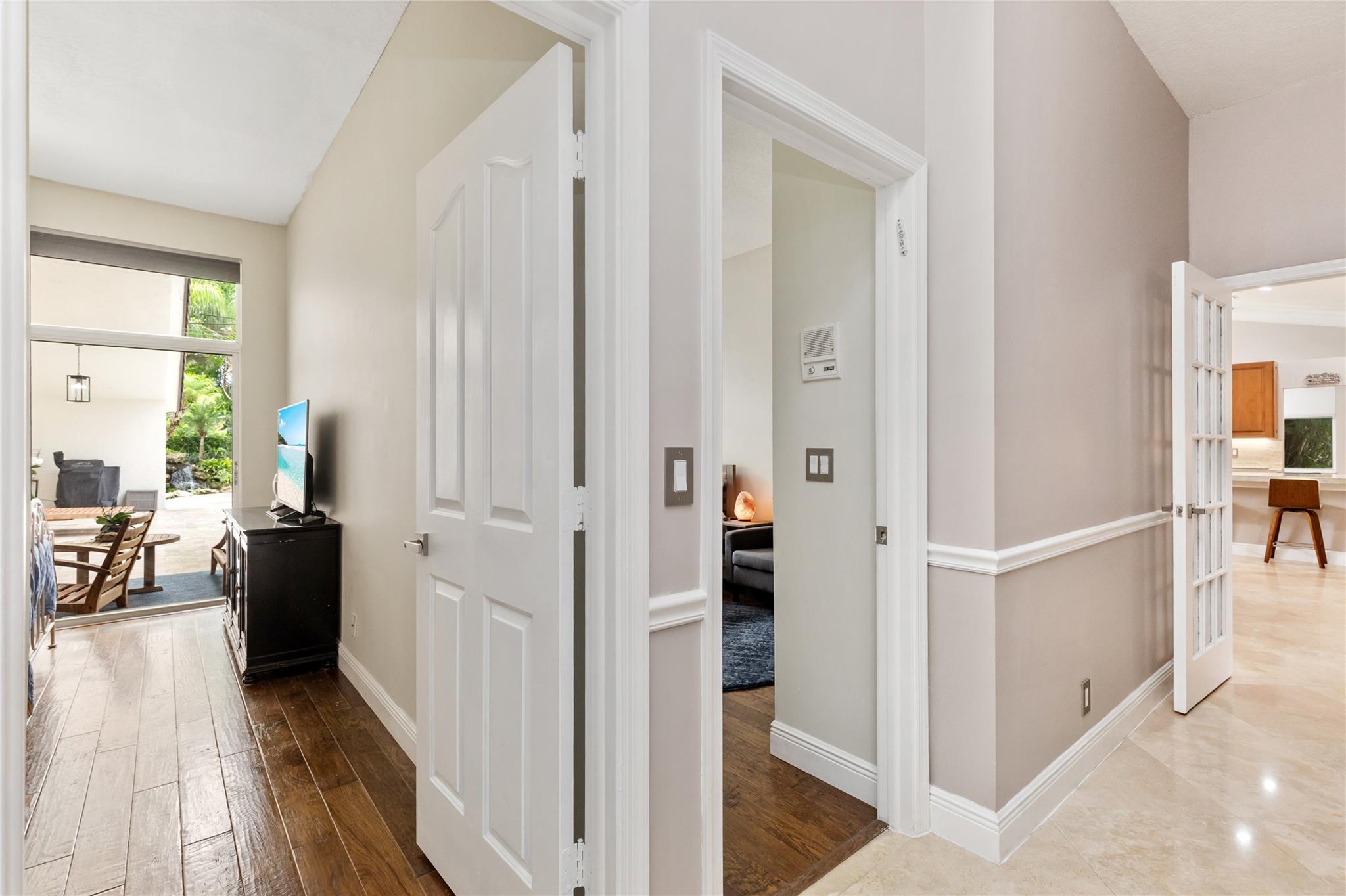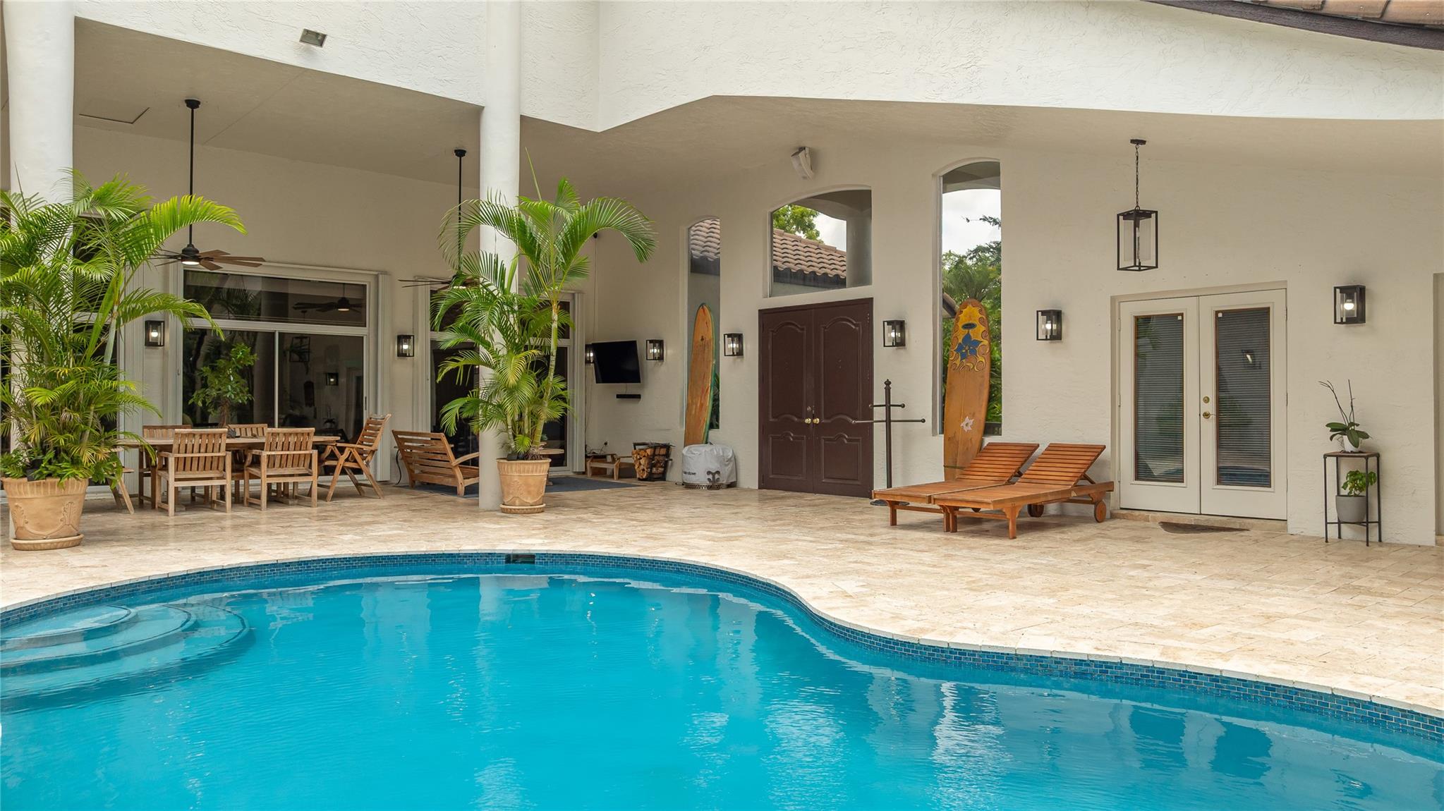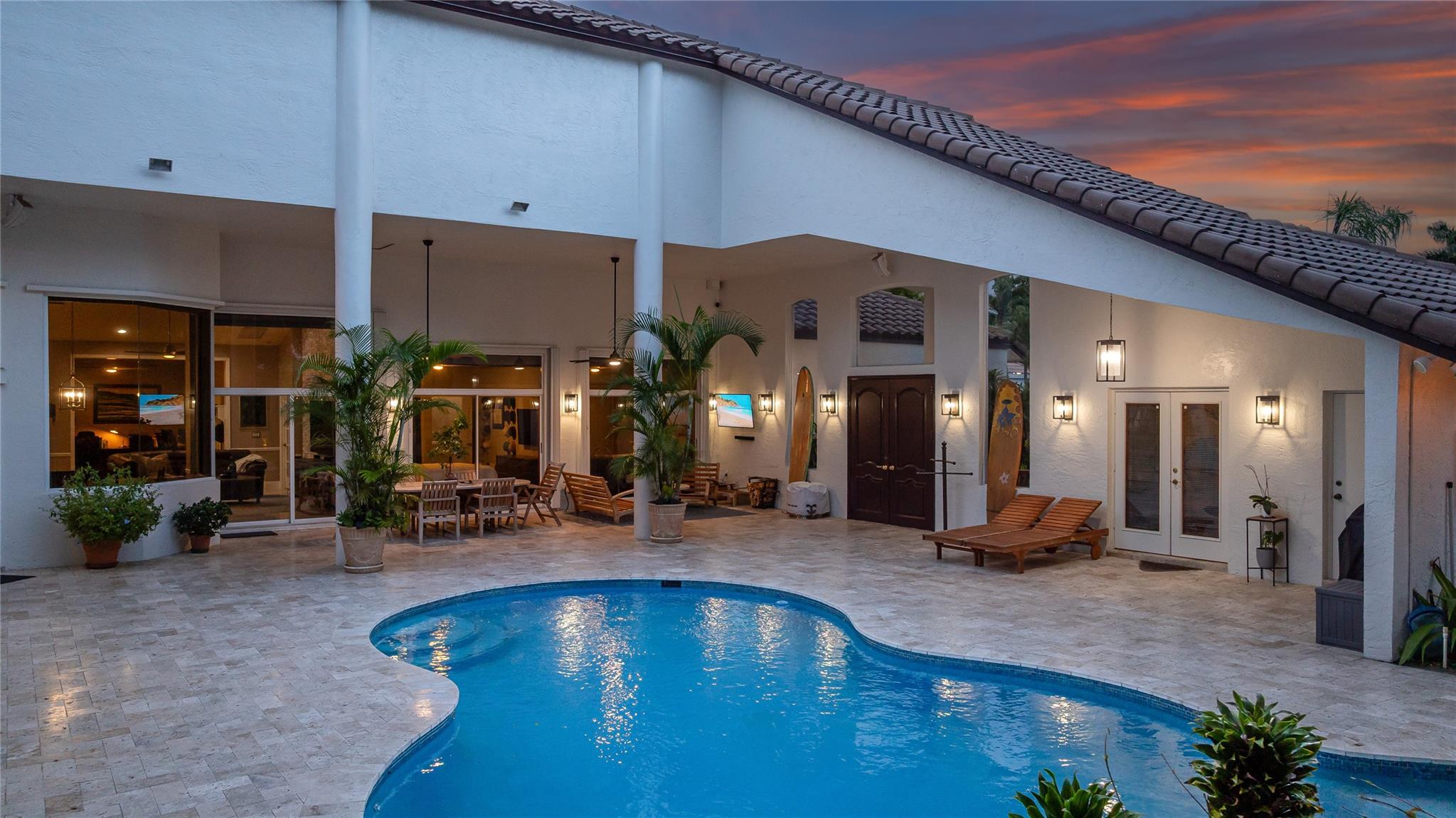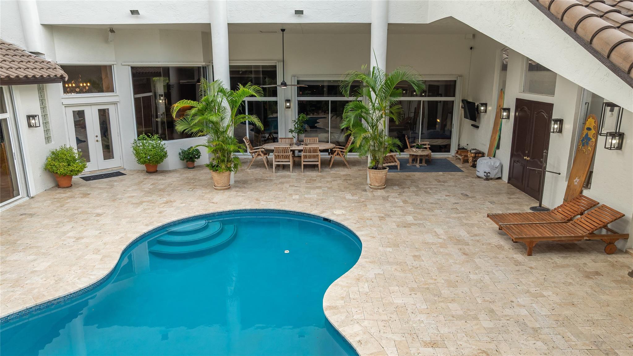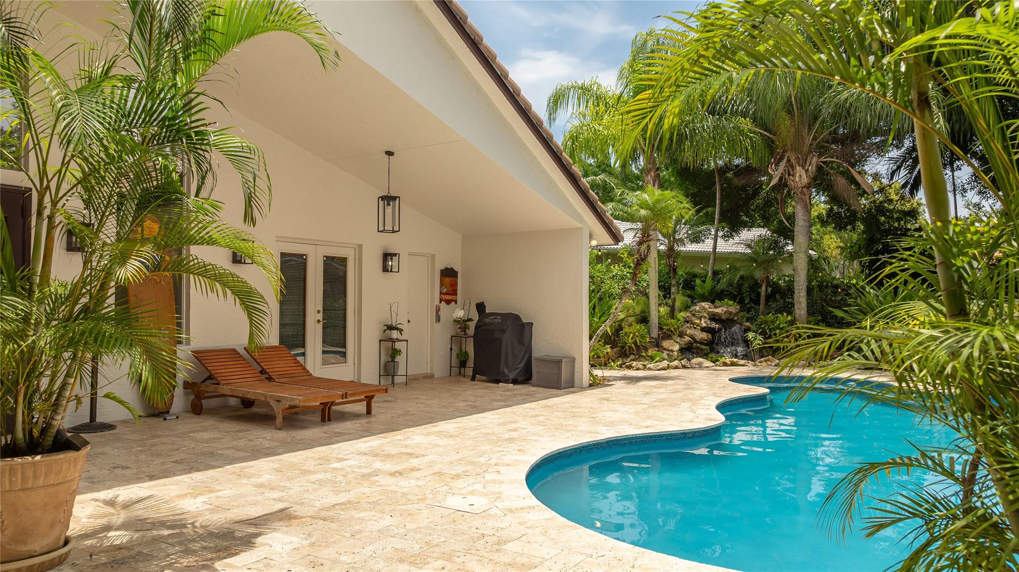 Welcome to Paradise! This stunning courtyard-style home blends comfort, style, & versatility. It features 4 spacious bedrooms plus open den & 3.5 Baths in the main house, along with a 1-bedroom, 1-bath Cabana—ideal for multigenerational living, guests, office or workout space. Perfect Cul De Sac Location. At the heart of the home is an expansive recently upgraded courtyard & pool area—A private oasis & an entertainer’s dream. Inside, enjoy Volume Ceilings, Marble flooring in the main living areas, Wood floors in each bedroom & Upgraded kitchen with quartzite countertops, maple cabinetry & stainless appliances. New Roof 2019. Bright open spaces, natural light & serene energy throughout. This home radiates charm & functionality. It’s more than a House-it’s a lifestyle. Come See & Stay
