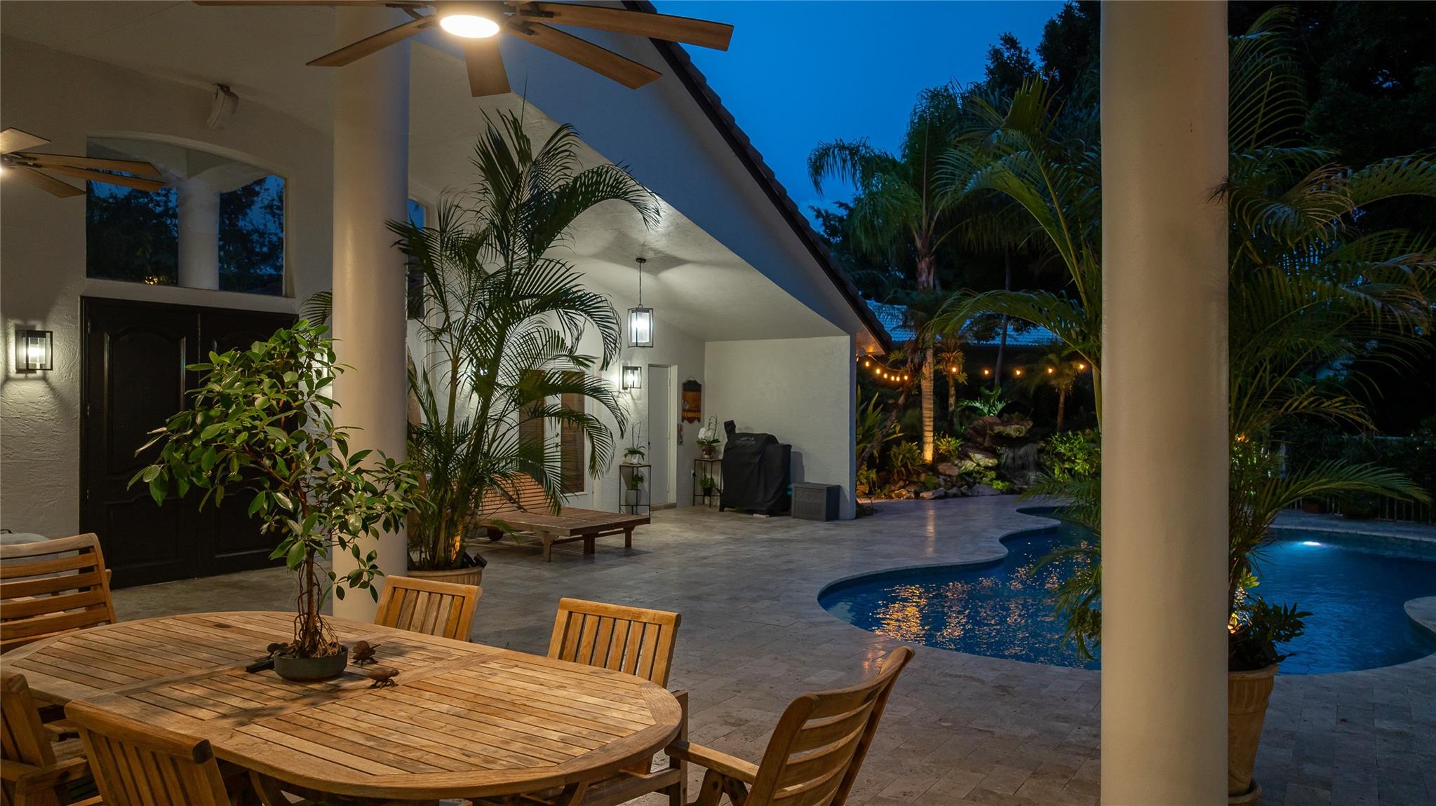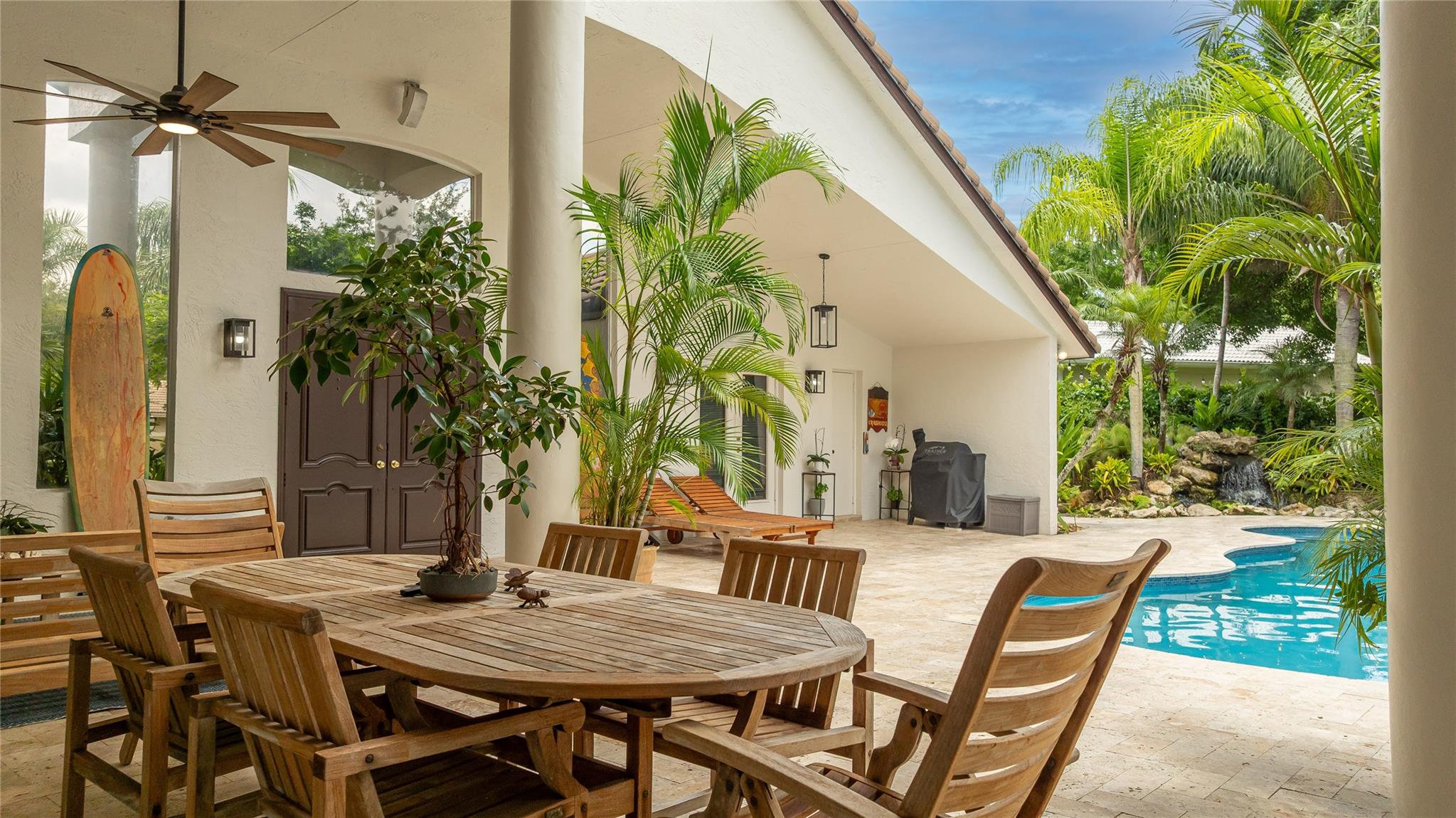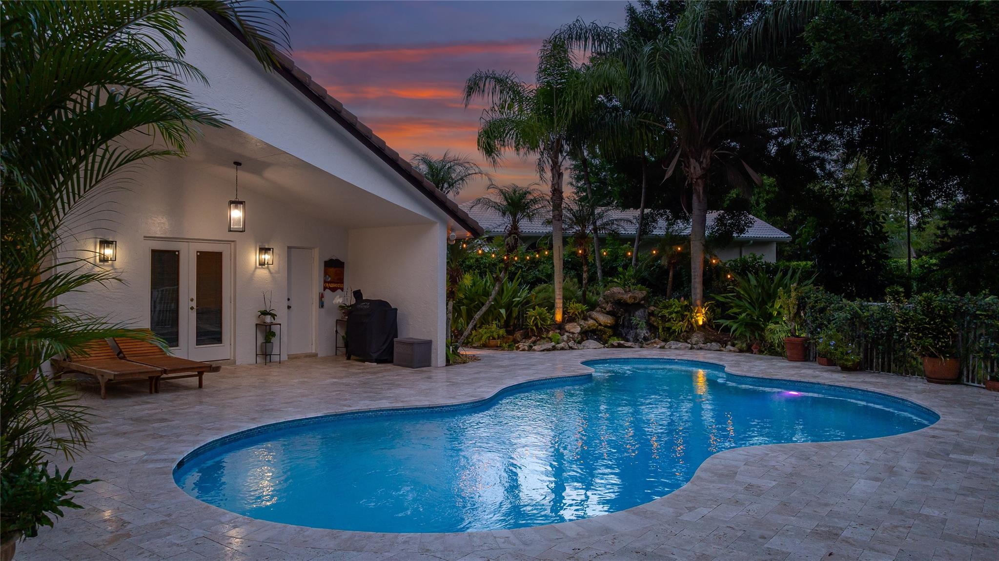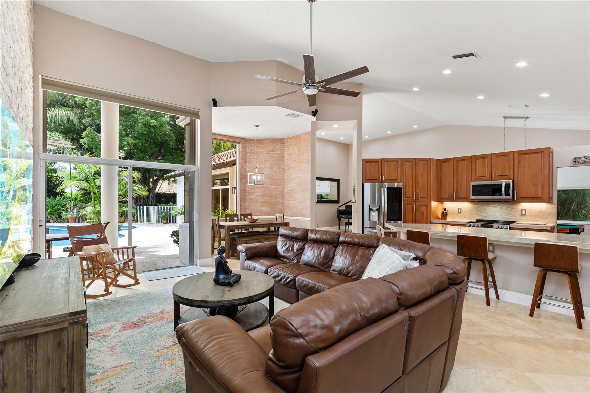 Welcome to Paradise! This stunning courtyard-style home blends comfort, style, & versatility. It features 4 spacious bedrooms plus open den & 3.5 Baths in the main house, along with a 1-bedroom, 1-bath Cabana—ideal for multigenerational living, guests, office or workout space. Perfect Cul De Sac Location. At the heart of the home is an expansive recently upgraded courtyard & pool area—A private oasis & an entertainer’s dream. Inside, enjoy Volume Ceilings, Marble flooring in the main living areas, Wood floors in each bedroom & Upgraded kitchen with quartzite countertops, maple cabinetry & stainless appliances. New Roof 2019. Bright open spaces, natural light & serene energy throughout. This home radiates charm & functionality. It’s more than a House-it’s a lifestyle. Come See & Stay