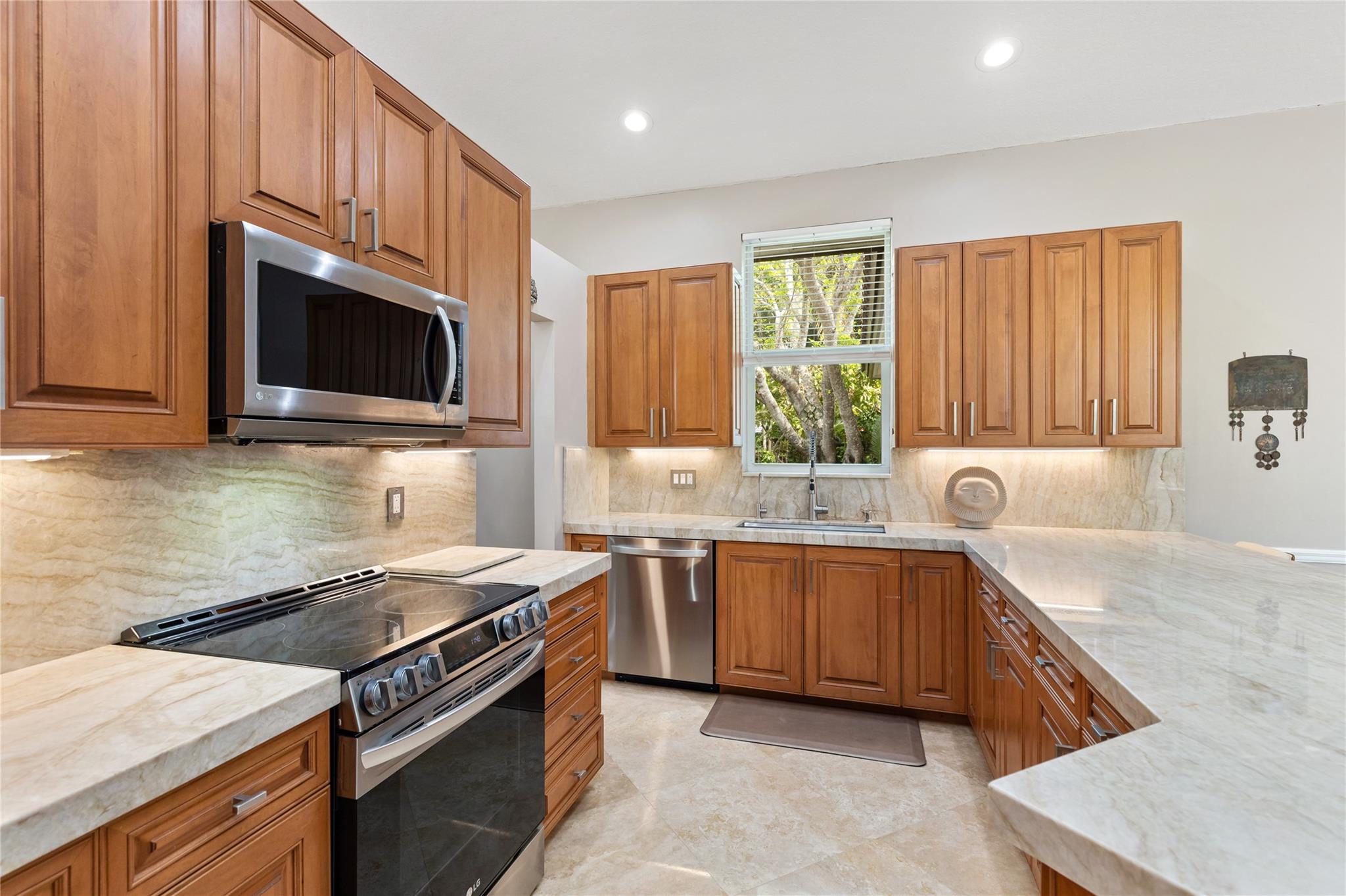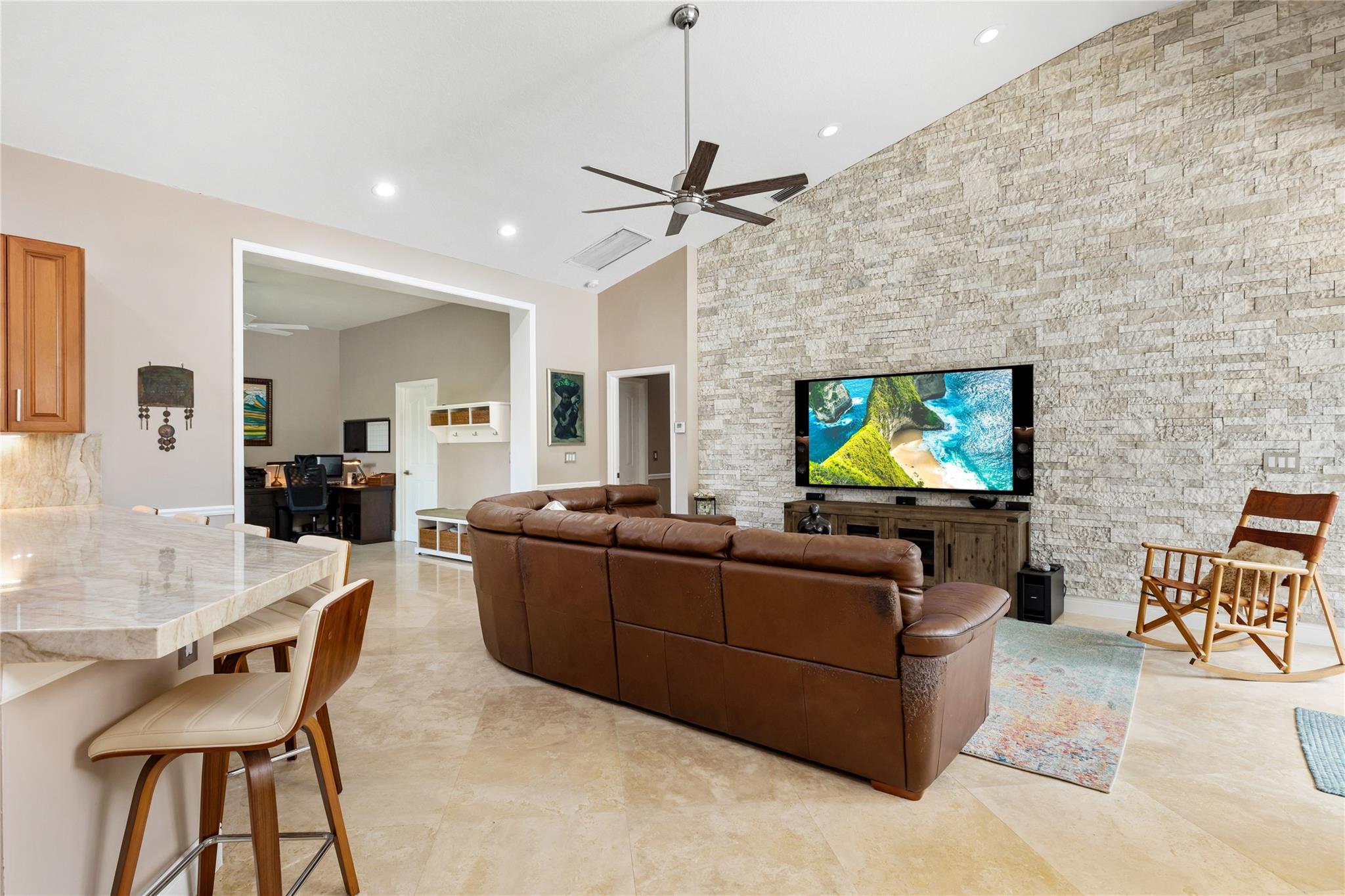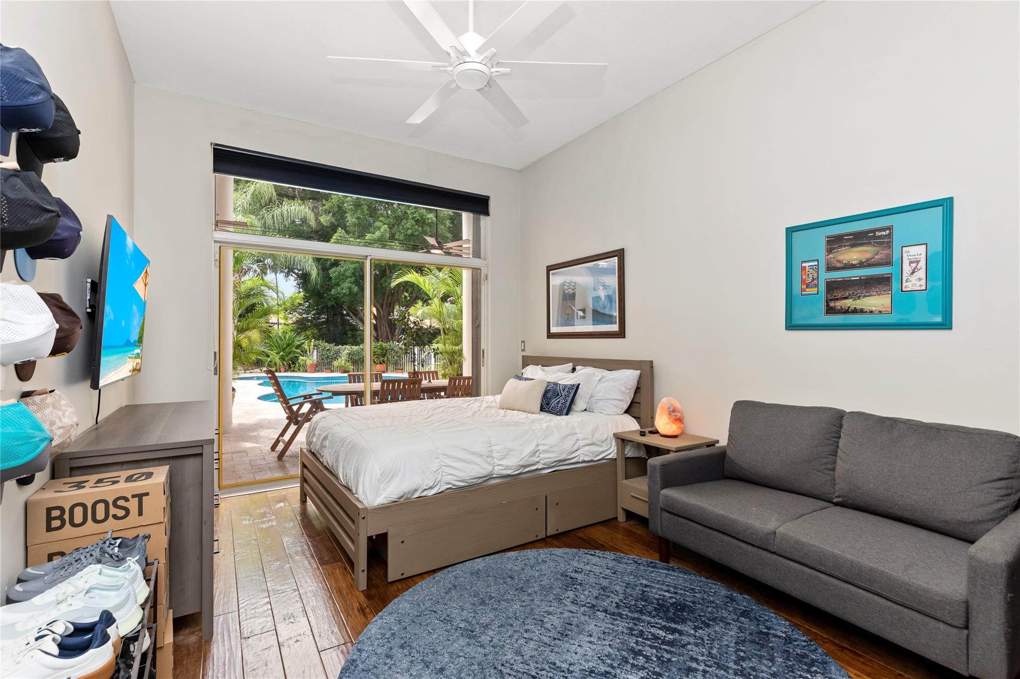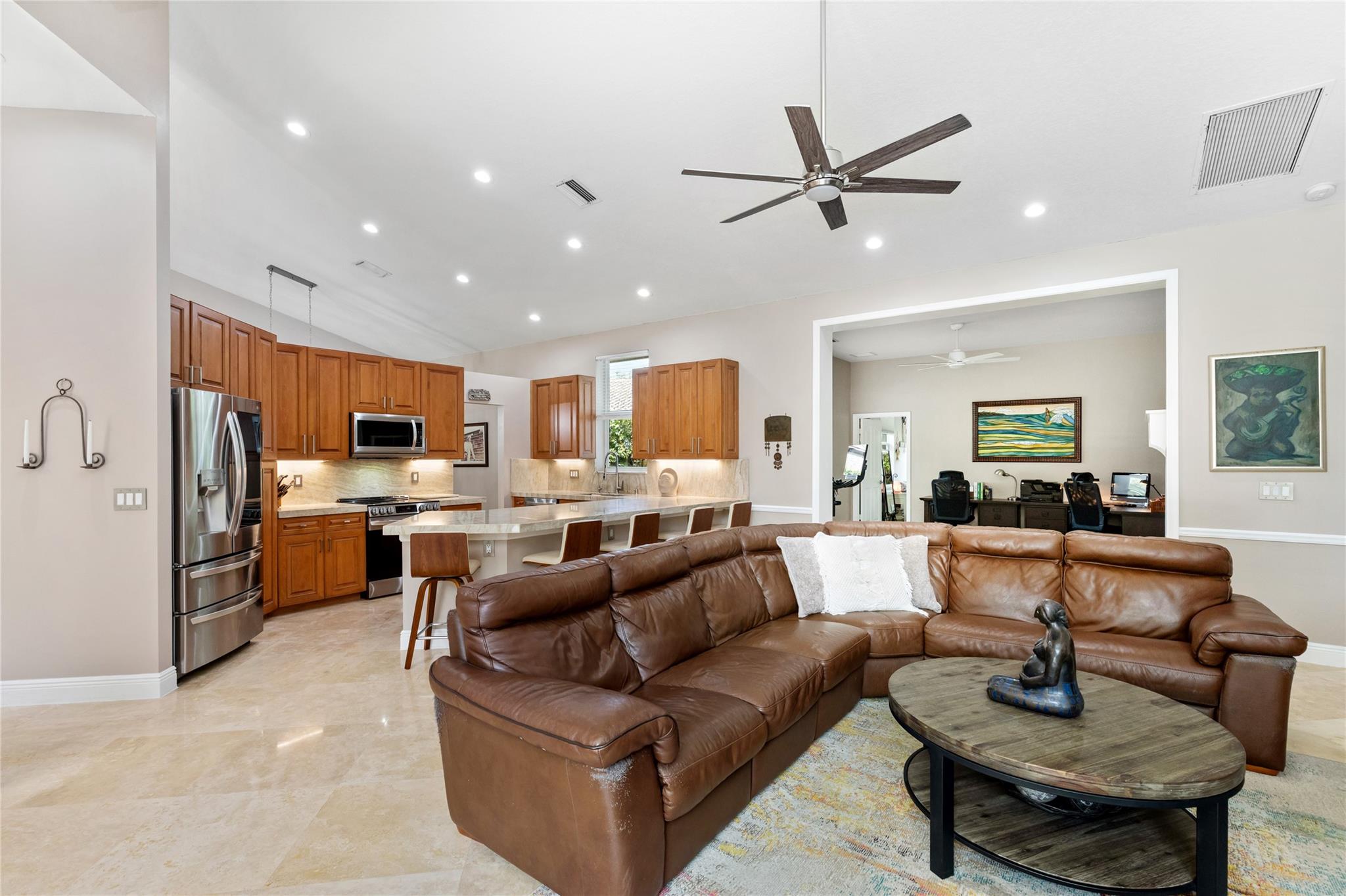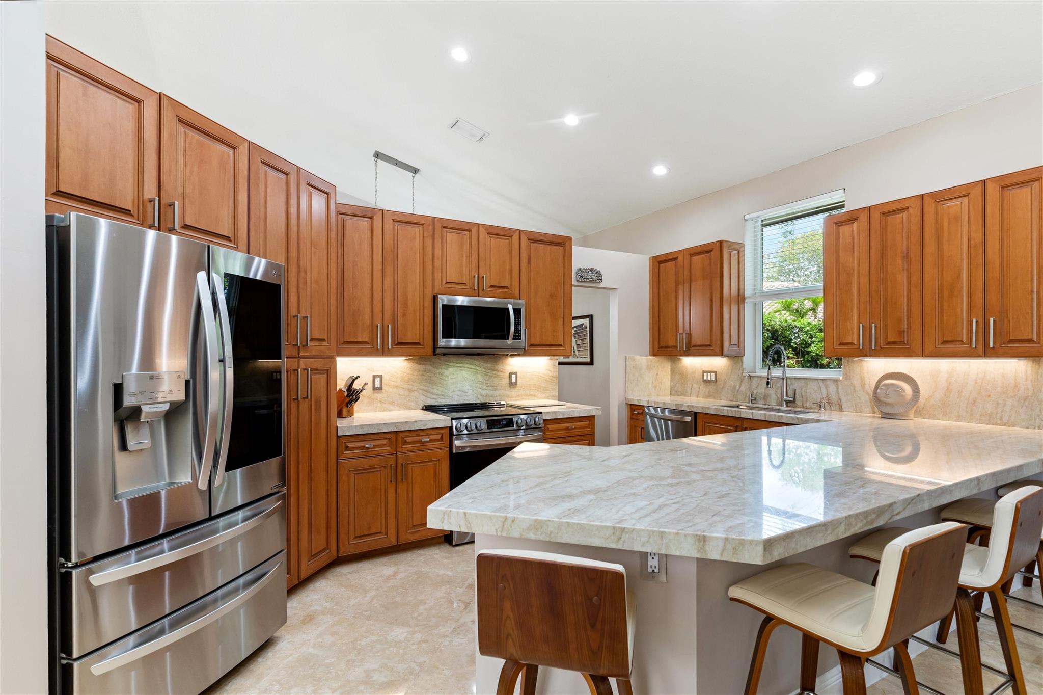Welcome to Paradise! This stunning courtyard-style home blends comfort, style, & versatility. It features 4 spacious bedrooms plus open den & 3.5 Baths in the main house, along with a 1-bedroom, 1-bath Cabana—ideal for multigenerational living, guests, office or workout space. Perfect Cul De Sac Location. At the heart of the home is an expansive recently upgraded courtyard & pool area—A private oasis & an entertainer’s dream. Inside, enjoy Volume Ceilings, Marble flooring in the main living areas, Wood floors in each bedroom & Upgraded kitchen with quartzite countertops, maple cabinetry & stainless appliances. New Roof 2019. Bright open spaces, natural light & serene energy throughout. This home radiates charm & functionality. It’s more than a House-it’s a lifestyle. Come See & Stay