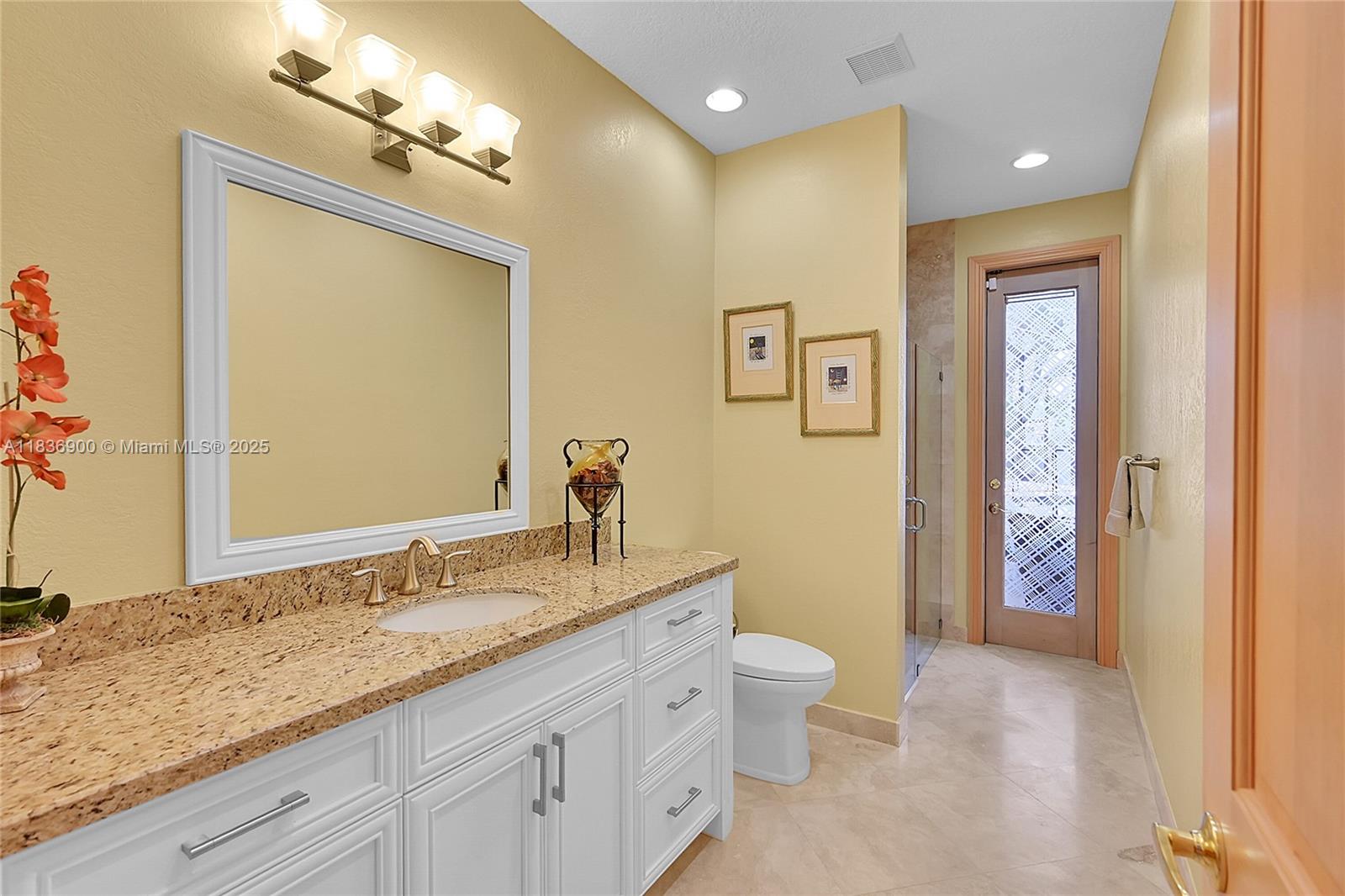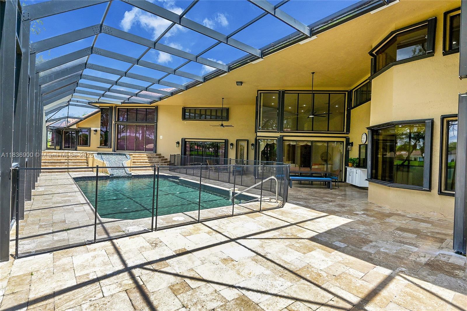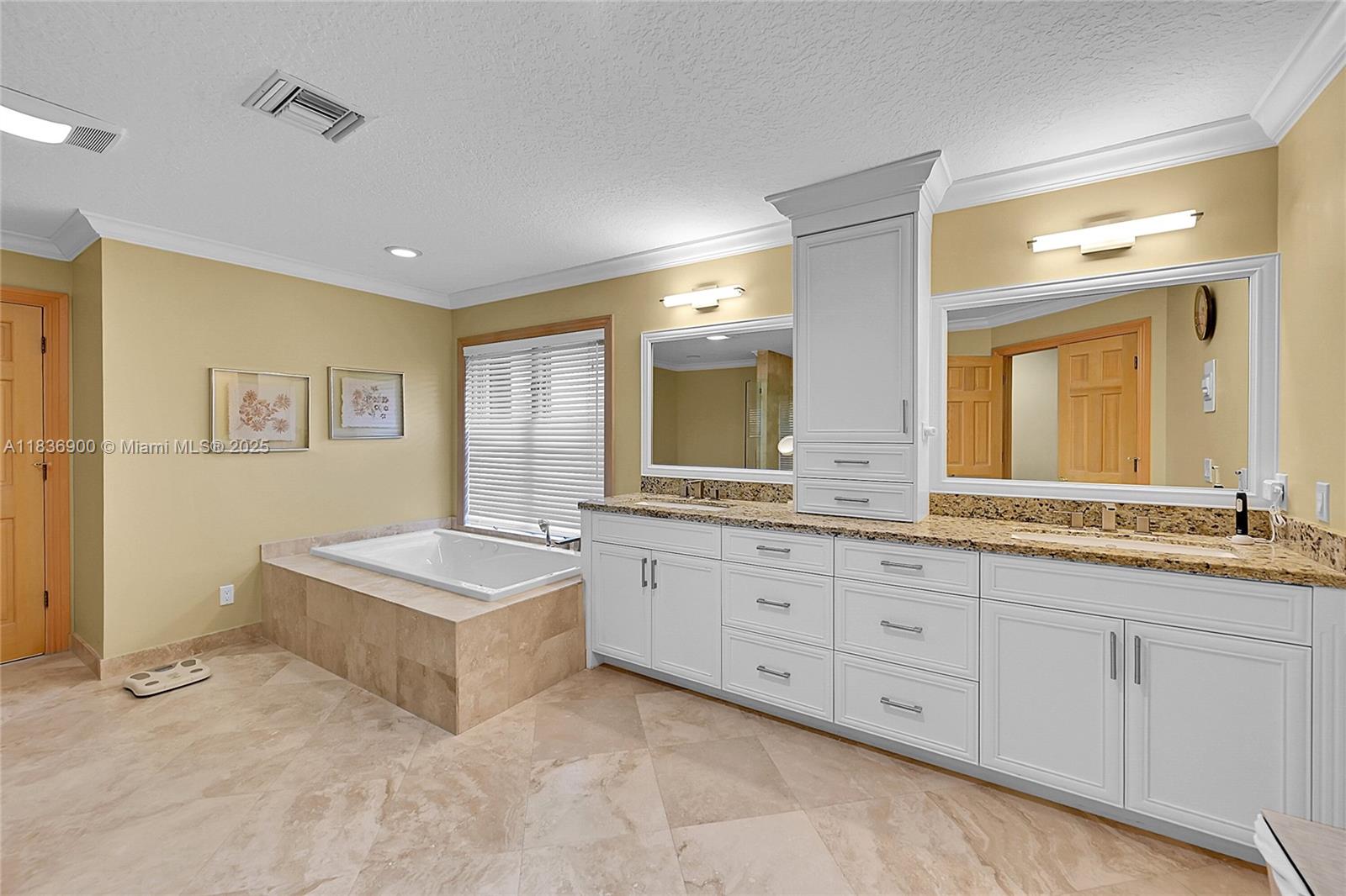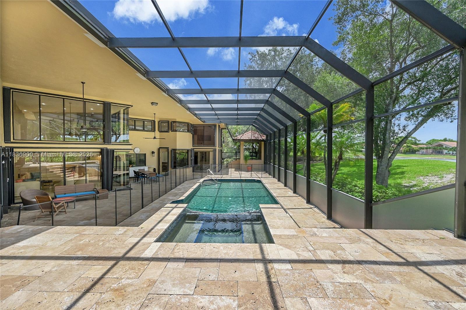 Custom 5500sf builder’s home that starts with 16' of panoramic golf & lake views from the sprawling entry with 21' ceilings! 4 Ensuites (3 on the main floor), 2 lofts, office & library with 16’ shelves & sliding ladder—the owner's favorite room! The white kitchen shines with full granite backsplash, stainless KitchenAid appliances, and endless storage that flows into a family room with fireplace, wet bar, & built-ins. Hardwood and marble floors, central vac, and plantation shutters throughout. Custom built closets! The owner’s wing is a retreat with a exercise and sitting room. Outdoors: travertine honed patio, outdoor cabinets for KT pass thru, tile-slide pool, privacy screen, and underground pool cleaning system. Elevated porch swing for amazing sunsets! Culdesac location feels private!