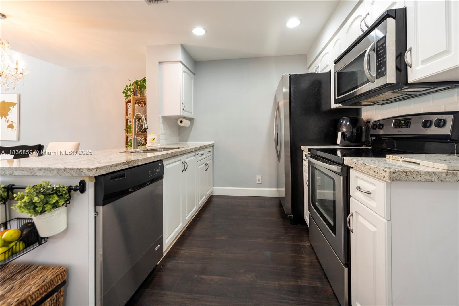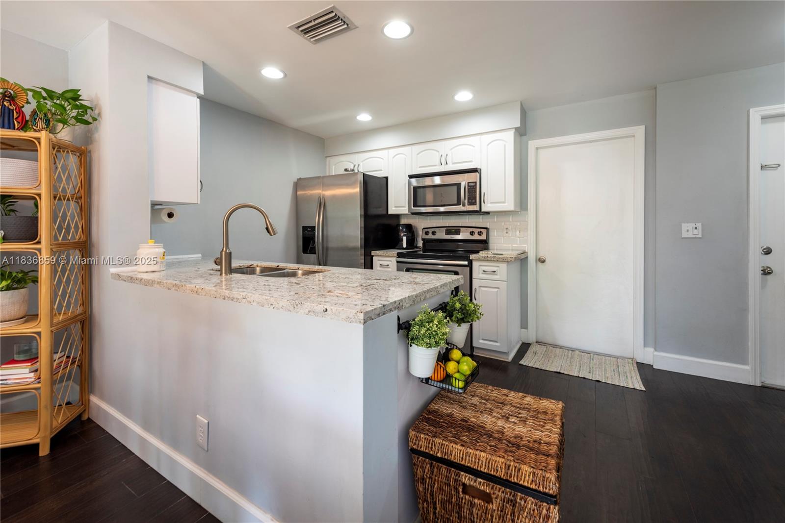 Renovated 2 Bedroom, 1.5 Bathroom Townhome in San Sebastian community in Weston. Features include a modern kitchen with white cabinets, Granite countertops, stainless steel appliances, and contemporary finishes. Spacious layout with laminated wood floors in all areas, and updated designer bathrooms. Accordion hurricane shutters, open patio, and 1-car garage with washer/dryer hookup. A large driveway fits 2 additional cars. Enjoy nice amenities: pool, playground, and lush landscaping. Walking distance to A-rated schools, parks, and libraries. Easy access to I-75, shopping, dining, and just 20 mins to Ft. Lauderdale Airport and beaches. Move-in ready!
