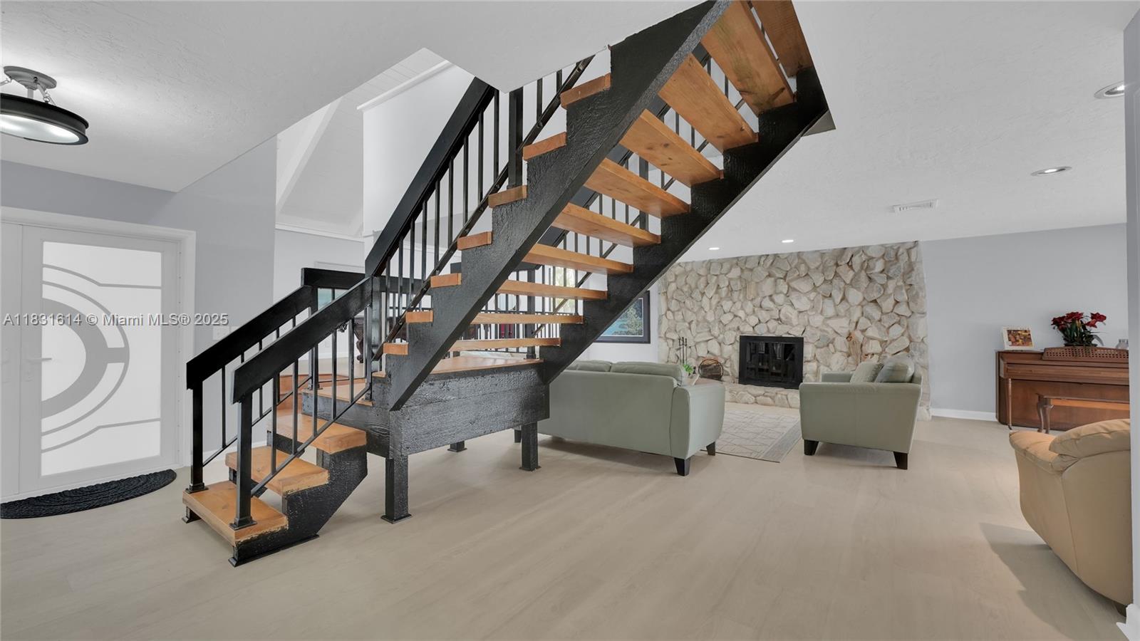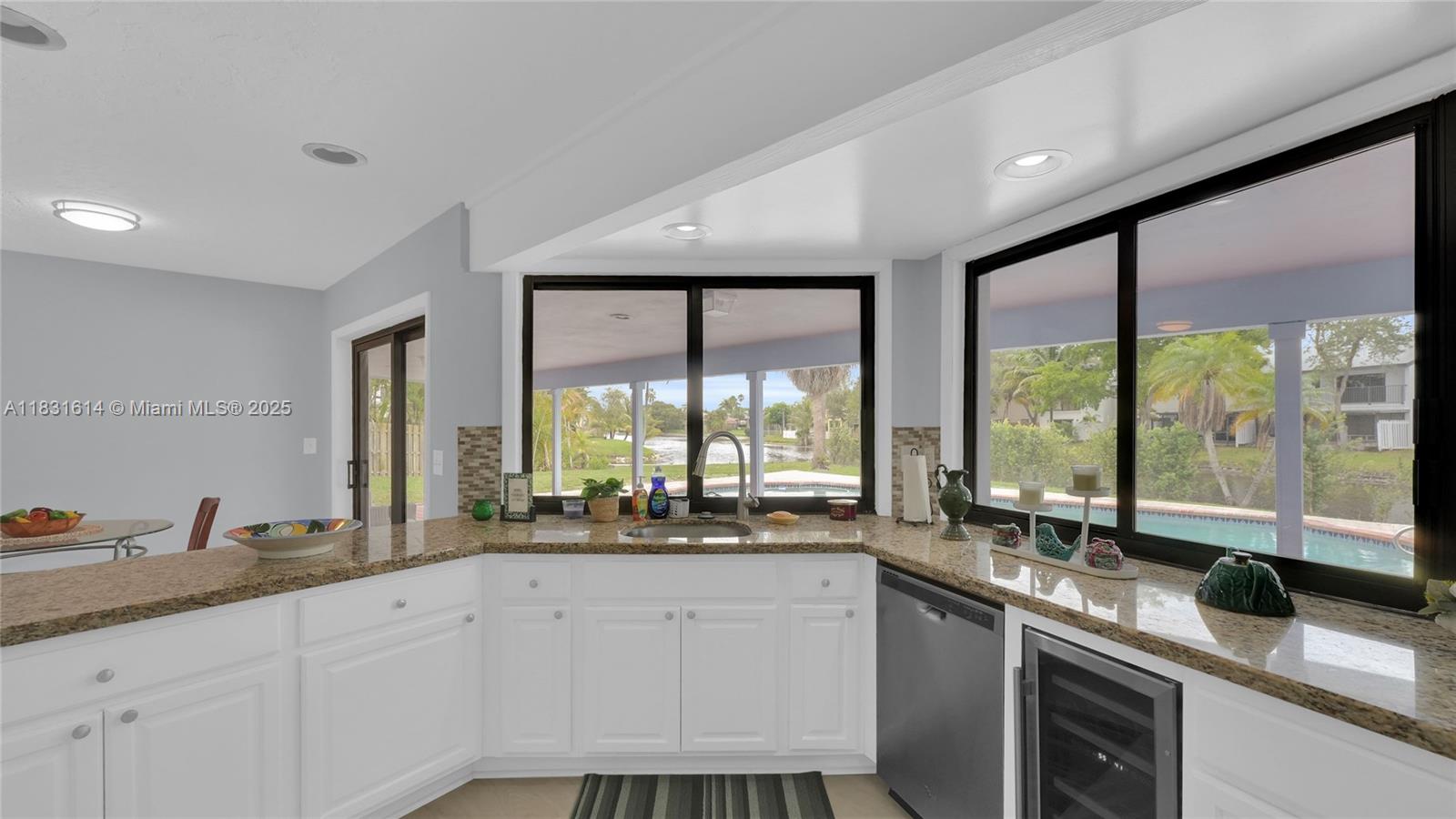 Lovely lake front executive home with large .36 acre lot & huge pool-new diamond brite. NEW ROOF in Dec 2021. ALL NEW IMPACT Windows & Doors. NEW Sprinklers. NEW Waterproof Luxury Vinyl Flooring (lifetime) across entire home. Large eat-in kitchen: granite countertops, wood cabinets & pantry, S/S appliances, wine fridge & new fridge w/ craft ice. Laundry/mud room off kitchen. Main bedroom oasis has spectacular bathroom with double shower, jetted tub, walk-in closet. Game room with 16 ft ceilings. Large loft/family room upstairs. Living room with wood burning fireplace. Huge 700 sq foot covered patio + 700 sq foot 2nd floor deck! Huge garage can fit 4 cars tandem parked! Quiet cul-de-sac in desirable Plantation. NO HOA! 6,000 Sq ft total! $150K+ in Renovation. Rented for 1 yr.