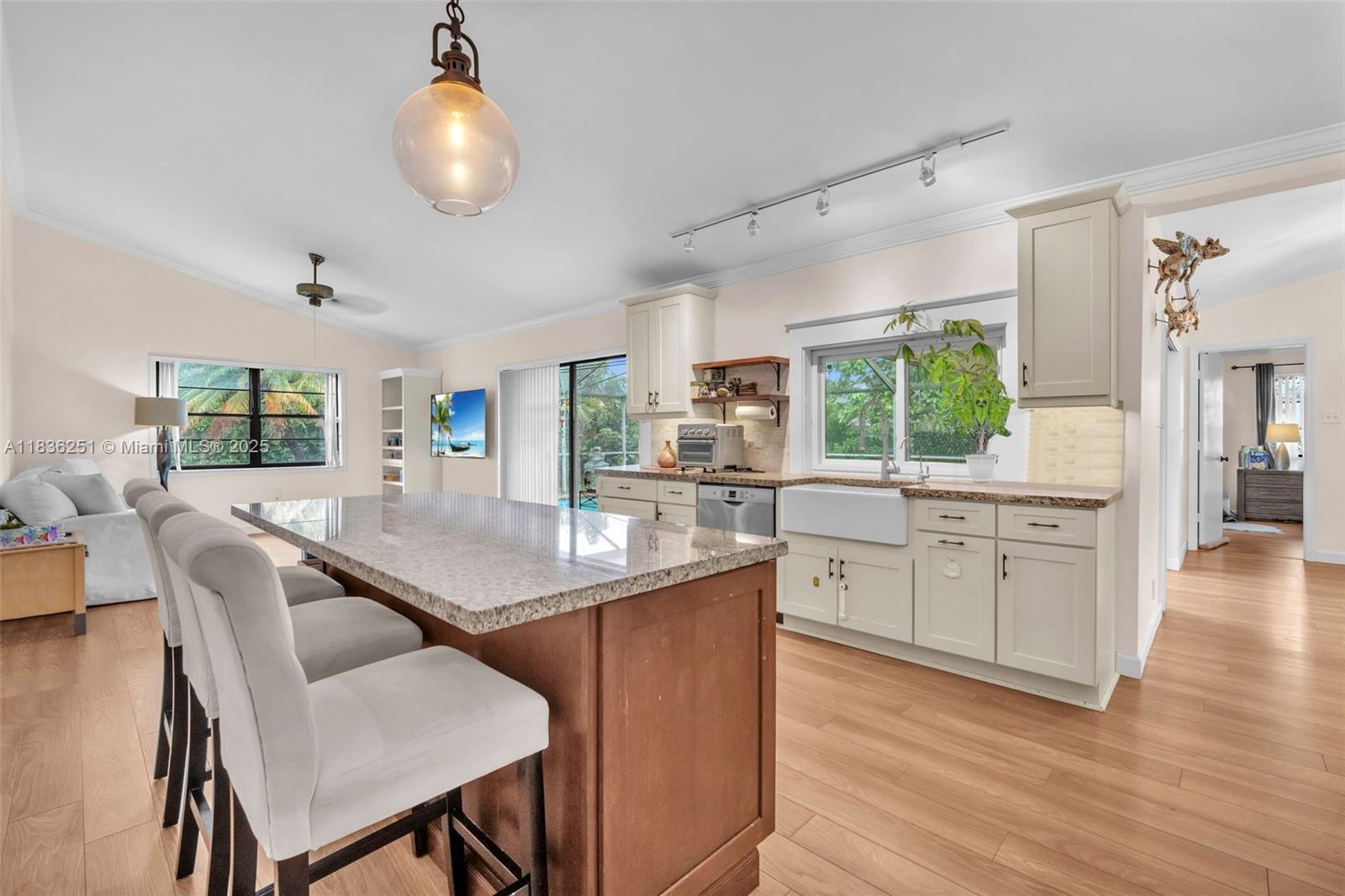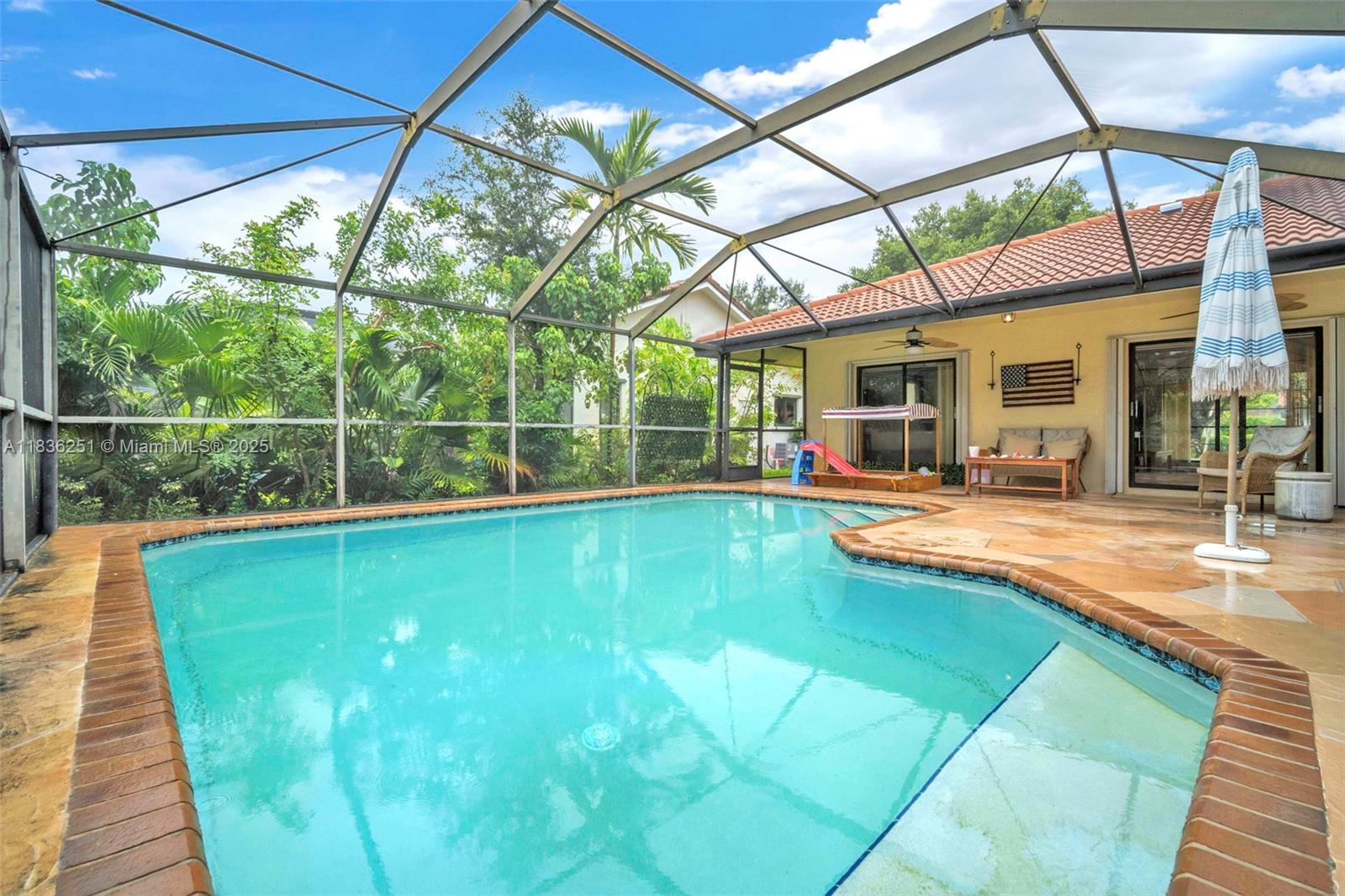 Charming 3-bed, 2-bath single-story home with split bedroom layout, 2-car garage, and spacious screened-in pool with partially covered patio, perfect for Florida living. Enjoy an updated kitchen with granite counters, island, stainless-steel appliances, and soft closed cabinets-drawers. Laminate wood floors flow through all living areas, while abundant windows fill the home with natural light. Features include indoor utility room with Bosch washer/dryer, a new sprinkler pump and automatic garage door opener. Located near Coral Springs High, parks, shopping, dining, grocery stores and less than a mile from a fire station.
