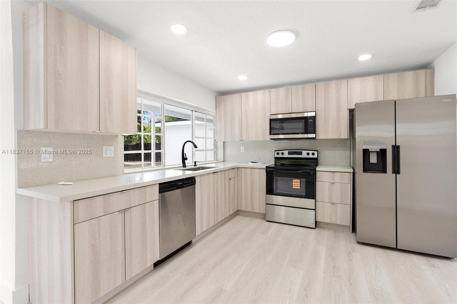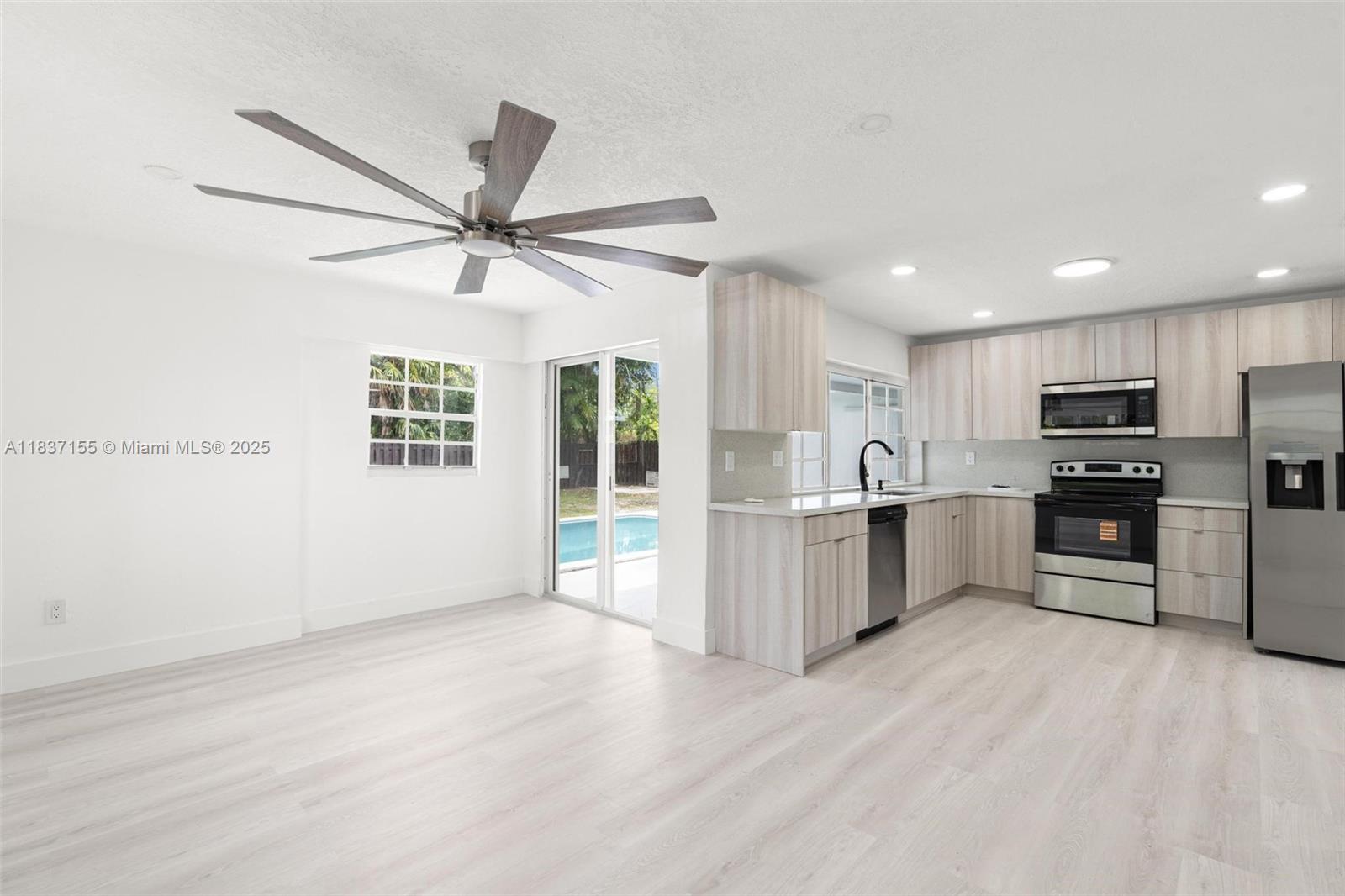 Welcome to this beautifully fully remodeled, NO HOA home in the highly sought-after Sunrise Golf Village! This move-in-ready property features all brand-new upgrades, including a NEW roof, kitchen with new appliances, electric water heater, bathrooms, flooring, interior doors, closets, and both interior and exterior lighting. It also boasts a HUGE NEW 5-ton AC unit and a NEW GARAGE door. Pool has been completely resurfaced and beautifully tiled. The interior, exterior, and fencing have all been freshly painted, giving the home a clean and modern feel throughout. Sitting on an oversized CORNER LOT, this property includes a gated rear entry with plenty of space to park your BOAT, RV, OR BOTH.