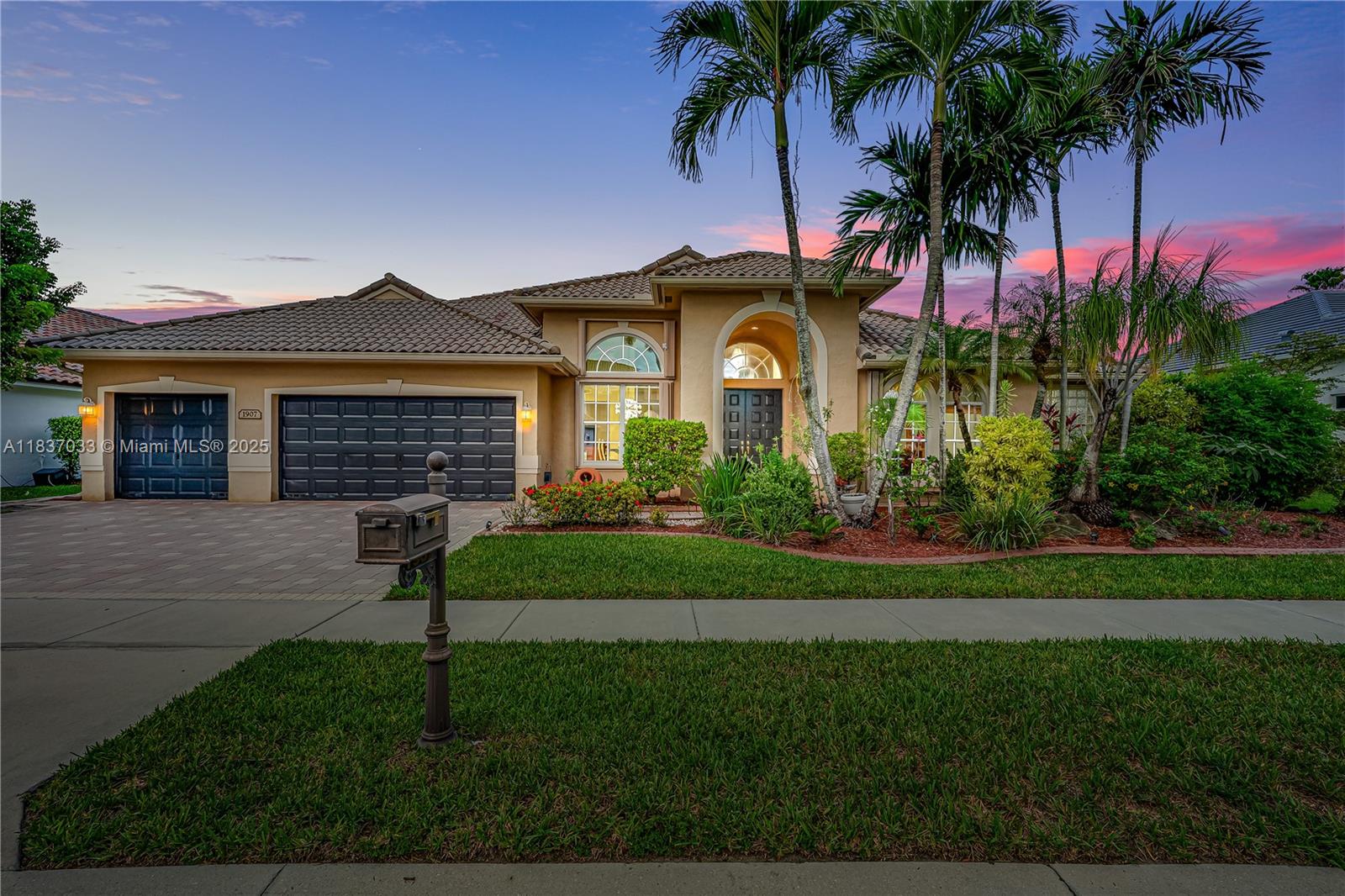 RARELY AVAILABLE MARQUIS MODEL LOCATED IN THE LUXURIOUS CRYSTAL HARBOUR SECTION OF PEMBROKE FALLS * THIS ELEGANT 5 BEDROOM, 3.5 BATHROOM HOME OFFERS A 3-CAR GARAGE, COMPLETE ACCORDION SHUTTERS, PARTIAL IMPACT WINDOWS, & A WHOLE HOUSE GENERATOR * STEP INSIDE TO SOARING 14-FOOT VOLUME CEILINGS, BEAUTIFUL JERUSALEM STONE FLOORING IN THE MAIN LIVING AREAS, & AN ABUNDANCE OF NATURAL LIGHT * THE KITCHEN OFFERS GRANITE COUNTERTOPS & REAL WOOD CABINETRY * THE PRIMARY SUITE FEATURES AN ELEGANT TRAY CEILING, 2 LARGE CLOSETS, PLUS AN ADDITIONAL WALK-IN CLOSET * THE BACKYARD IS PRIVATE & GENEROUSLY SIZED COMPLETE WITH A SCREENED-IN COVERED PATIO & AMPLE SPACE FOR A POOL * COMMUNITY AMENITIES INCLUDE A RESORT-STYLE CLUBHOUSE, NATURAL GAS & MORE * HOA INCLUDES CABLE, INTERNET, 24HR SECURITY & MORE!