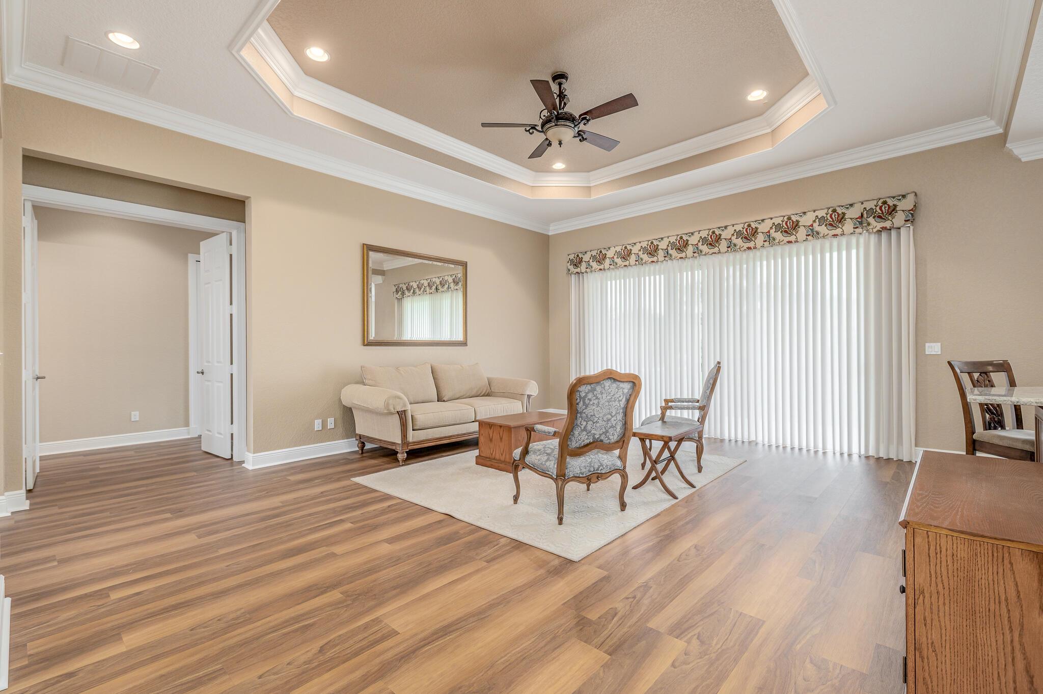 This beautiful Tres Belle home is one of the best values in Martin County! The house is a Kolter-Homes Avalon model with 2541 square feet of living area featuring a great room concept with a split-plan that has three bedrooms and two baths. The very large great room easily accommodates your desired layouts for living and dining. When you enter the house, you will immediately see the beautiful coffered ceilings, the custom crown moldings, silhouette window shades and the luxury vinyl flooring throughout the house. The master wing is large with two walk-in closets separating the bedroom from the bath. The master bath is very accommodating with his/her's vanities, shower stall, walk-in tub and private water closet. The private guest wing is on the opposite side of the house with a