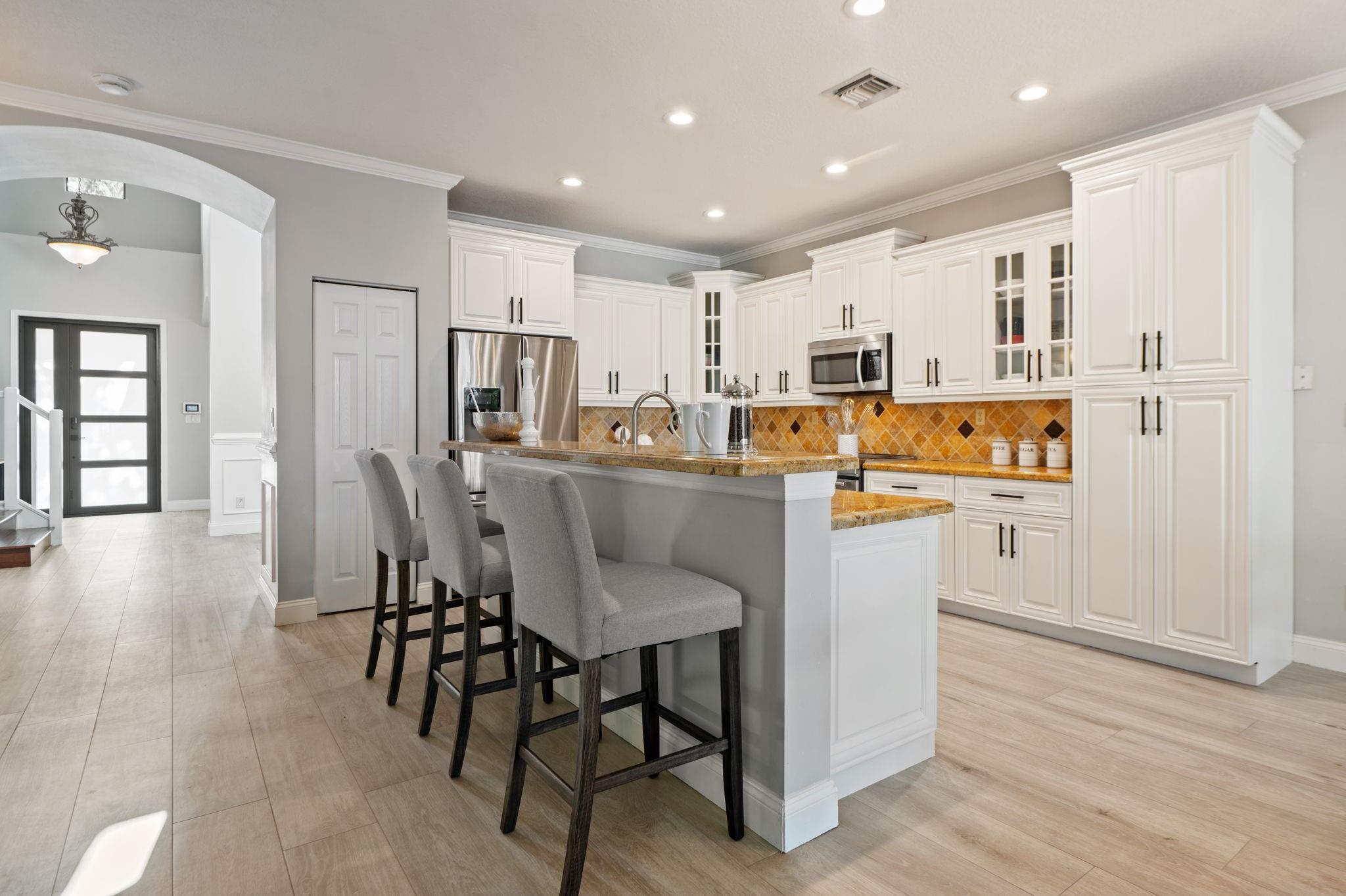 ***NEW ROOF, NEW GUTTERS AND NEW IMPACT WINDOWS & DOORS!!*** Welcome to this stunning 5 Bedroom/4Bath updated home perfectly designed for modern living. The thoughtful layout includes a convenient bedroom and full bath on the first floor ideal for guests. Updated kitchen equipped with high-end Kitchen-Aid appliances, new induction range/oven, granite counters & freshly painted kitchen cabinets add a modern flare. Enjoy an outdoor oasis that features an open heated pool & spa, new pool pump, paver patio & a Tiki Hut that's perfect for entertaining. A Volt Solar system for low power bills, new garage door opener with Amazon access open/lose, exterior camera system and ADT security. HOA includes fiber internet, cable tv, clubhouse with gym, 2 pools, sports courts. Bus service to schools.