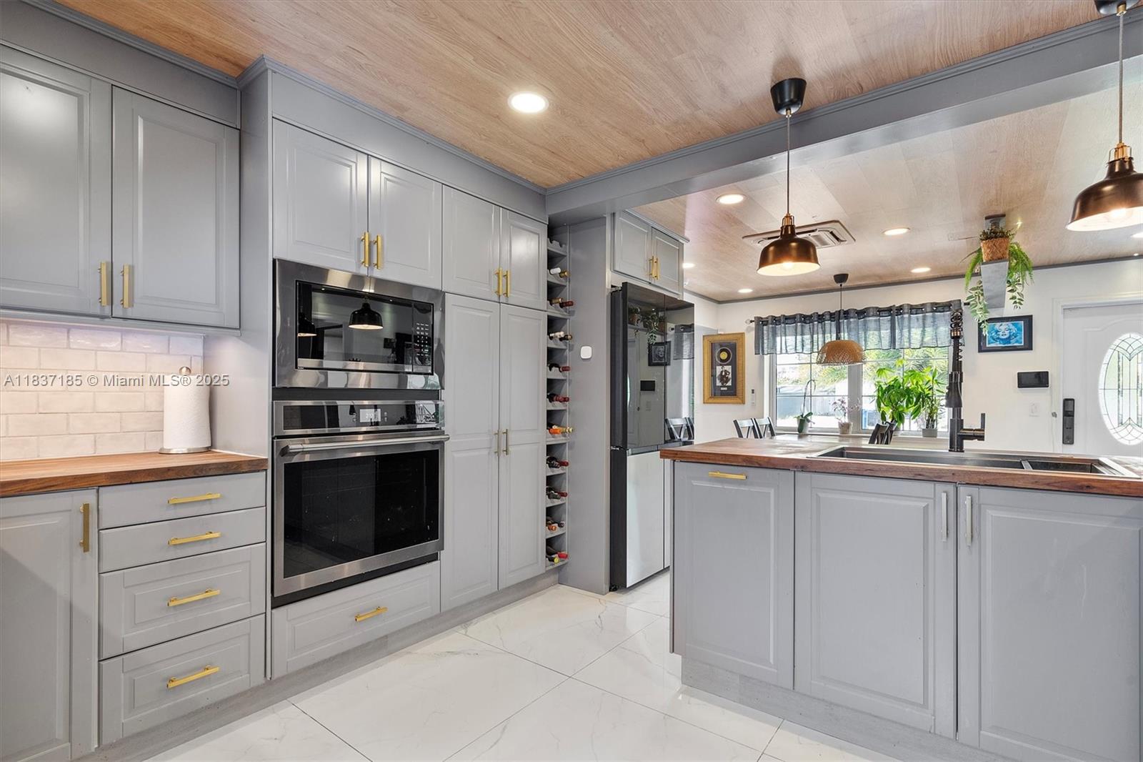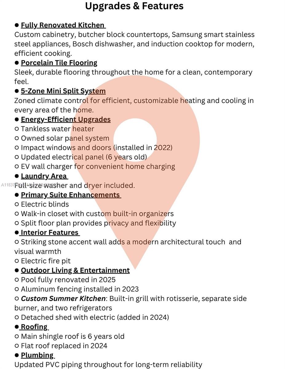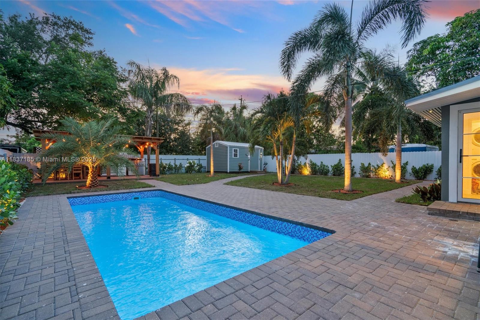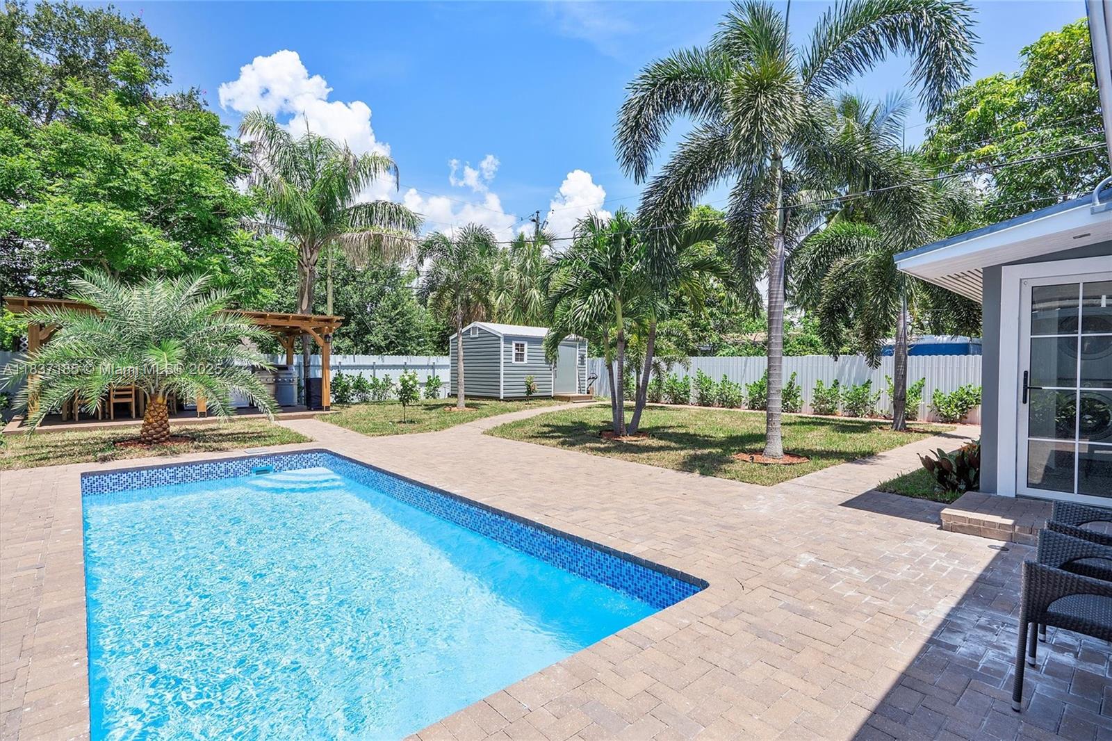 Located in Ft. Lauderdale near marinas, this beautifully upgraded 3 bed, 2 bath home features a new kitchen with Samsung appliances, Bosch dishwasher, porcelain floors, butcher block countertops, and an induction cooktop. The split floor plan offers a spacious primary suite with electric blinds, walk-in closet, and custom built-ins. Additional highlights include a 5-1 mini split system, tankless water heater, washer and dryer, EV wall charger, impact windows (2022), PVC plumbing, owned solar panels, and a 6-year-old roof with a 2024 garage roof. Enjoy a renovated pool (2025), aluminum fence (2023), summer kitchen, stone accent wall, and a powered shed (2024).Bundled service pricing available for buyers. Connect with the listing agent for details.
