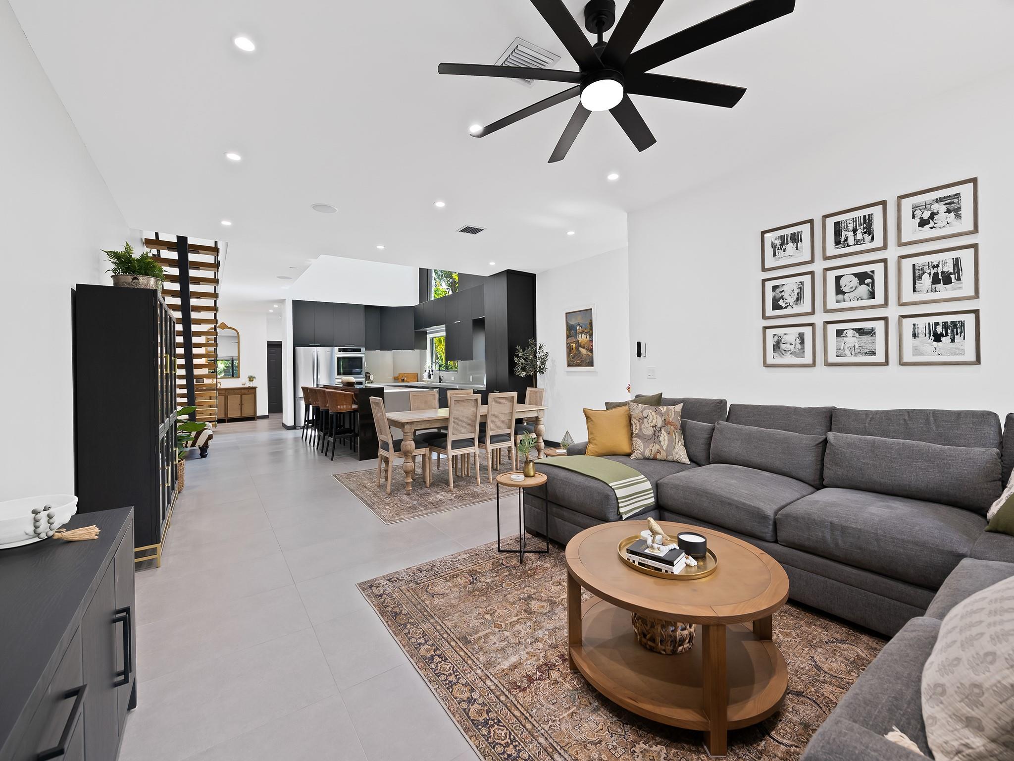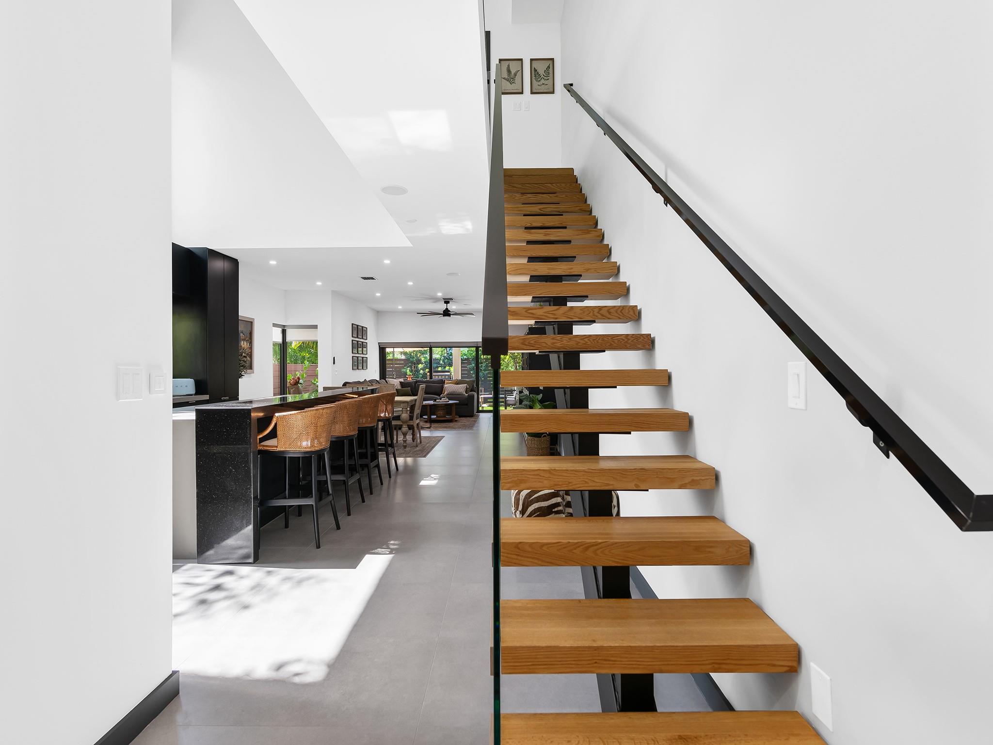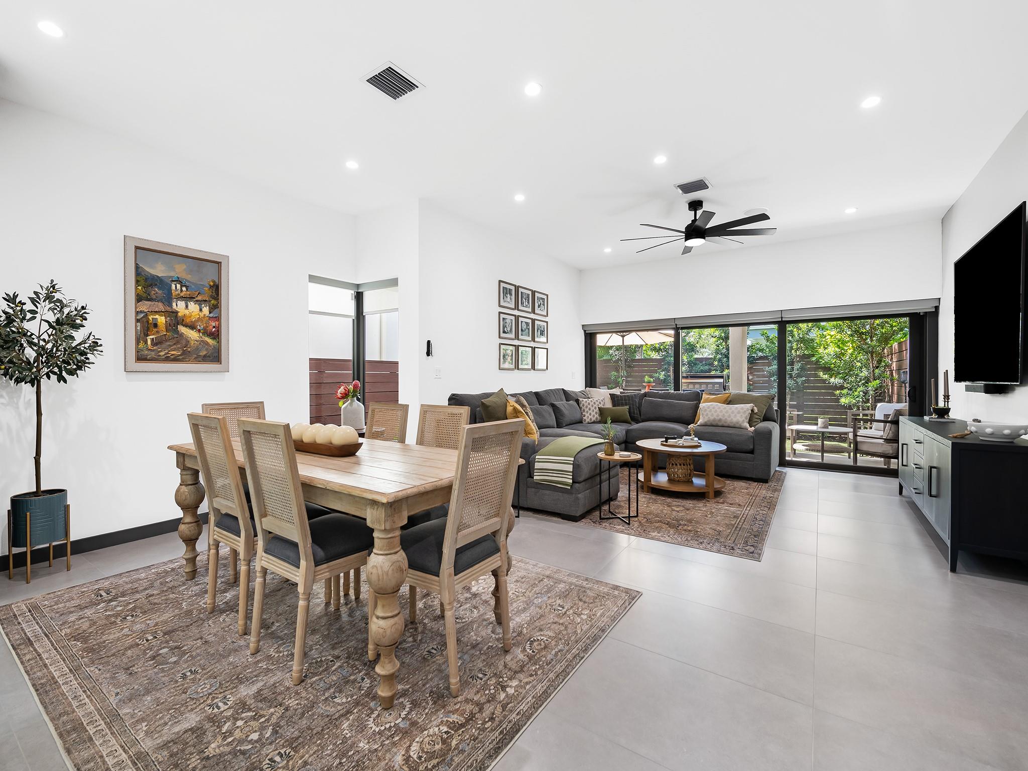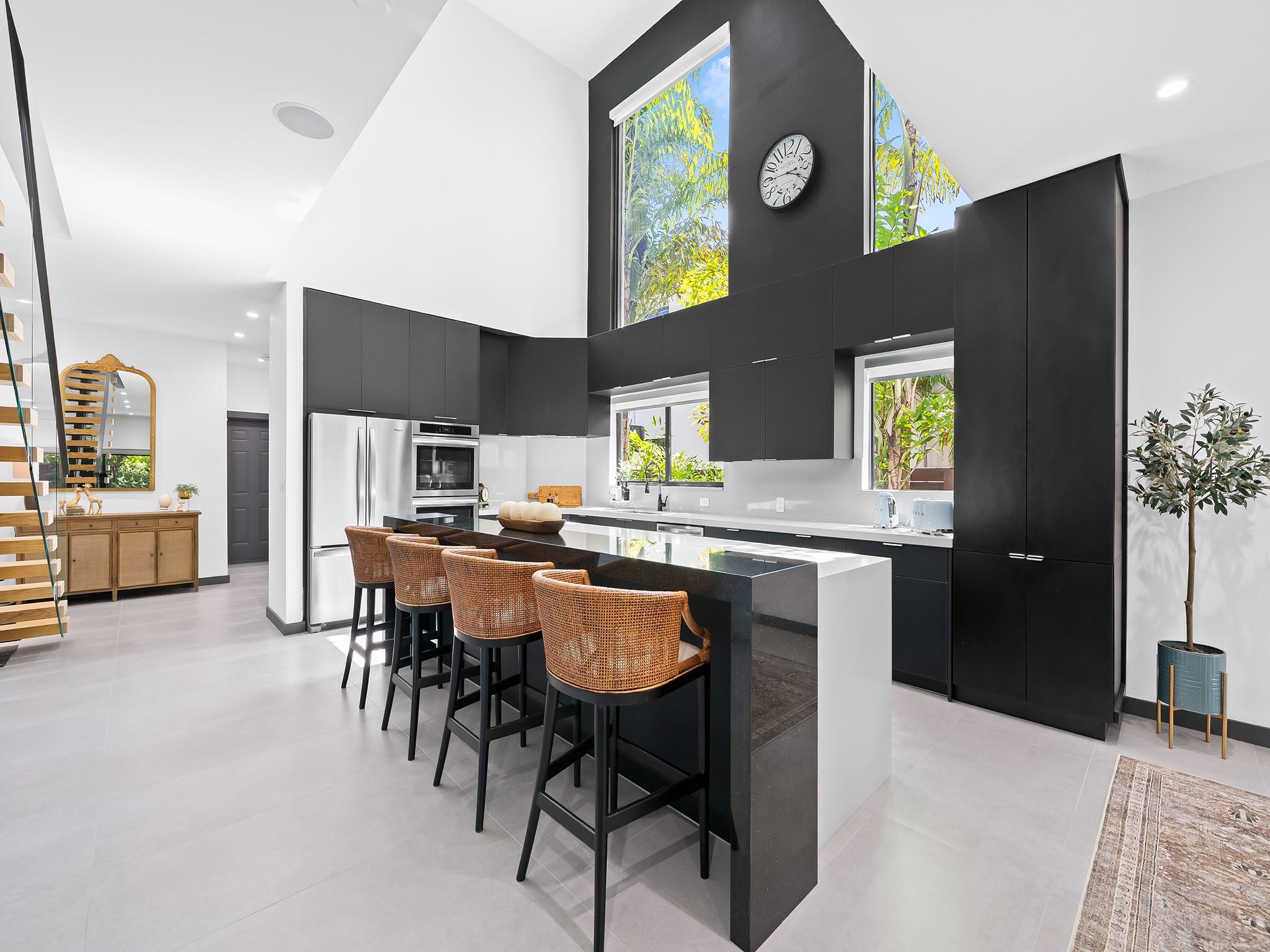 Tucked away at the confluence of 10th Street & the Tarpon River, this exquisite 3/2.5 townhome, completed in 2023 offers contemporary luxury & timeless design. NO HOA FEES. Situated in a serene neighborhood less than a mile from the heart of downtown Ft Lauderdale & iconic Las Olas Boulevard, this Fee Simple residence is a true gem. Soaring ceilings & vaulted kitchen windows reveal mature foliage & bathe the open-concept living space in natural light, highlighting custom cabinetry, refined architectural details, & sleek modern lines. Outside is perfect for entertaining with built-in summer kitchen island & artificial turf for easy maintenance. A spacious 2-car garage is complemented by additional parking for up to four vehicles, making this an exceptional offering in both form & function.