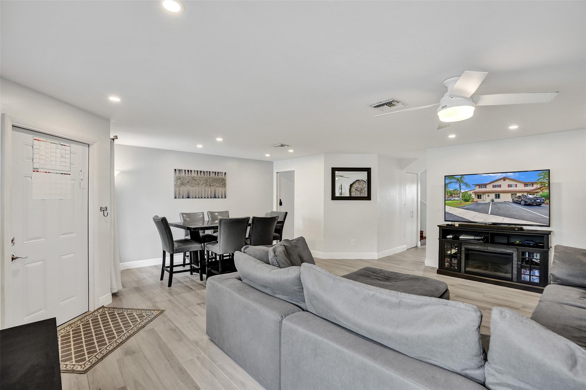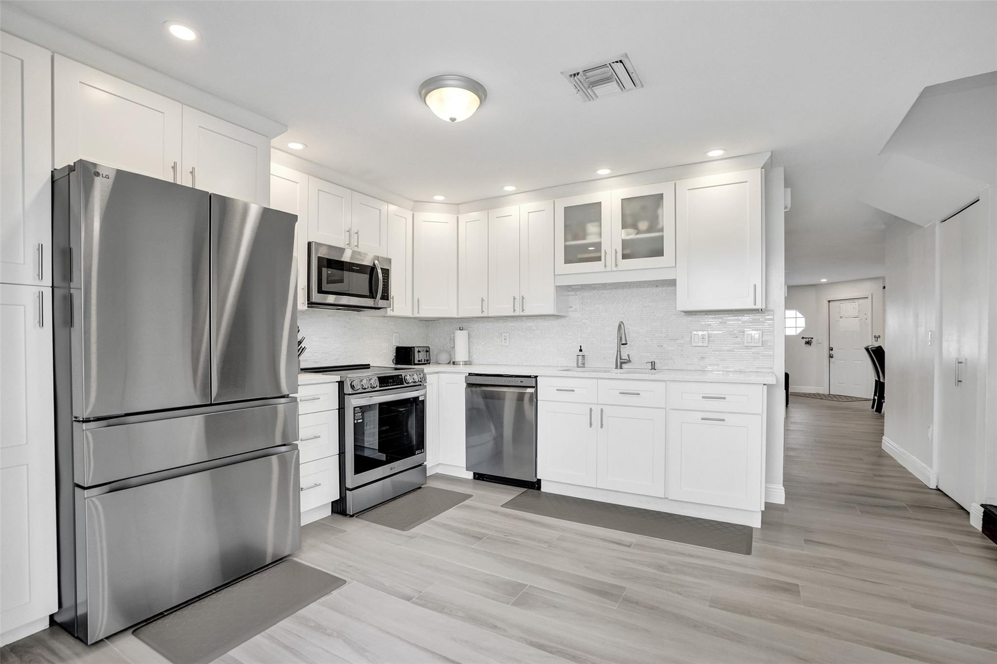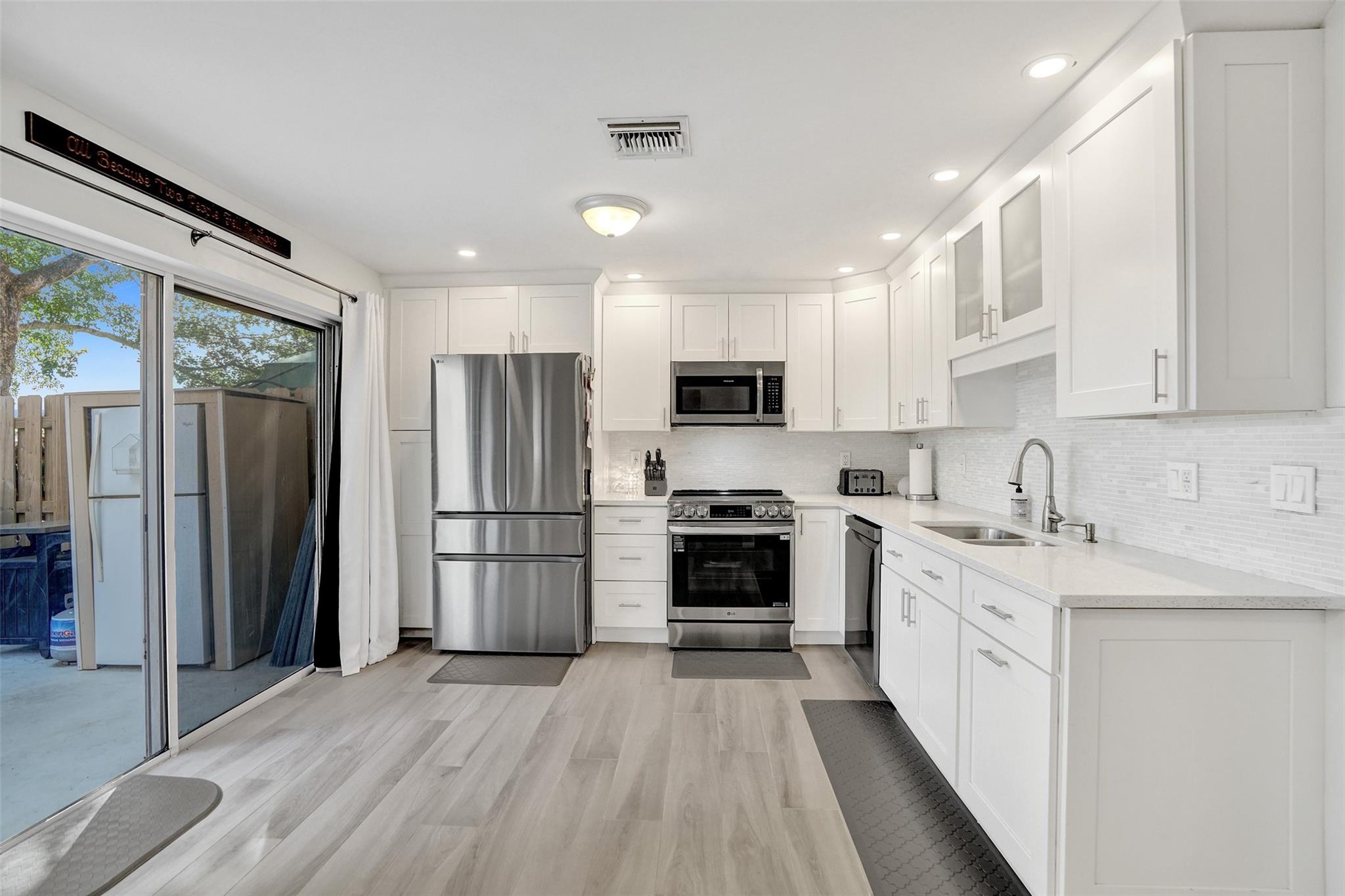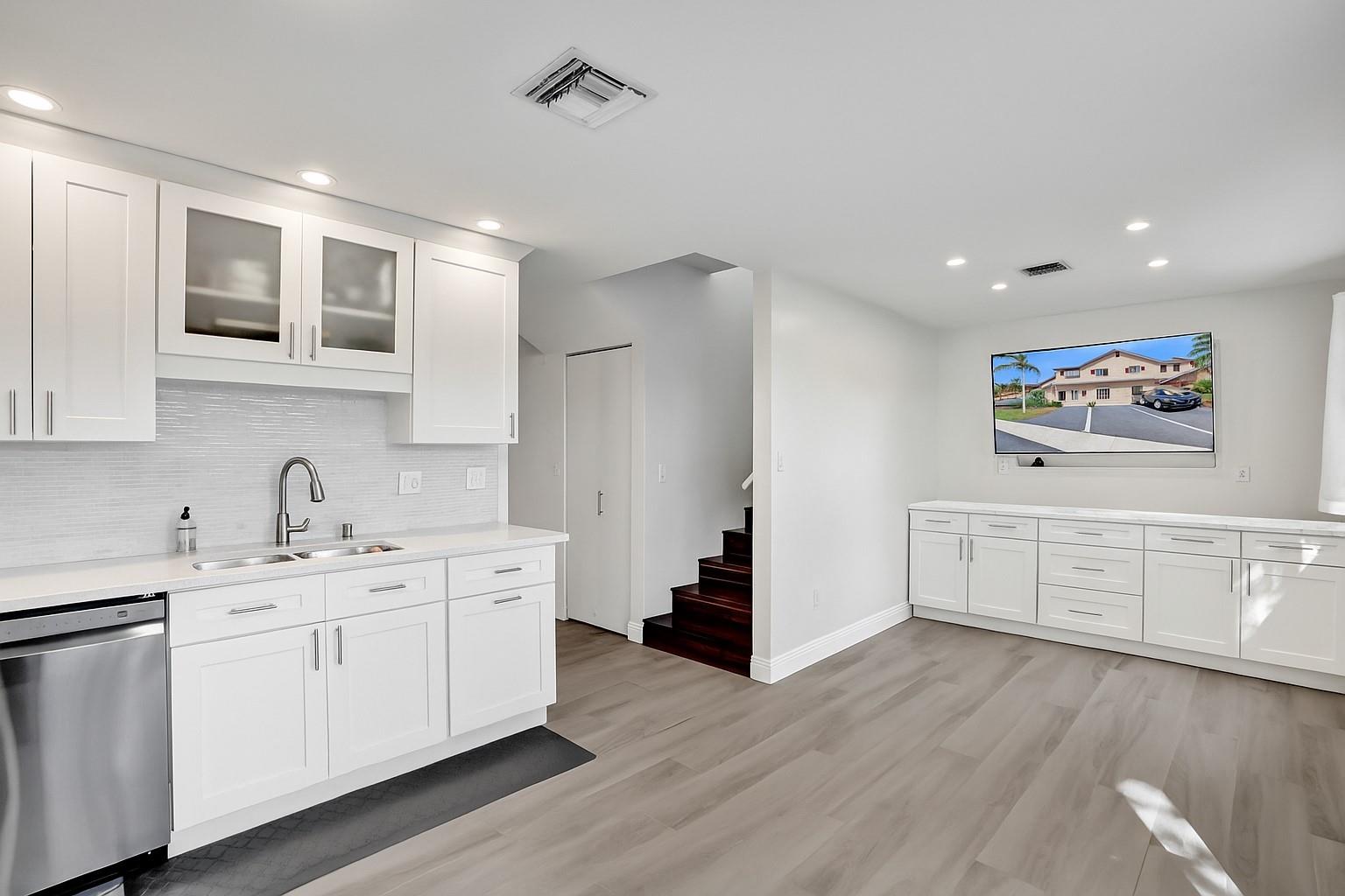 Beautifully updated fee simple townhome in Welleby Lakes with Brazilian Koa wood floors upstairs & Italian porcelain tile on the main level (2019). Kitchen updated in 2020 with new appliances in 2025 (excl. dishwasher). Upstairs bathrooms redone 2019–2020. Den/office off living area adds flexibility. A/C, water heater, & washer/dryer all new in 2021. Windows have shutters. Spacious patio with storage shed. Pet-friendly community w/ pool, hot tub, tennis & basketball court. HOA includes exterior insurance, roof repairs, lawn maintenance & water. This townhome is part of 3 associations: Welleby Lakes $401 per month, Nob Hill at Welleby $172 per month & Welleby Management Association $51 per quarter. No special assessments at this time. Rent immediately. Move-in ready with quality upgrades!