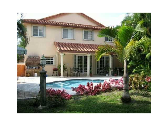 4 Bedrooms, 3 Bath, + 1 half bath MARBLE FLOORS, Covered patio with pavers, barbecue, remodeled kitchen, CUSTOM WOOD CABINETS, Granite Countertop, LARGE family room with French Doors. FANTASTIC view overlooking pool area, Huge Oversized Master Bedroom Su ite, COMFORTABLE MASTER BATH, 2 Car Garage, hurricane accordion Shutters in every window and door, A MUST SEE!!
