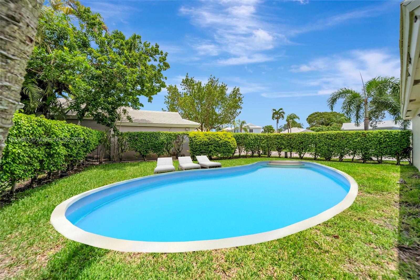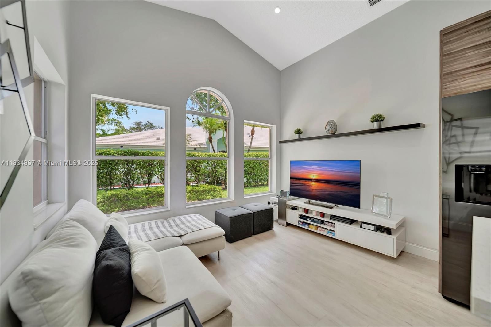 This home has great potential and just needs some TLC to truly shine! Showcased to highlight its maximum potential, it could become a little mansion with the right updates—imagine it with impact windows and doors. Solid bones, newer roof, and major systems in overall good condition. Features a 3-car driveway + 2-car garage. Located in a gated community with lawn care, cable, ADT alarm, exterior paint, pressure cleaning & more included. Expansive layout, high ceilings, and tons of natural light. Easy highway access. A fantastic opportunity to renovate and add value! POOL DIGITALLY RENDERED.