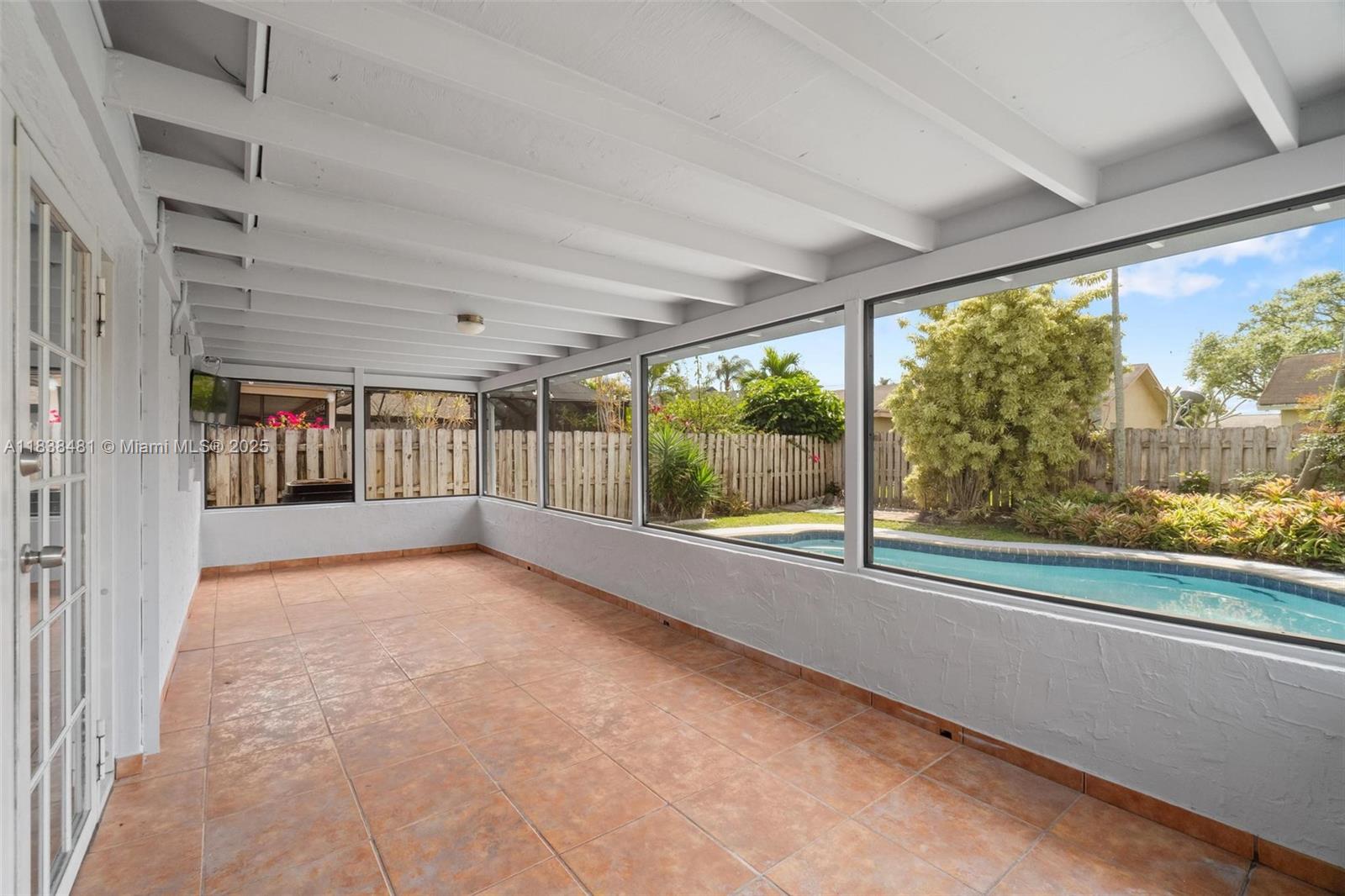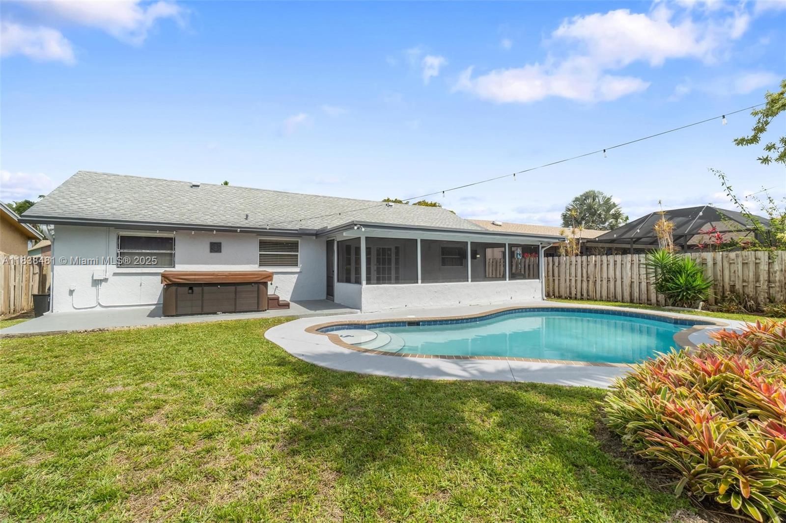 Beautiful and well-maintained 3 bed, 2 bath home in Sunrise with new roof (2023), private pool, and jacuzzi! This charming home features vaulted ceilings, tile flooring, granite kitchen countertops, and stainless steel appliances. Enjoy the privacy of a fenced yard, circular driveway, and a screened patio perfect for entertaining, with views of the pool and garden. French doors open to a lovely outdoor space ideal for gatherings. Conveniently located just 5 minutes from Sawgrass Mills Mall, major highways, dining, and entertainment. Please email all offers with proof of funds or pre-approval.