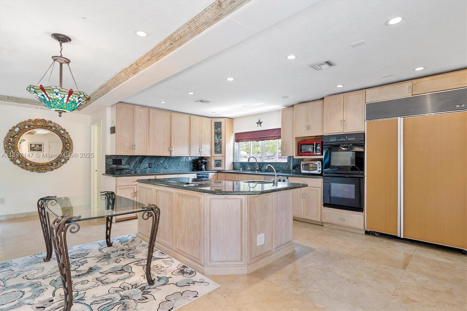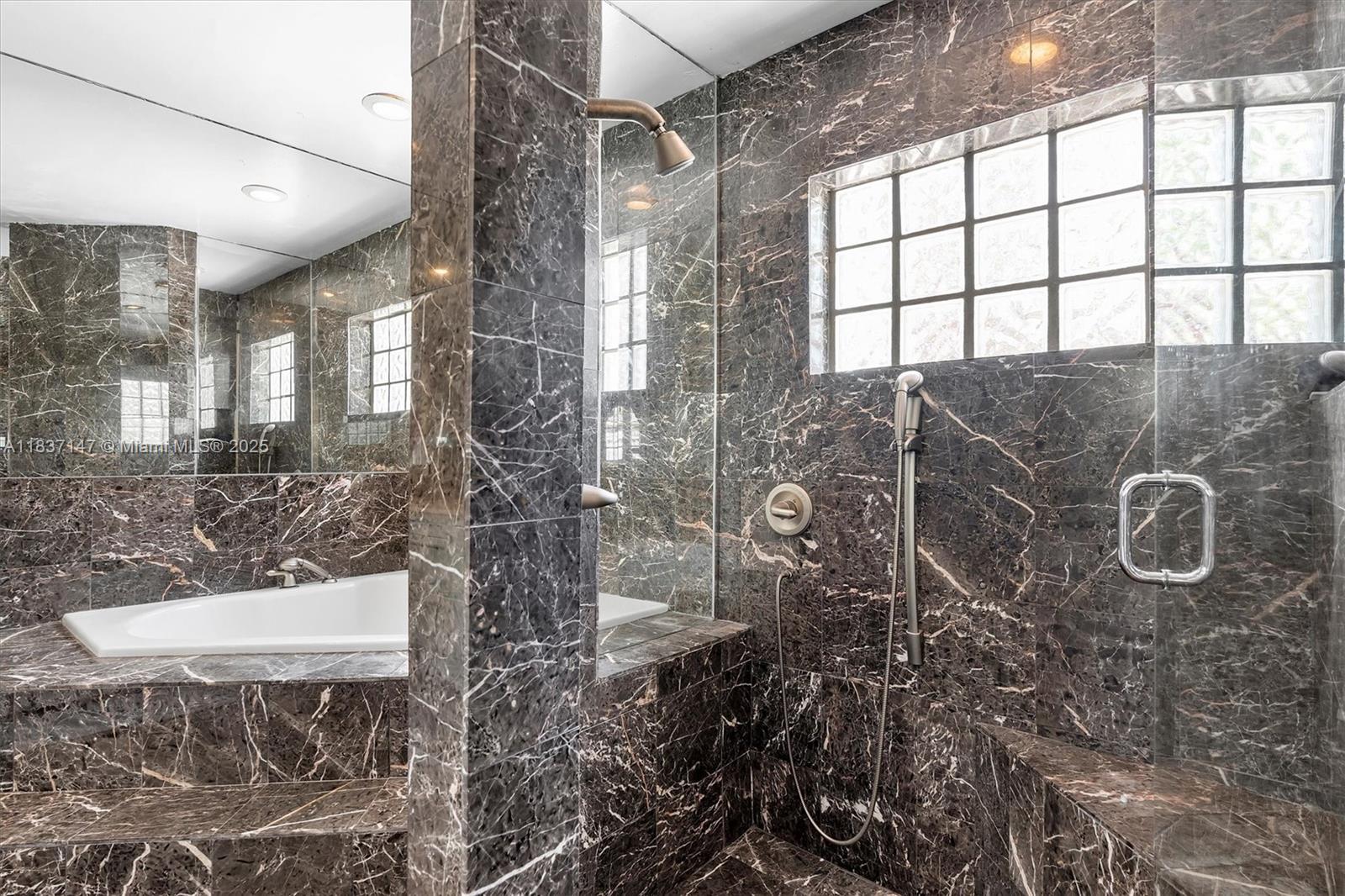 Stunning 2bed/2bath home with an open spacious layout and serene garden views. With no HOA. Features elegant marble floors throughout, a luxurious kitchen with granite countertops, a spacious island with a Thermador glass range, and a Sub-Zero refrigerator. Wet bar with granite tops and wine racks. The primary bedroom opens to the outdoors. Walk-in closet easily converts back to 3rd bedroom. Bathrooms are Roman-style with recessed designs, fully clad in marble; the primary bath boasts steam shower, and Jacuzzi tub. The fully fenced backyard features double French doors leading from the living area to a spacious patio, plus a shed for storage. Ample room for a pool. Bundled service pricing available for buyers. Connect with the listing agent for details. *Priced considering roof condition.