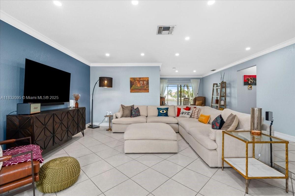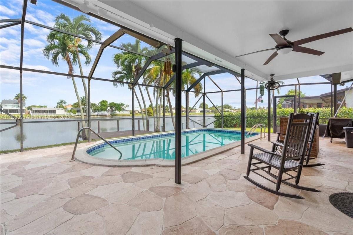 Relax and unwind with stunning lake views right from your backyard. This 3-bedroom, 2-bathroom home with a 1-car garage offers peaceful water views from the moment you step inside. An open-concept layout features spacious living areas with tile flooring throughout, a gas kitchen range, and full impact windows and doors for added peace of mind. Step through sliding glass doors to your own private oasis. The backyard also includes a private dog run, securely fenced off to keep pets safely away from the lake. Additional highlights include a new pool pump and garage door motor, new A/C, and all gas appliances. Whether you're grilling, swimming, or simply relaxing by the water, this home is built for enjoying the Florida lifestyle.