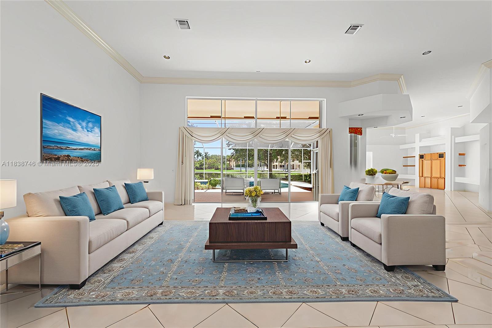 Welcome to Windmill Lake Estates this one-story lakefront estate sits on an expansive 49,796 sq ft lot with 180 feet of panoramic water views. Featuring 5 bedrooms and office, 4 bathrooms, and 4,006 sq ft of living space, this home offers volume ceilings, a brand-new 2024 roof, and neutral tones throughout. Spacious primary suite includes sitting area overlooking the pool and lake views 3 walk-in closets and spa-like bath with whirlpool. Traditional kitchen with wood cabinetry, granite countertops, wall oven, and SS appliances. Enjoy a 3-car side garage, circular driveway, and screened-in pool and spa with serene lake vistas. The lush grounds offer room to expand or create your dream outdoor space. Located in one of Weston’s most exclusive gated communities.