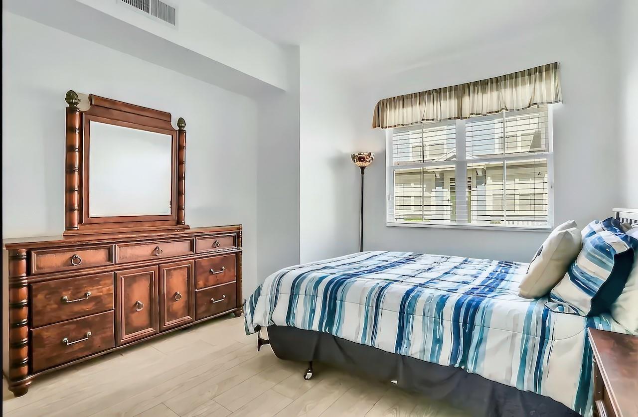 Discover this beautifully furnished 3-beds, 2-baths townhouse in a secure, gated community, ideally located just minutes from Disney, SeaWorld, and Universal Studios. Ideal for a primary residence, retirement, or lucrative investment with no rental restriction (Airbnb approved). The thoughtfully designed interior features a spacious primary bedroom on the first floor for privacy and accessibility, alongside two upstairs bedrooms sharing a well-appointed bathroom. The fully equipped kitchen and inviting living spaces create a cozy, stress-free environment to unwind after a day of adventure. This property offers access to exceptional community amenities, including four pools playgrounds, a fitness center, various sports courts, BBQ grills, and a game room for endless entertainment.