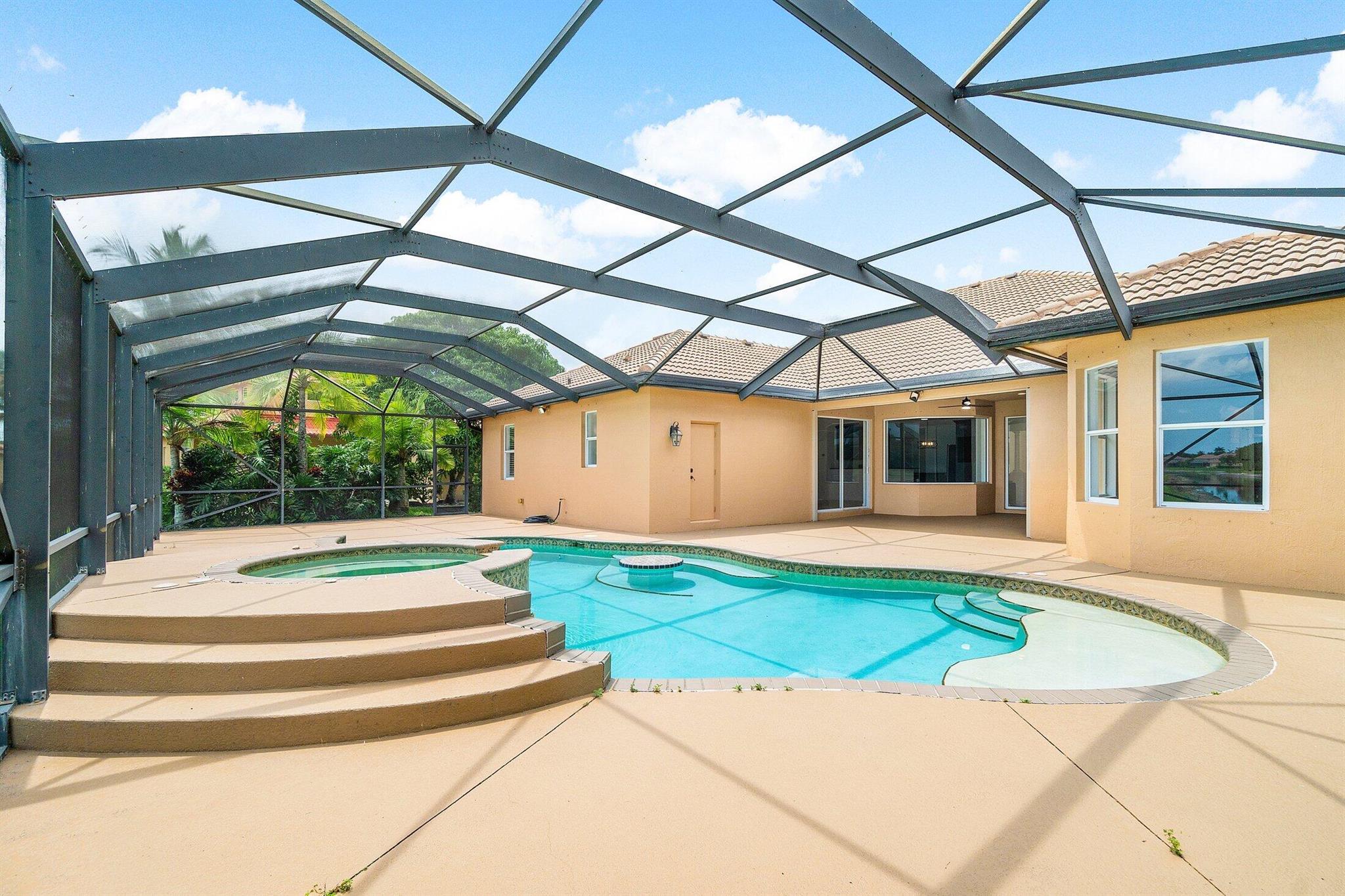 Stunning 5-Bedroom Pool Home with Luxurious Outdoor LivingWelcome to your dream home! This spacious 5-bedroom, 3-bathroom residence offers 2,847 sq ft of elegant living space, thoughtfully designed for both comfort and functionality.The heart of the home is a beautifully appointed kitchen with granite countertops, stainless steel appliances, and ample cabinetry--ideal for cooking and entertaining. Adjacent is a dedicated laundry room and a generous 3-car garage providing plenty of storage.Retreat to the oversized primary suite, a true sanctuary with two walk-in closets and a spa-like ensuite bathroom complete with a double vanity, soaking tub, and separate shower.Step outside to your private oasis! The screen-enclosed salt-water pool and spa feature in-pool seating with an