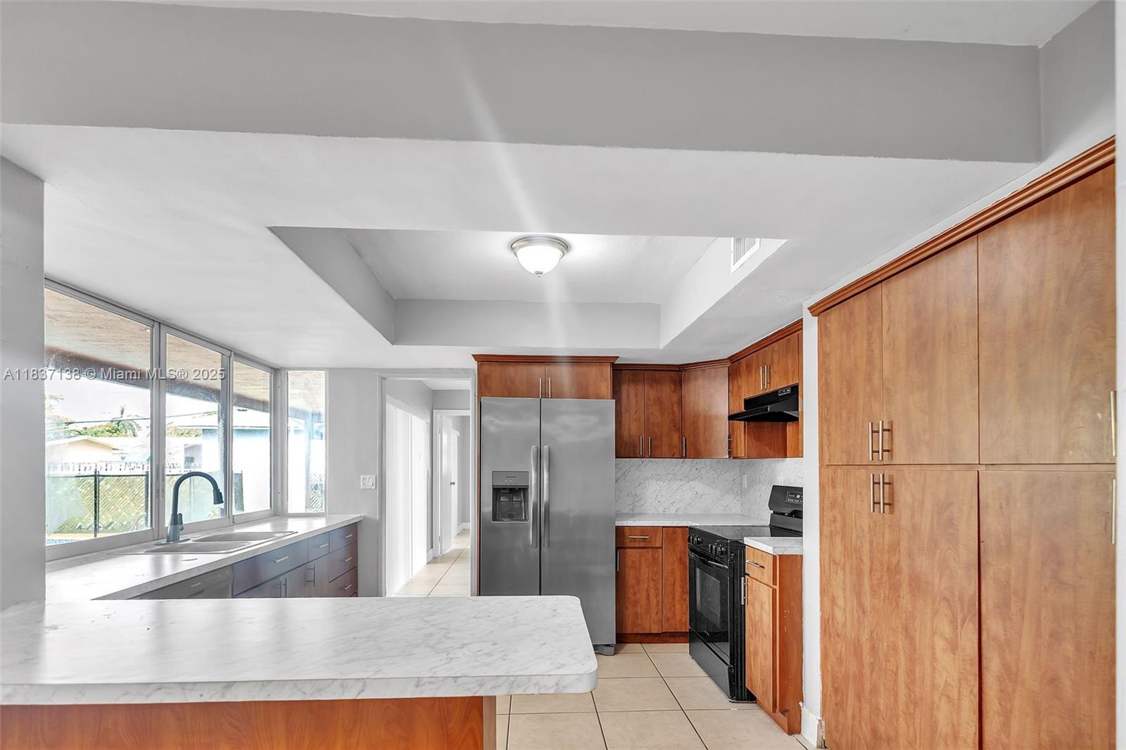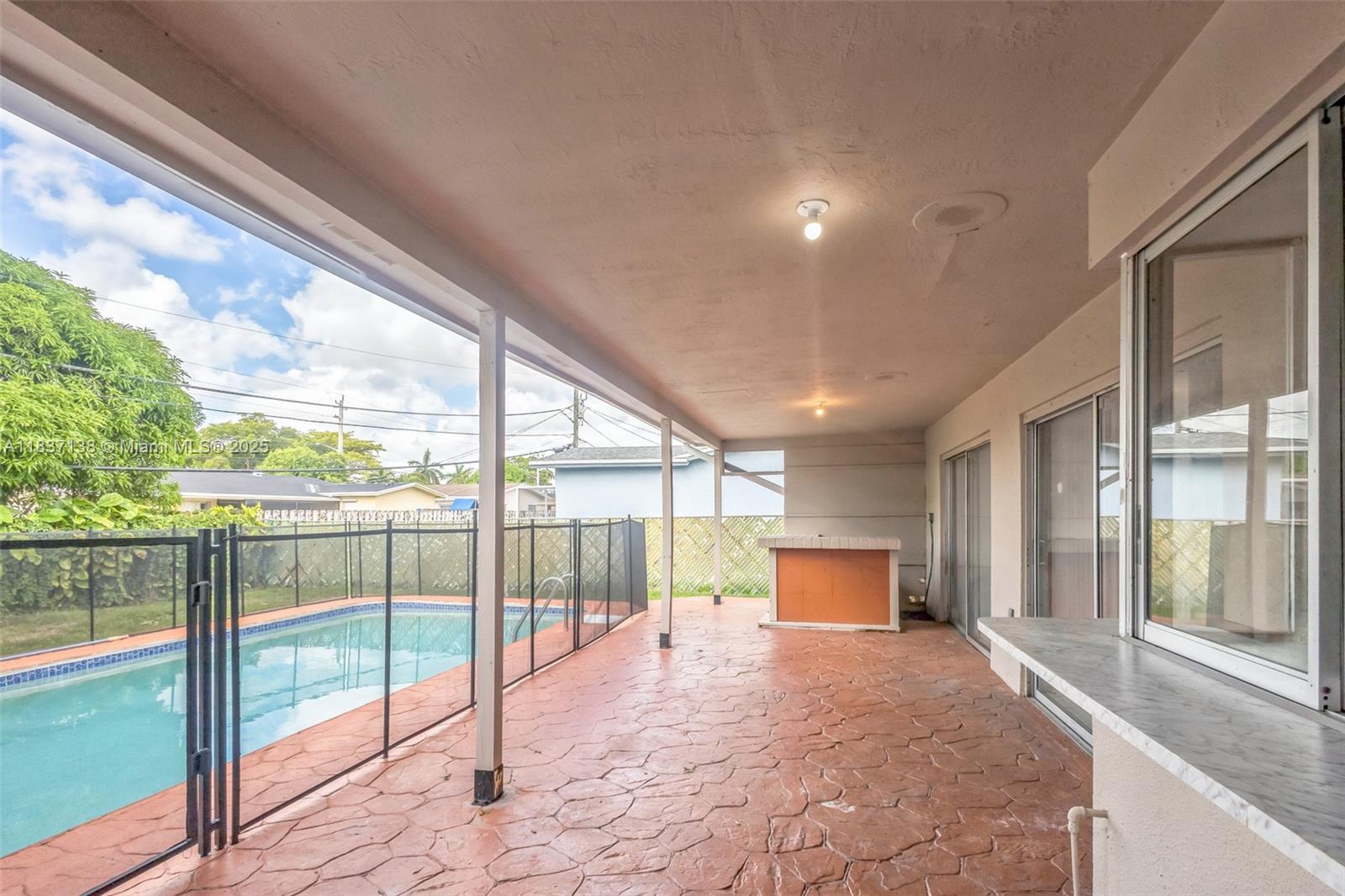 This move-in ready 4-bedroom, 2-bathroom home features tile flooring throughout and a spacious layout designed for comfort and functionality. The kitchen offers ample cabinet space and overlooks both the dining area and the private pool—making indoor-outdoor living a breeze. The backyard is perfect for entertaining, complete with a large covered patio, pass-through kitchen window, bar space, and easy access to the in-ground pool. Conveniently located near shopping, dining, and everyday essentials, this home offers both lifestyle and location. Schedule your private showing today and see all this home has to offer!