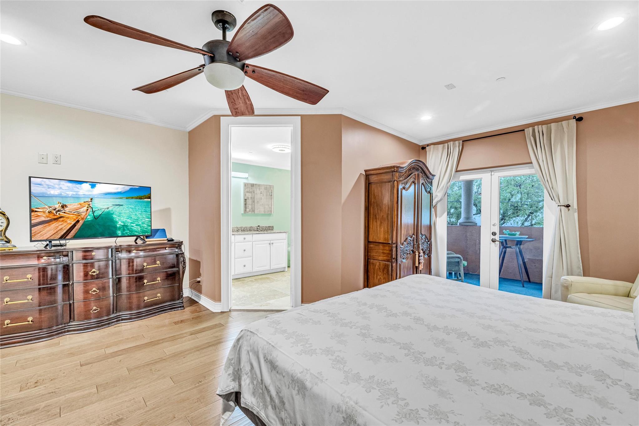 Experience stylish Victoria Park townhome with an elevator, three spacious balconies, and a stunning rooftop terrace. A gated garden entry leads to large living areas and a chef’s kitchen with premium appliances, gas range, island, and ample cabinetry. Sunlight floods the open layout through east-facing bay windows. This level also features a two-car garage, pantry, powder room, and elevator. Upstairs, the primary suite offers a remodeled bath, walk-in closets, and a private balcony. Two additional bedrooms, an updated bath, and laundry complete this floor. The top level includes a loft-office, full bath, and a fourth bedroom with a private balcony and rooftop access. This home is in a superior location near beaches, Las Olas, shopping, dining, and multiple parks.