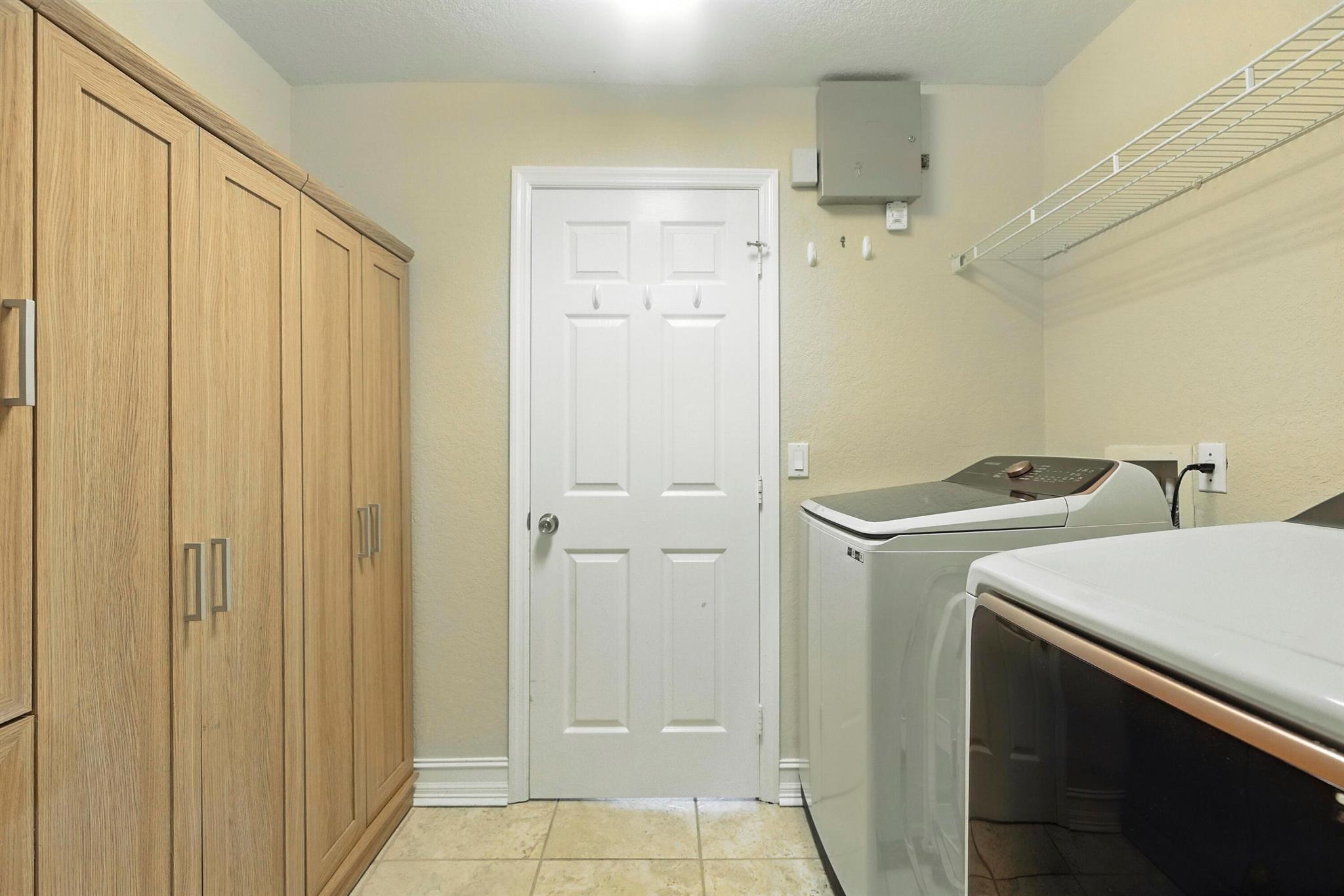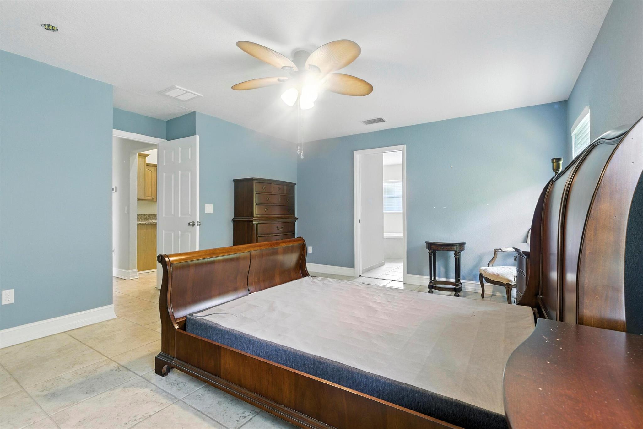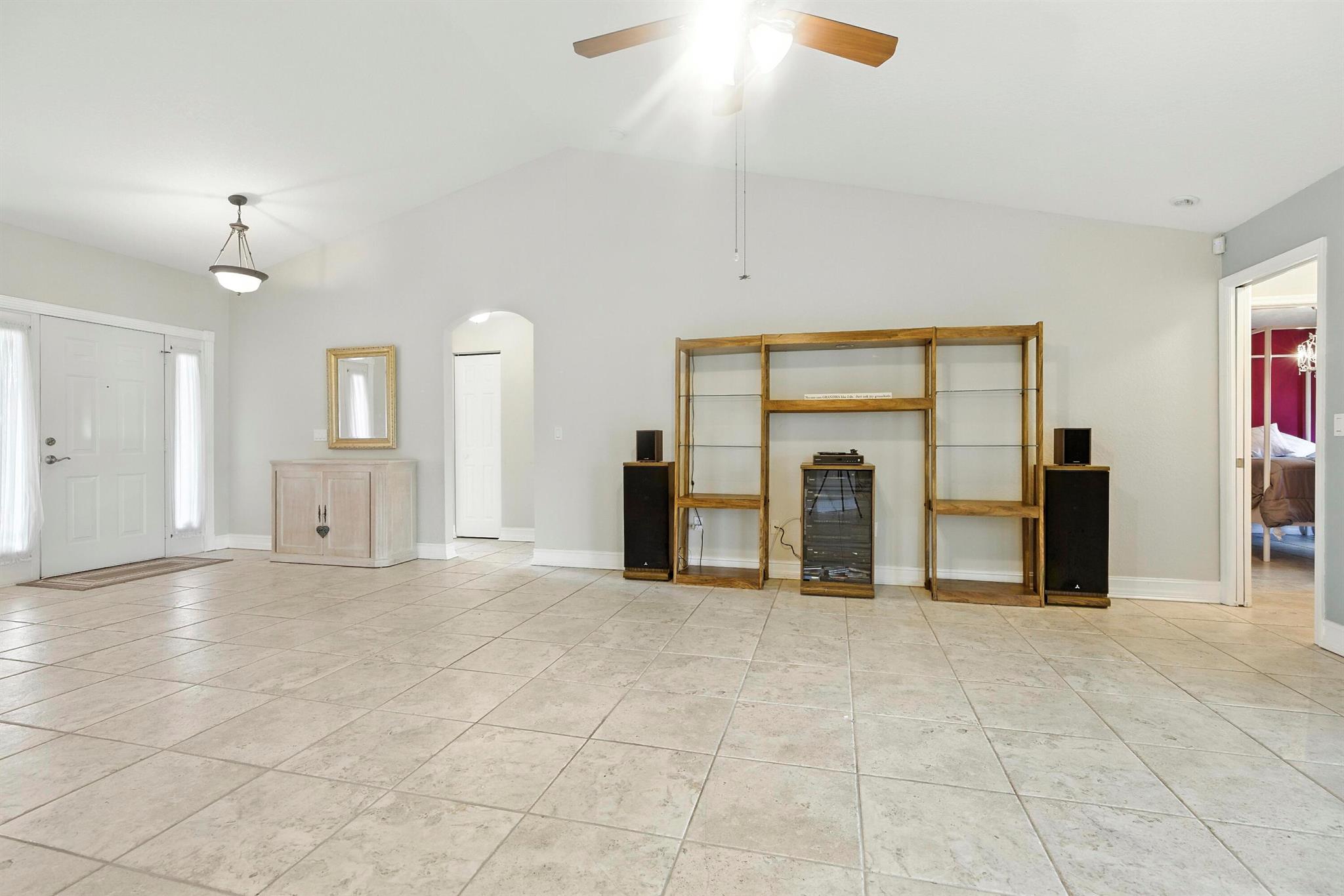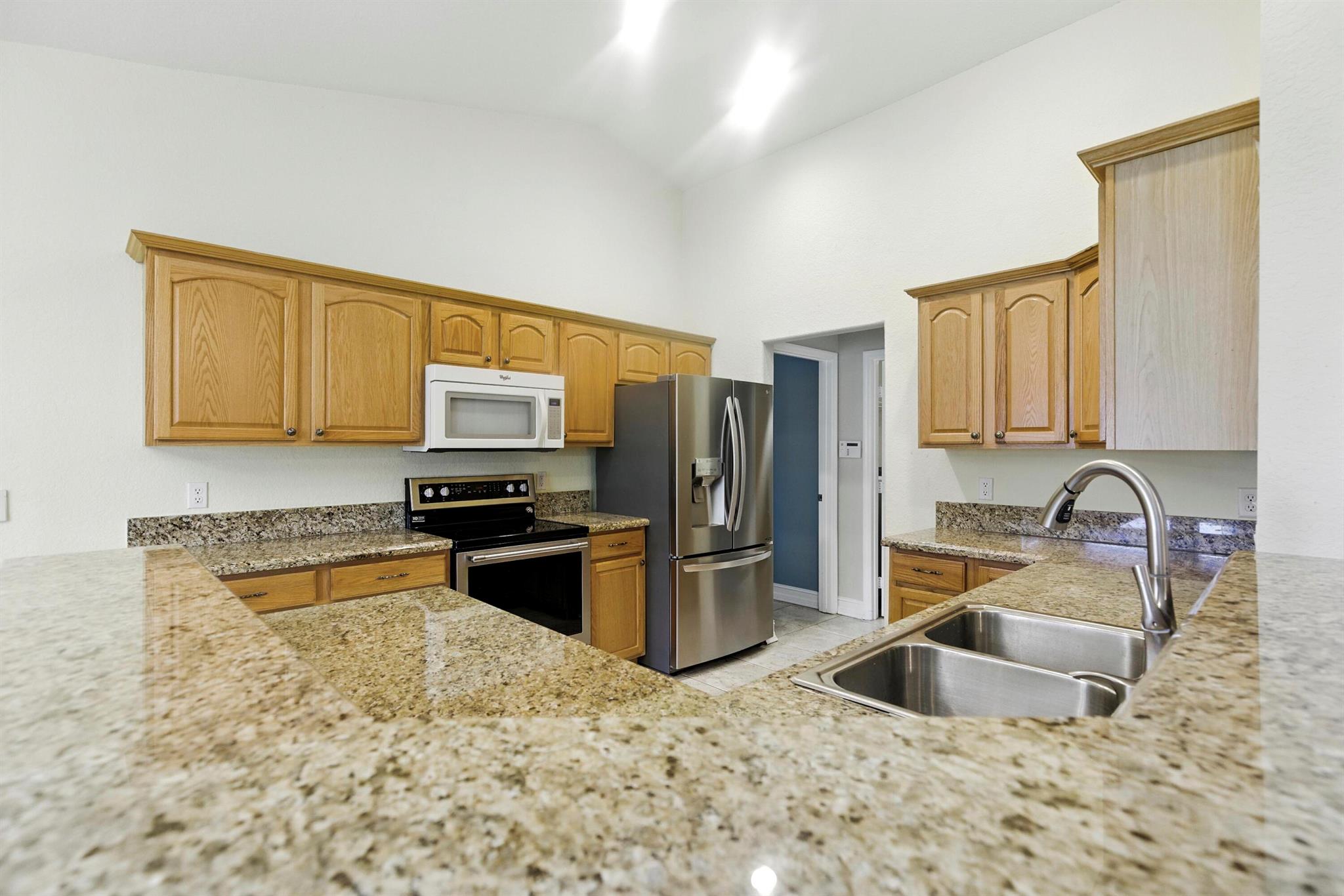 SPACIOUS 4 BR HOME WITH IN-LAW SUITE AND NEW ROOF!!Welcome to this beautifully maintained 4-bedroom, 3-bath home featuring a desirable split-bedroom layout, perfect for privacy and multigenerational living. The in-law suite includes its own private entrance, making it perfect for guests, extended family, or as a potential income producing rental. Step inside to soaring cathedral ceilings and an open floor plan that fills the space with natural light. The kitchen boasts granite countertops and overlooks the main living area--ideal for entertaining. Enjoy durable tile flooring throughout the home, combining style and easy maintenance. Additional highlights include impact windows and sliding doors, 2025 roof, 2018 HVAC, 2023 WH, paver driveway and full irrigation system.