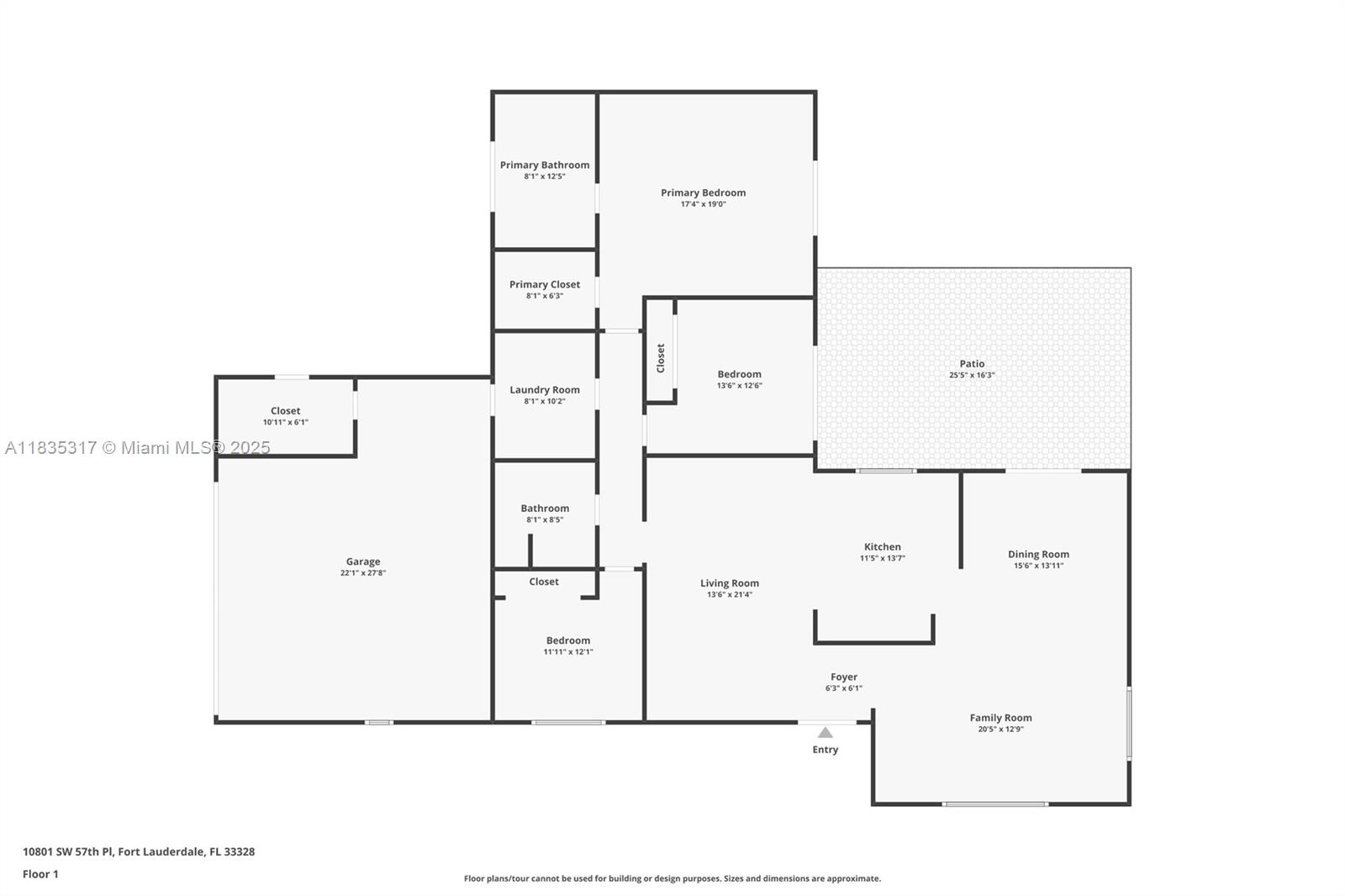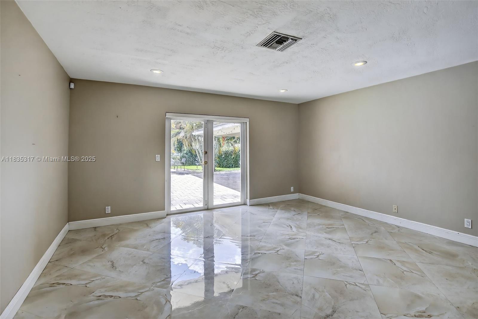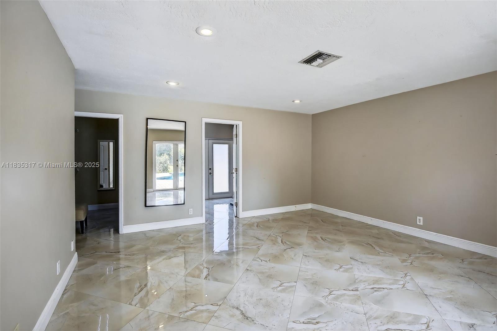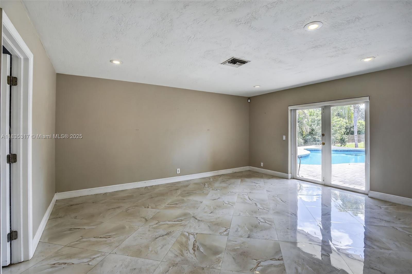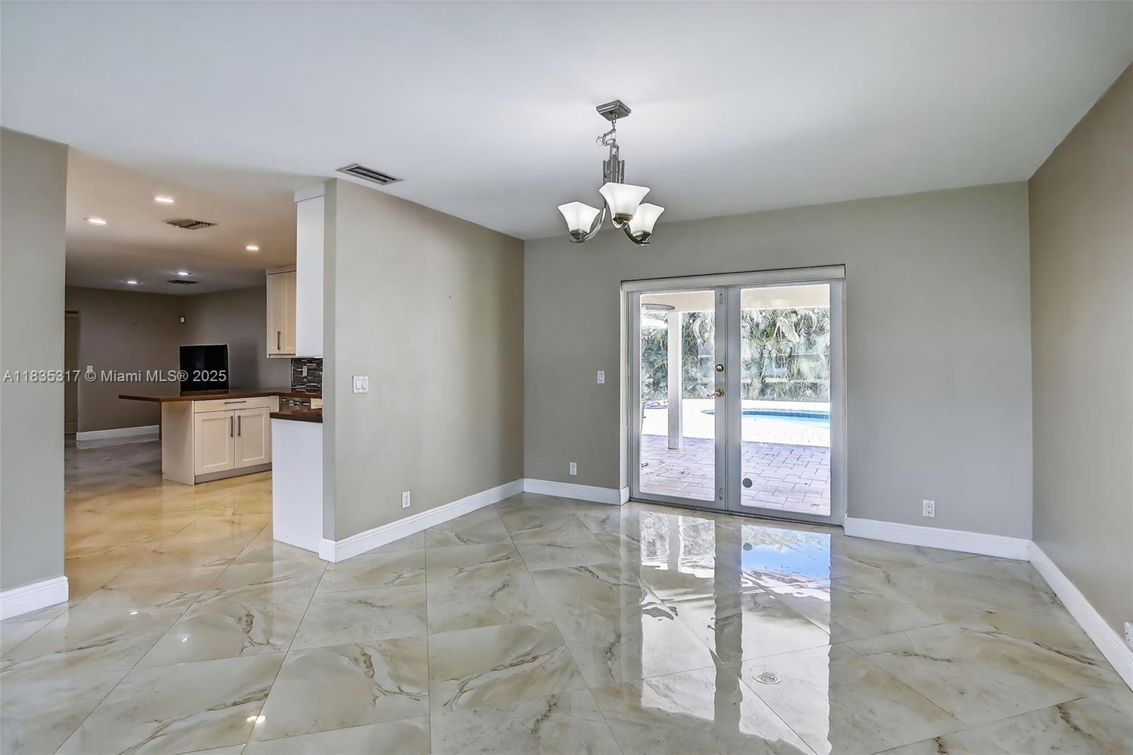 This great pool home in Davie is situated on a builder's acre in a private cul-de-sac. It features 3 bedrooms and 2 full bathrooms, a master bath with a frameless shower and a walk-in closet. This home offers porcelain tile flooring throughout. The updated kitchen boasts quartz countertops, a breakfast bar, and stainless steel appliances, and it seamlessly opens to both the living room and the family room. The spacious backyard includes a large stone paver deck and a covered patio surrounding a newly refinished free-form pool, all within a fully fenced yard. For added safety, the home is equipped with hurricane protection for all windows and doors. Conveniently located, this property is close to a variety of parks, dining, and entertainment options, and it lies within an A+ school district