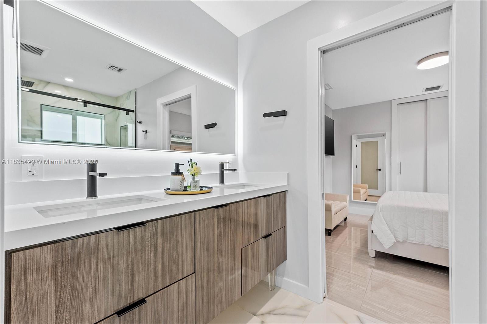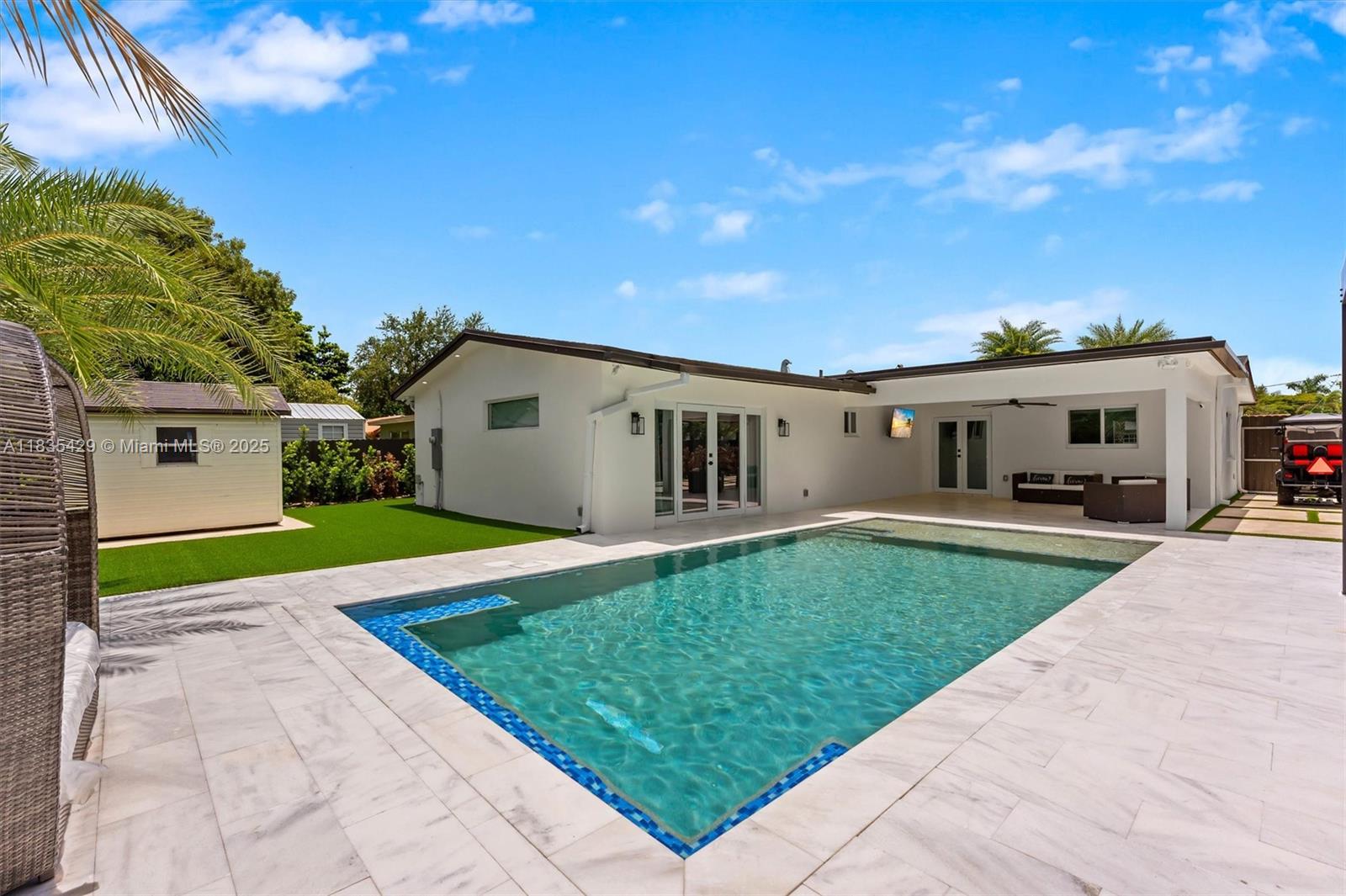 The entertainment house of the block! This stunning 4 bed, 3 bath home in the coveted PSN community was fully remodeled with no detail spared. Legal addition & complete renovations in 2022. Features include ALL NEW roof, impact windows & doors, electrical, plumbing, A/C ducts, recessed lighting & gas lines ready for connection. The spacious primary suite overlooks the pool & features a massive walk-in closet and beautifully finished en-suite bath. The modern open kitchen with quartz countertops flows into spacious living areas. Step outside to your private resort-style pool & covered patio—fully done in 2024, an entertainer’s dream! Circular driveway with artificial turf accents & a massive gated side lot ideal for your boat or RV. Conveniently located near major highway, dining & shops.