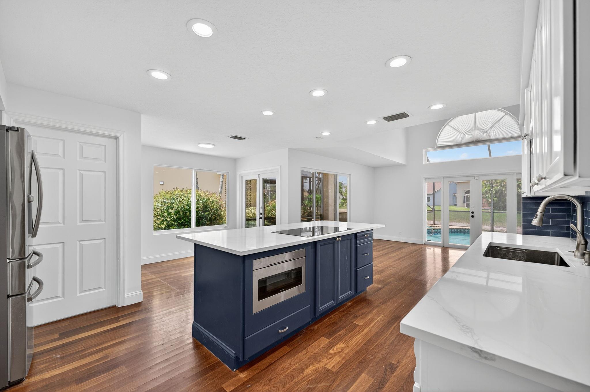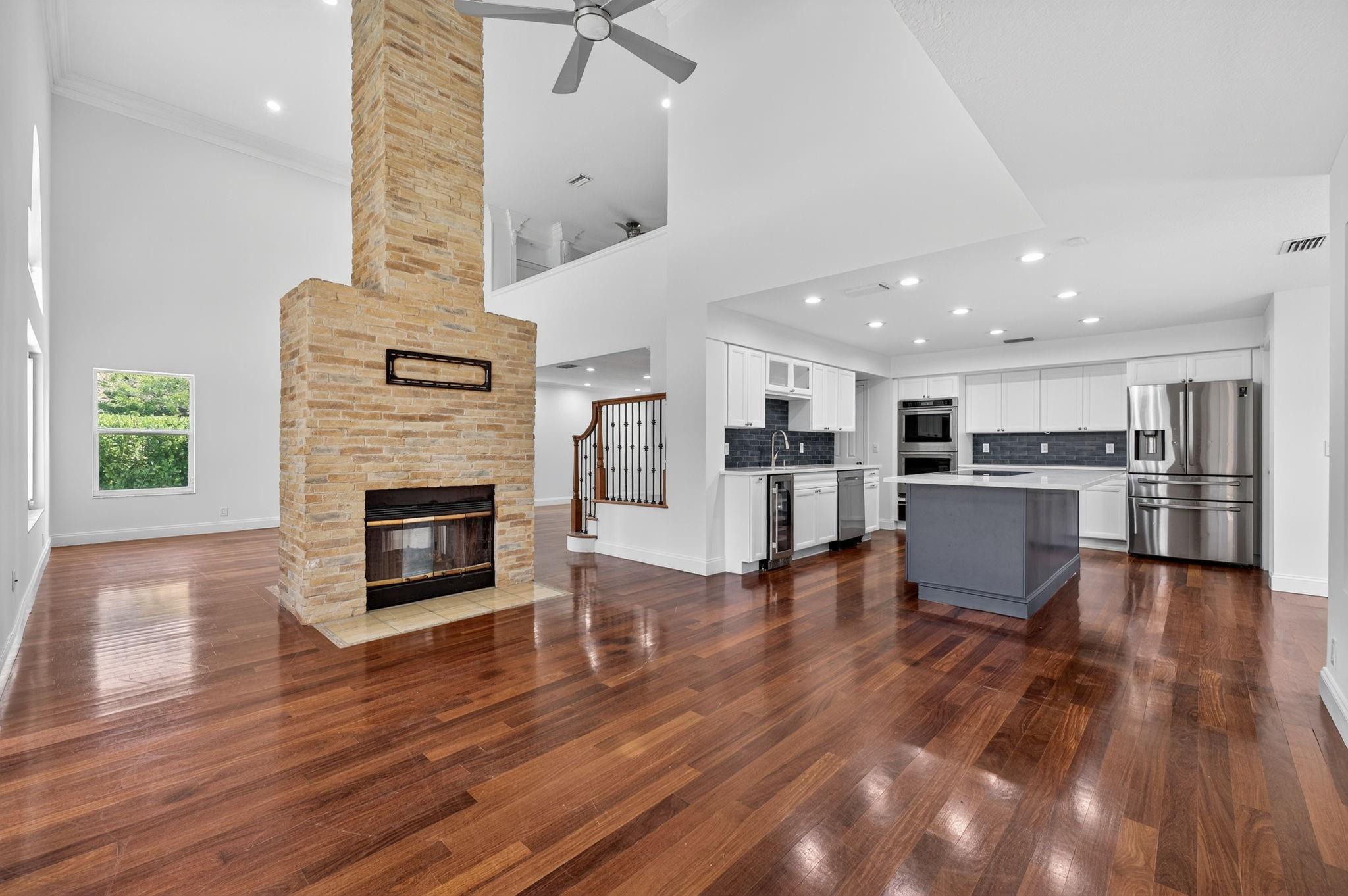 Welcome to Sable Pass, a gated community in Parkland with top-rated schools and low HOA. This 3BR/2.5BA home features a renovated chef’s kitchen with stainless appliances, dual ovens, induction cooktop, wine fridge & breakfast bar. Main level offers living, dining, family room with fireplace, powder bath & pool views. Upstairs loft with built-ins is ideal for office or 4th BR. Primary suite boasts vaulted ceilings, walk-in closet & spa bath with dual vanities, jacuzzi & shower. Enjoy a private pool, screened patio, 2-car garage, hurricane protection & indoor laundry—minutes to parks, shopping & Sawgrass Expressway. Perfect for entertaining, working from home, or enjoying South Florida’s indoor-outdoor lifestyle.