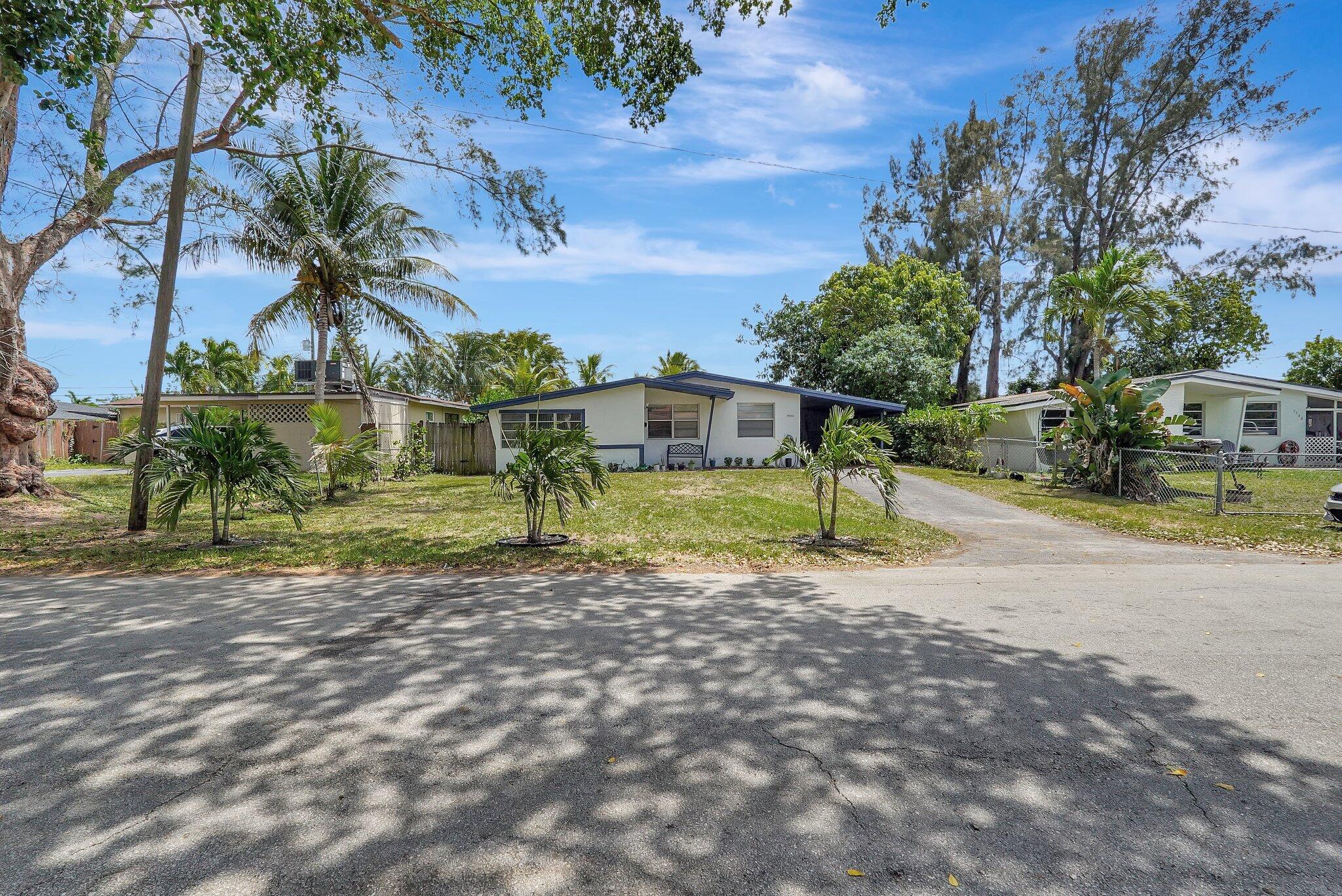 Welcome to this charming 3-bedroom, 2-bath single-family home, ideally situated in a quiet, family-friendly neighborhood with **no HOA**. The residence is filled with natural light, thanks to its large windows, and has been meticulously maintained. Recent upgrades include a newer A/C unit, water heater, and cooking range. The spacious yard offers ample room for a large pool, and there's a separate laundry room for added convenience. The covered carport can also serve as a cozy front porch, and the existing driveway has potential for conversion into a circular drive. Conveniently located near shopping centers, schools, the Hard Rock, beaches, and the airport!