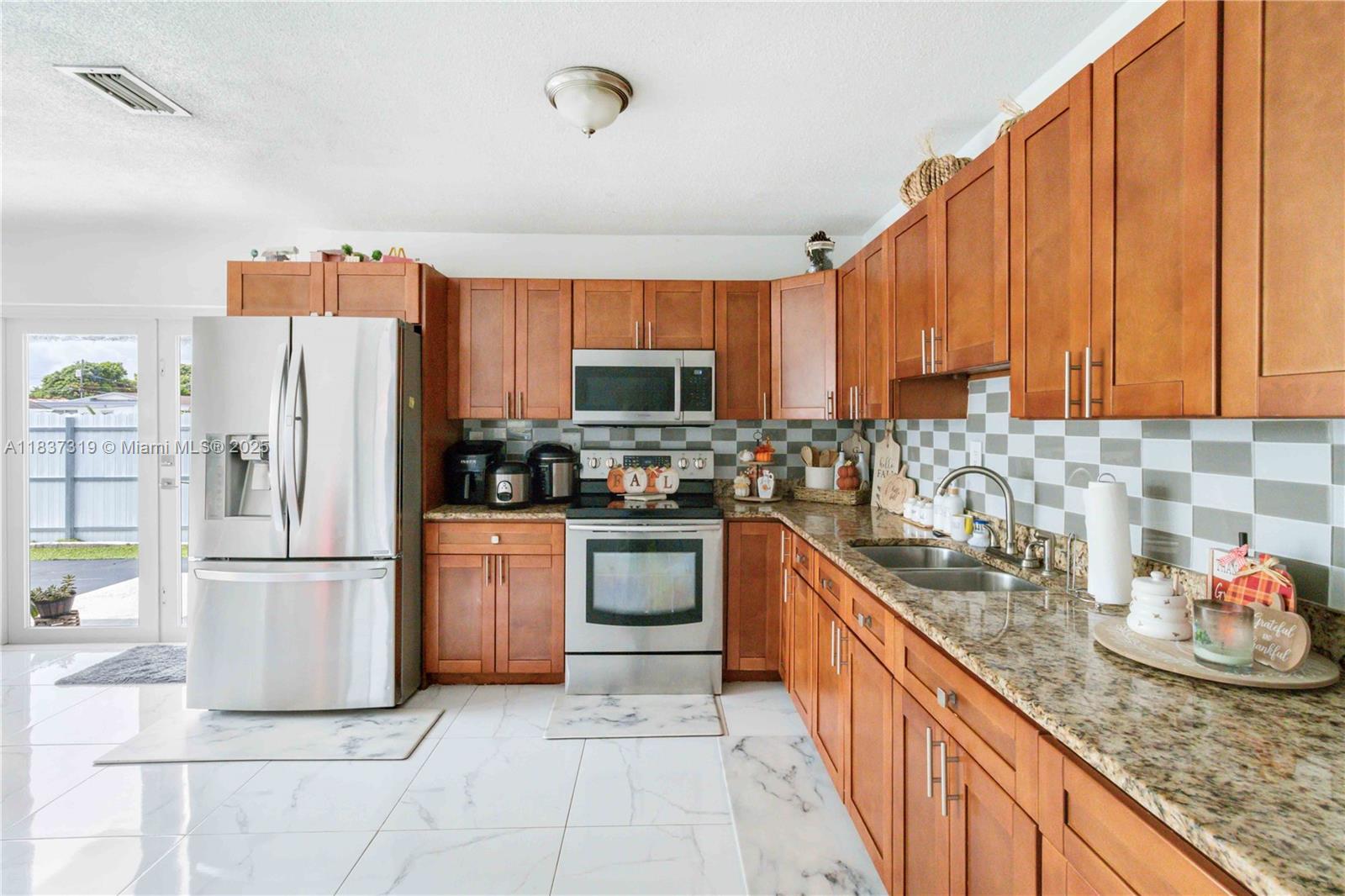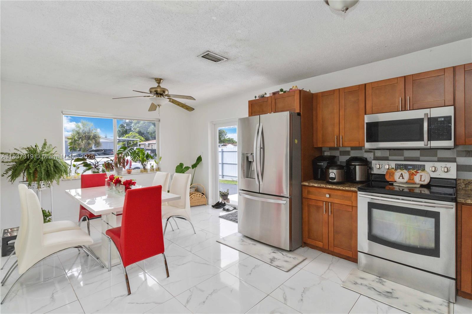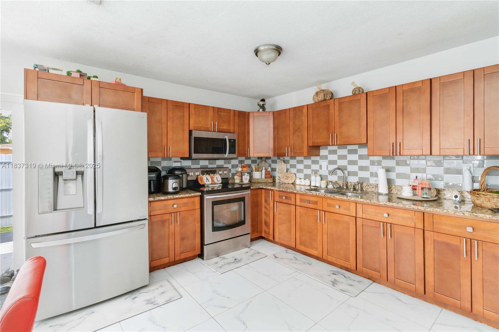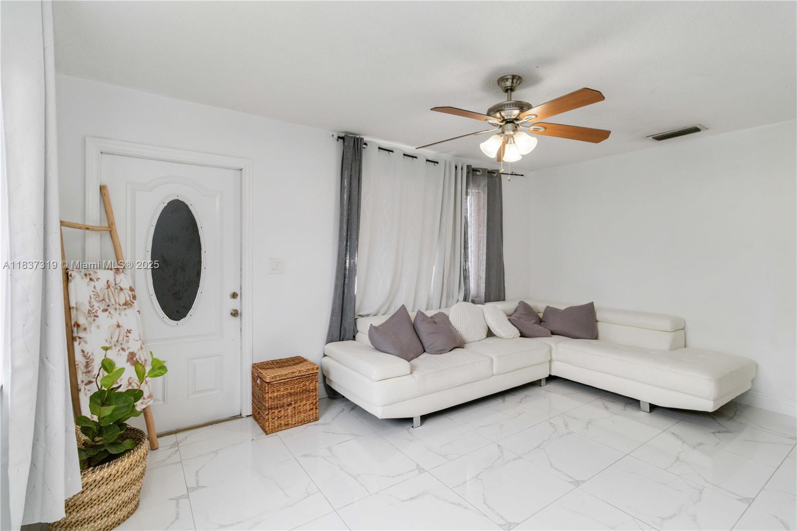 Great updated 3 bed 2 bath home with in-law quarter at back, great for having some additional income. Home remodeled with modern taste. All tile flooring. Spacious kitchen and dining area. The master bedroom has a door to access the backyard, which has a gazebo with a full kitchen. Newer air-conditioning unit. Fenced yard with sliding metal gate at the front. Two newer sheds in the backyard stay with the property. Great opportunity.