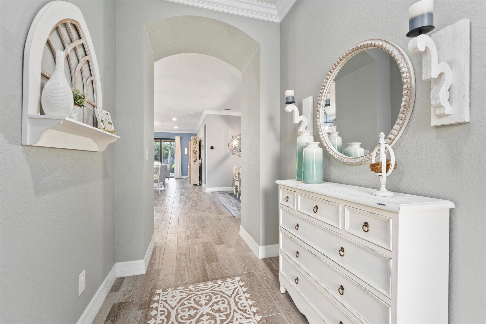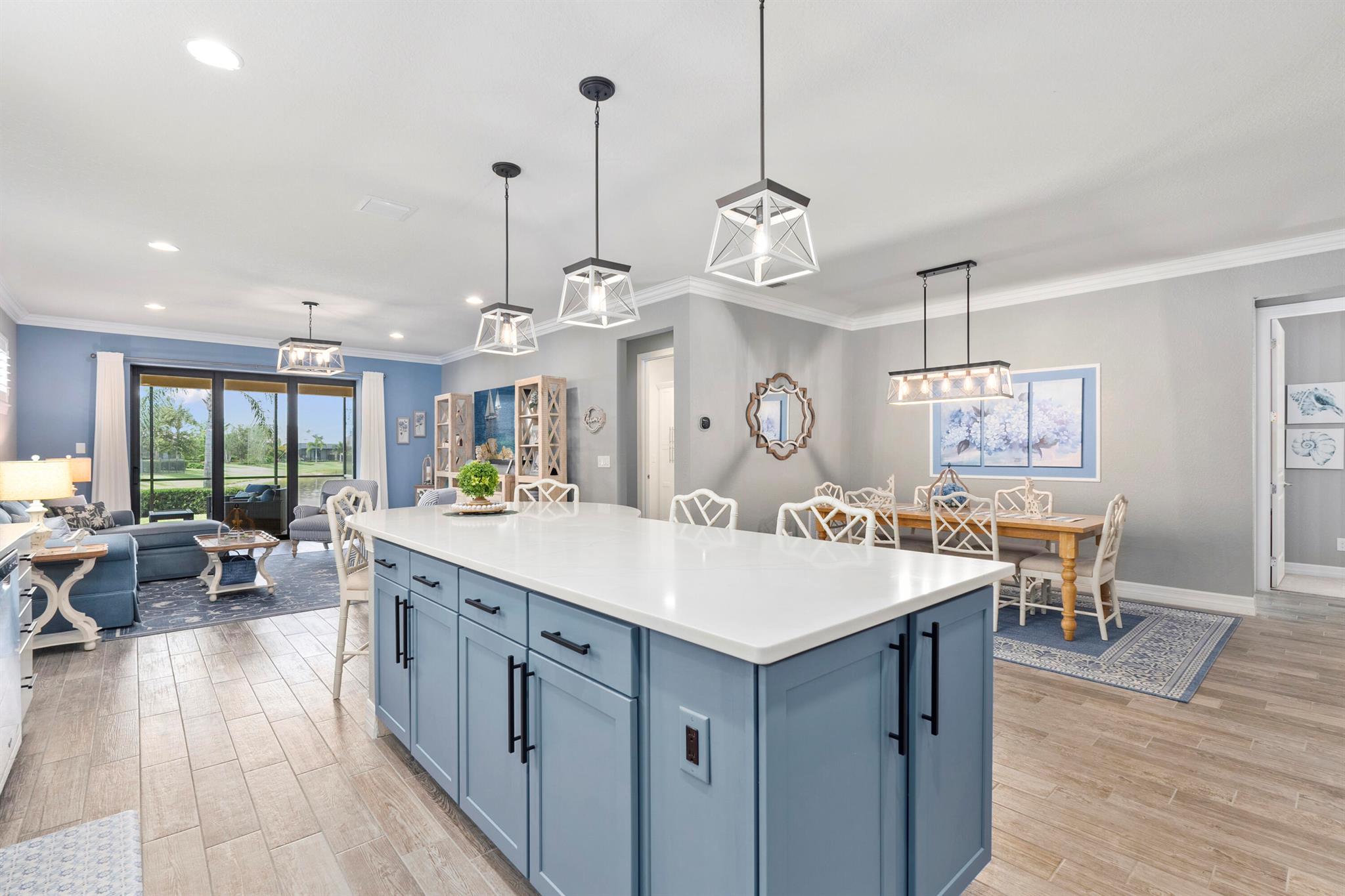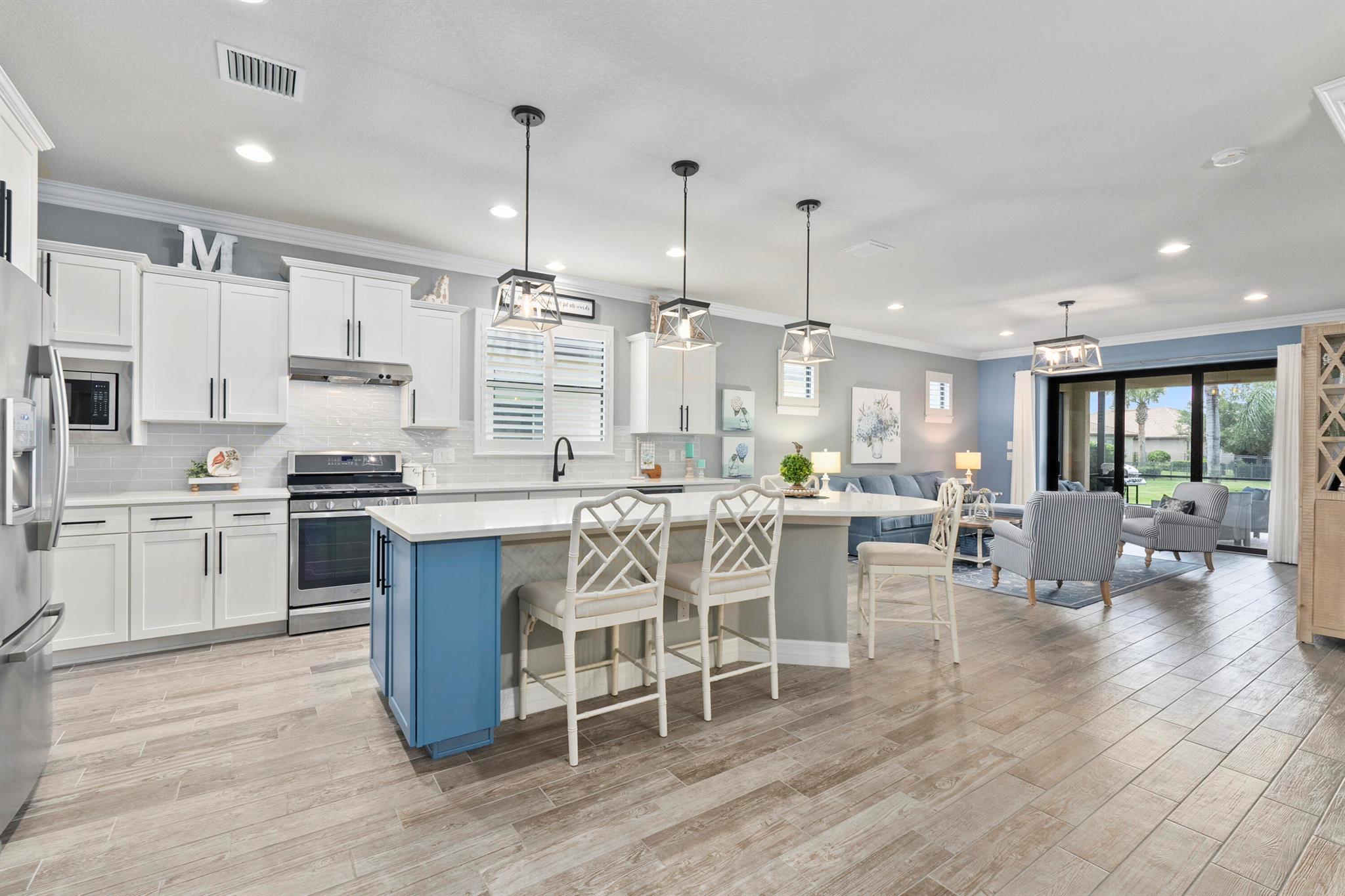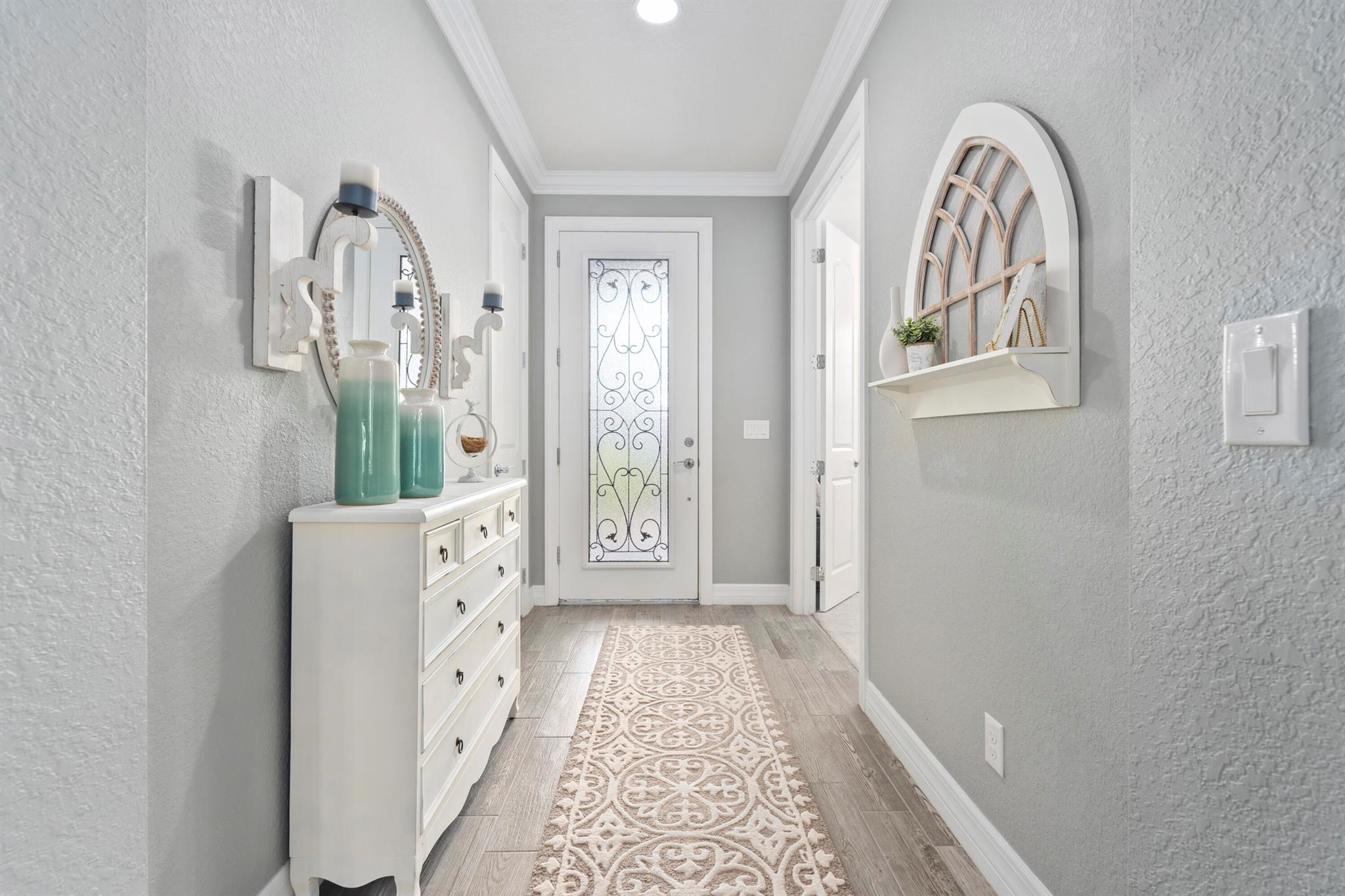 Lakefront CBS 3Bed +office 2Bath 2Car Extended Garage in Veranda Gardens. Impact Glass windows & Doors lead to extended screen porch. Shaker Kitchen cabinets with Quartz counters, spacious island breakfast bar, SS appliances w/gas range. Interior options include 8' Glass front door, 9' High ceilings, crown molding, ceramic Tile Floors & carpet in bedrooms, raised panel doors, high hat & pendant lighting. Master Suite with tray ceiling featuring beadboard & crown molding, large walk-in closet w/built in cabinets. Master bath has Quartz counters with dual sinks, glass enclosed shower. Clubhouse amenities include Heated resort style pool, Hot Tub, Gym, tennis, playground, community room, catering kitchen, indoor & outdoor bar, fire pit, BBQ grill, bocce ball & dog park. youtu.be/dVmLKPAy72Q