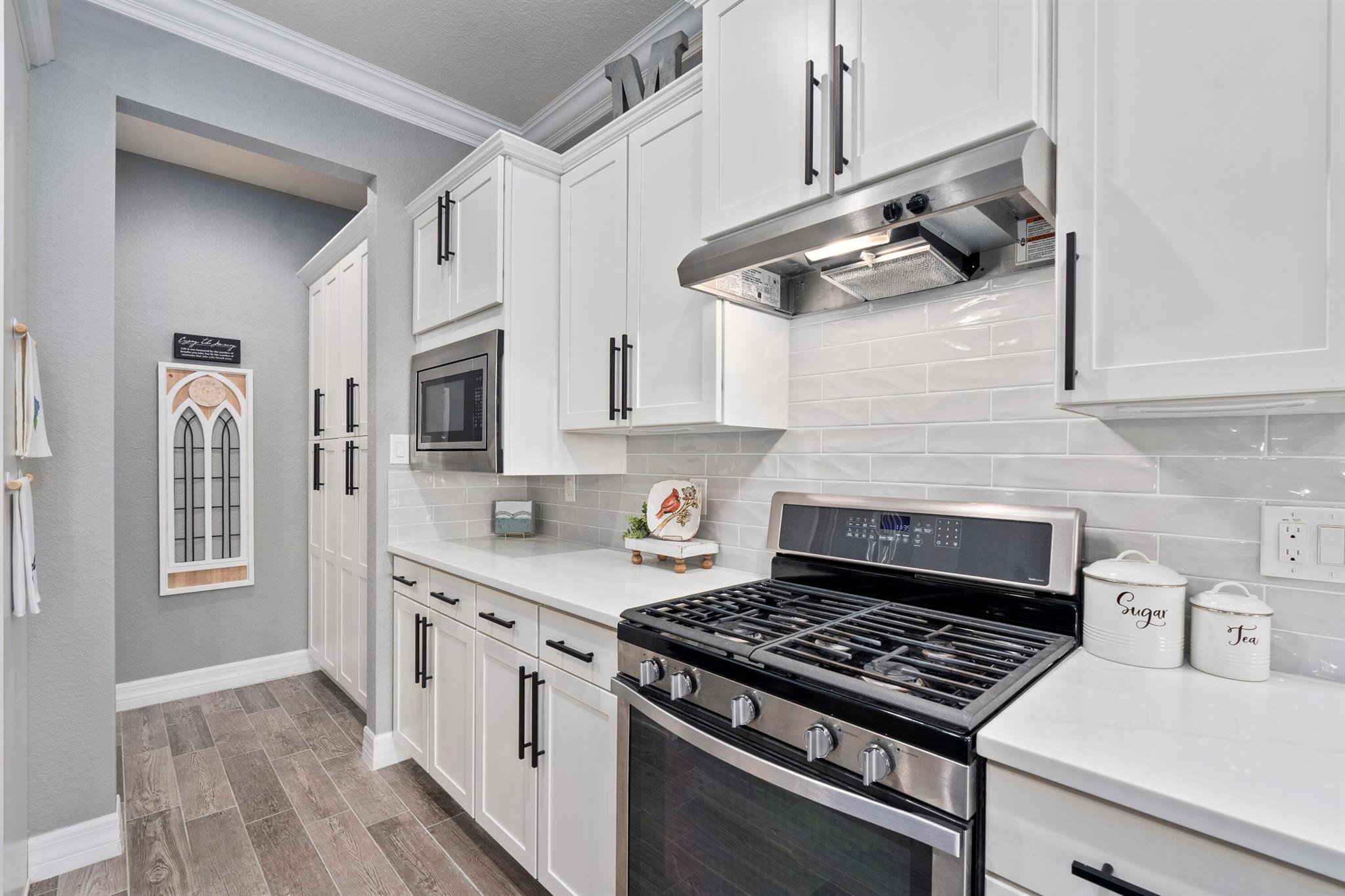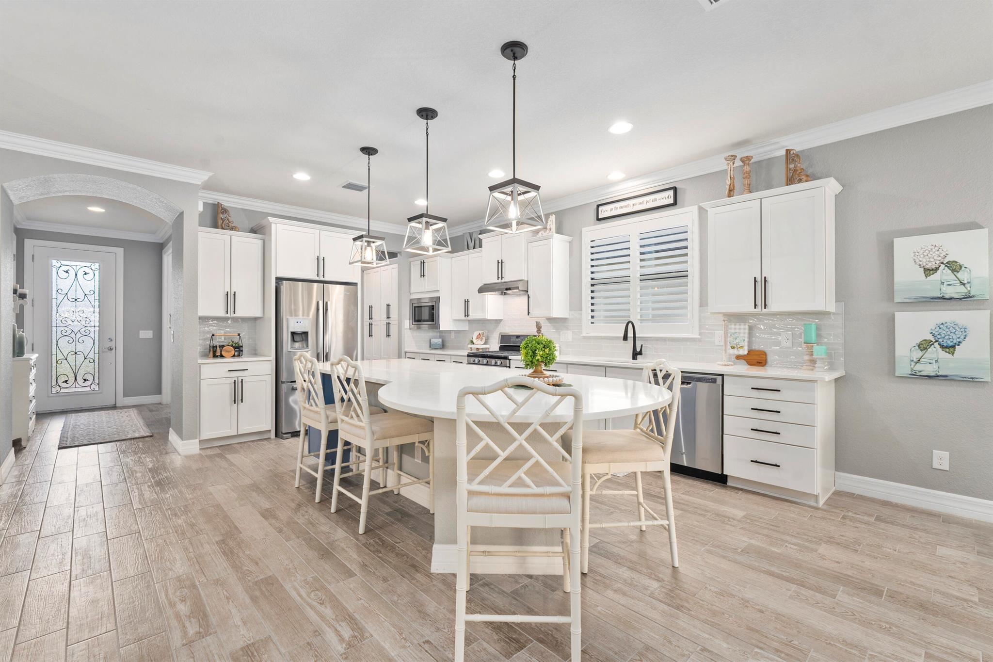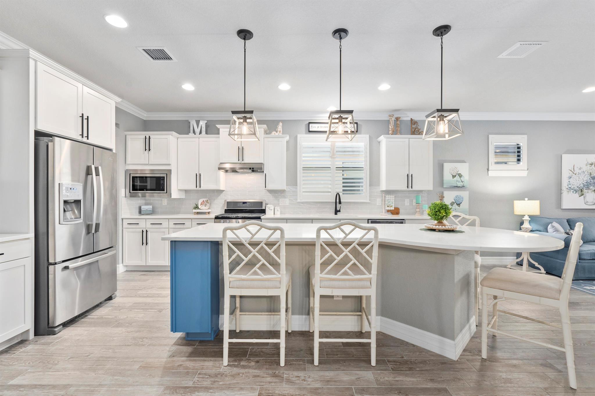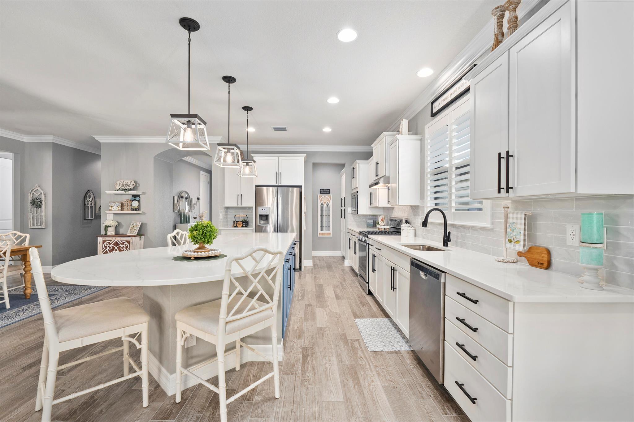Lakefront CBS 3Bed +office 2Bath 2Car Extended Garage in Veranda Gardens. Impact Glass windows & Doors lead to extended screen porch. Shaker Kitchen cabinets with Quartz counters, spacious island breakfast bar, SS appliances w/gas range. Interior options include 8' Glass front door, 9' High ceilings, crown molding, ceramic Tile Floors & carpet in bedrooms, raised panel doors, high hat & pendant lighting. Master Suite with tray ceiling featuring beadboard & crown molding, large walk-in closet w/built in cabinets. Master bath has Quartz counters with dual sinks, glass enclosed shower. Clubhouse amenities include Heated resort style pool, Hot Tub, Gym, tennis, playground, community room, catering kitchen, indoor & outdoor bar, fire pit, BBQ grill, bocce ball & dog park. youtu.be/dVmLKPAy72Q