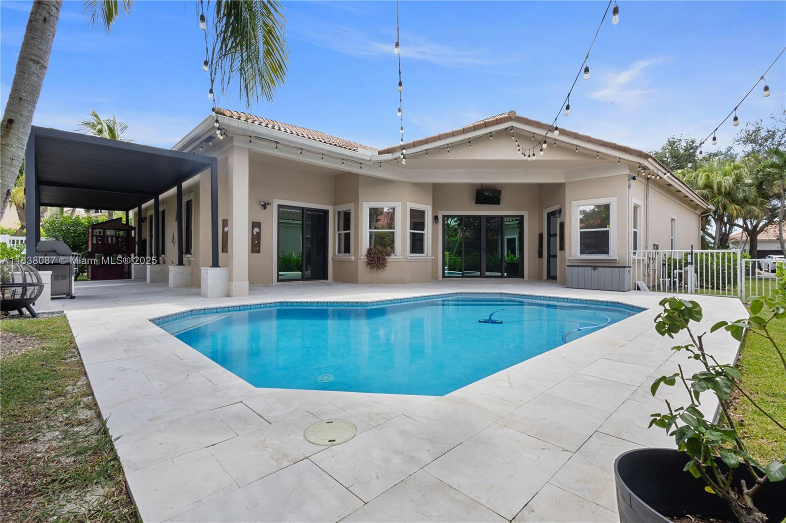 An mmaculatel and remodeled 5 bedrooms/4 bathrooms home w/3-car garage in privately-gated Venetian Isles. Modern designer finishes meld seamlessly with Italian-inspired architectural accents such as a portico entryway, arched halls, 12' coffered ceilings, custom built-ins and more. A flowing floorplan featuring multiple dining areas, a generous kitchen w/ upgraded appliances, wood cabinetry, tiled backsplash, butler's pantry/wet bar, dry pantry/appliance garage, highlighted by an oversize brunch counter & plenty of storage. The complete primary suite w/sitting area features a dressing hall, H&H bathrooms, multi-person shower room, freestanding tub and convenient terrace access. Amenities include a saltwater pool, new veranda living space, private park & tennis club access. A must see.